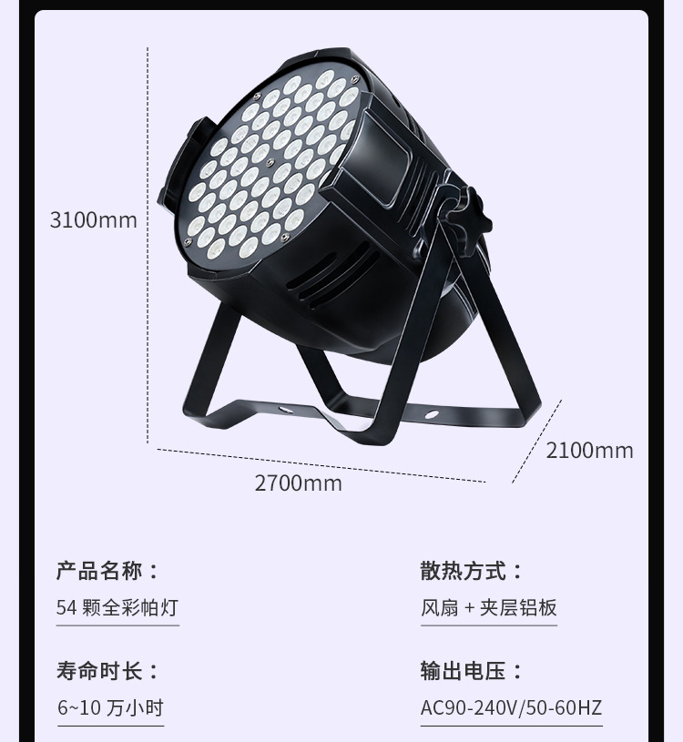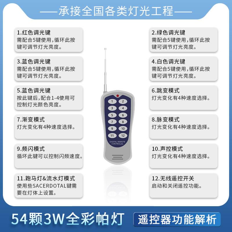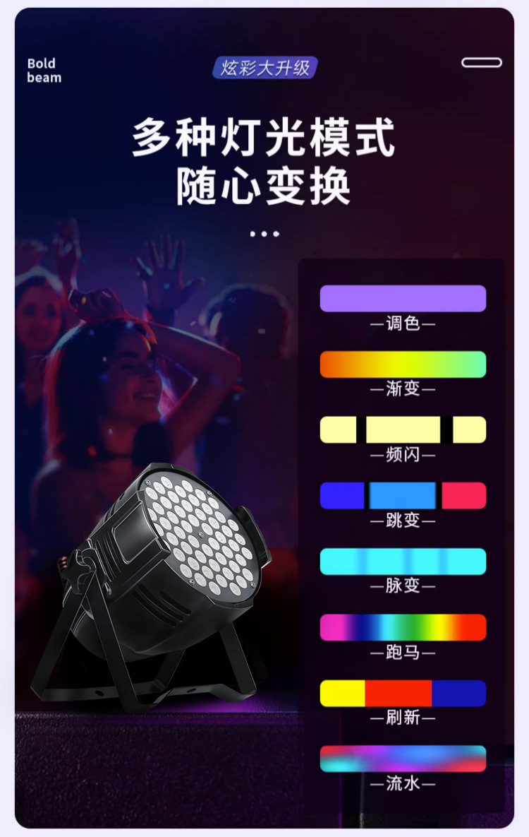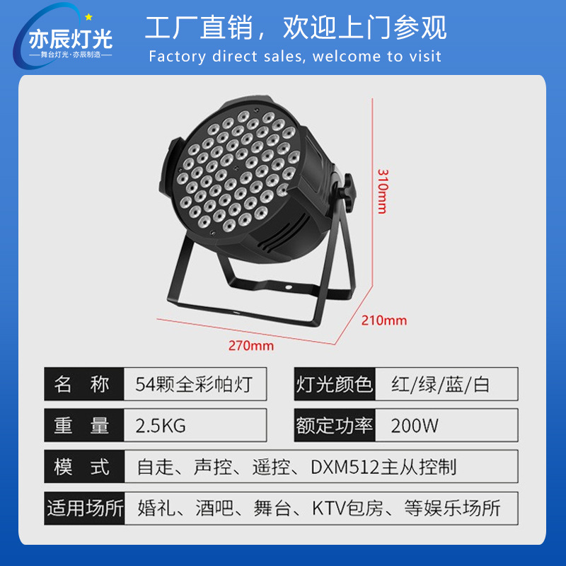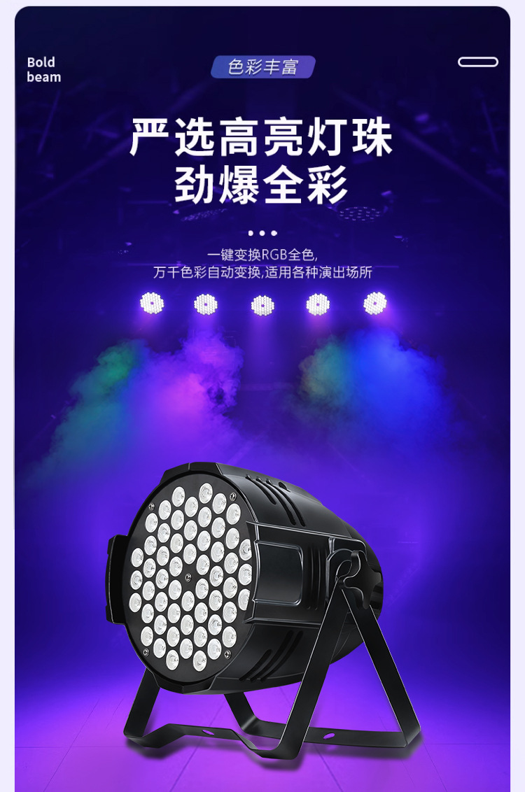 54颗全彩帕灯3W舞台宴会厅LED面光灯婚庆舞蹈室七彩射灯舞台灯光