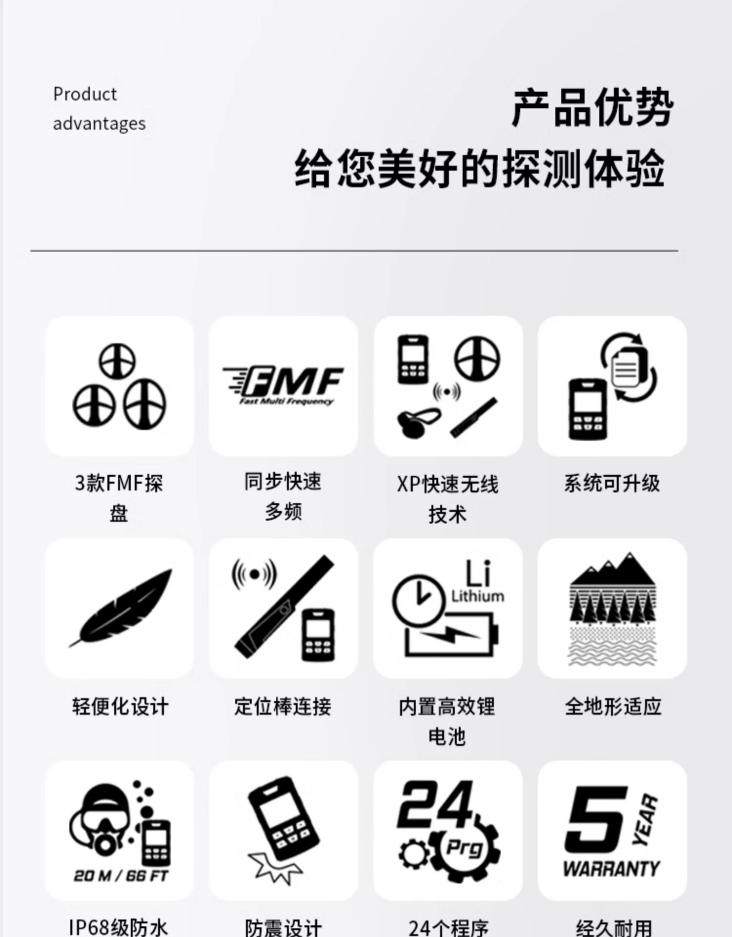 法国XP新款 FMF金属探测器 户外黄金快速多频高精度金银铜 探测仪