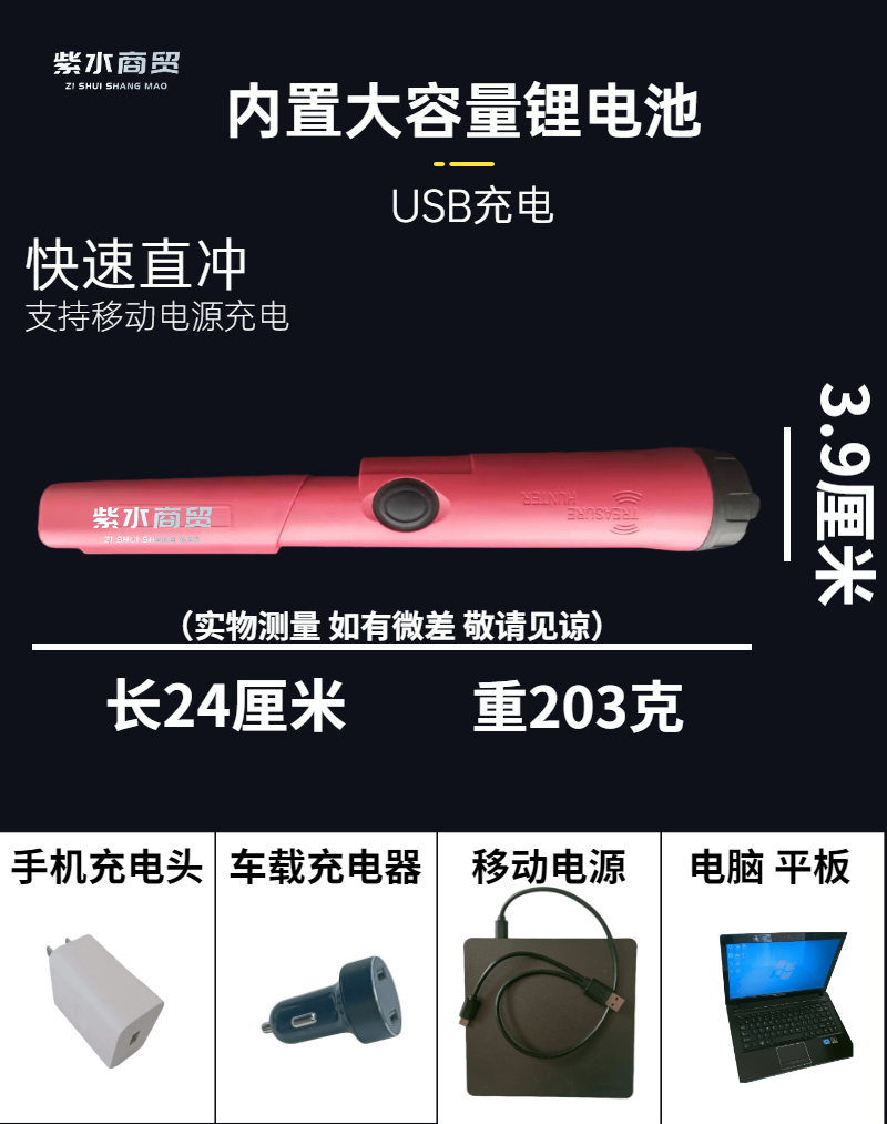手持金属探测棒防水定位棒可充电高精度小型安检地下寻宝器探测仪