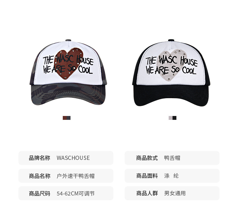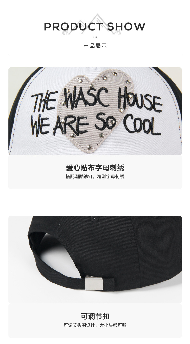 ins爱心铆钉鸭舌帽女春夏新款显脸小潮牌小众街头嘻哈软顶棒球帽