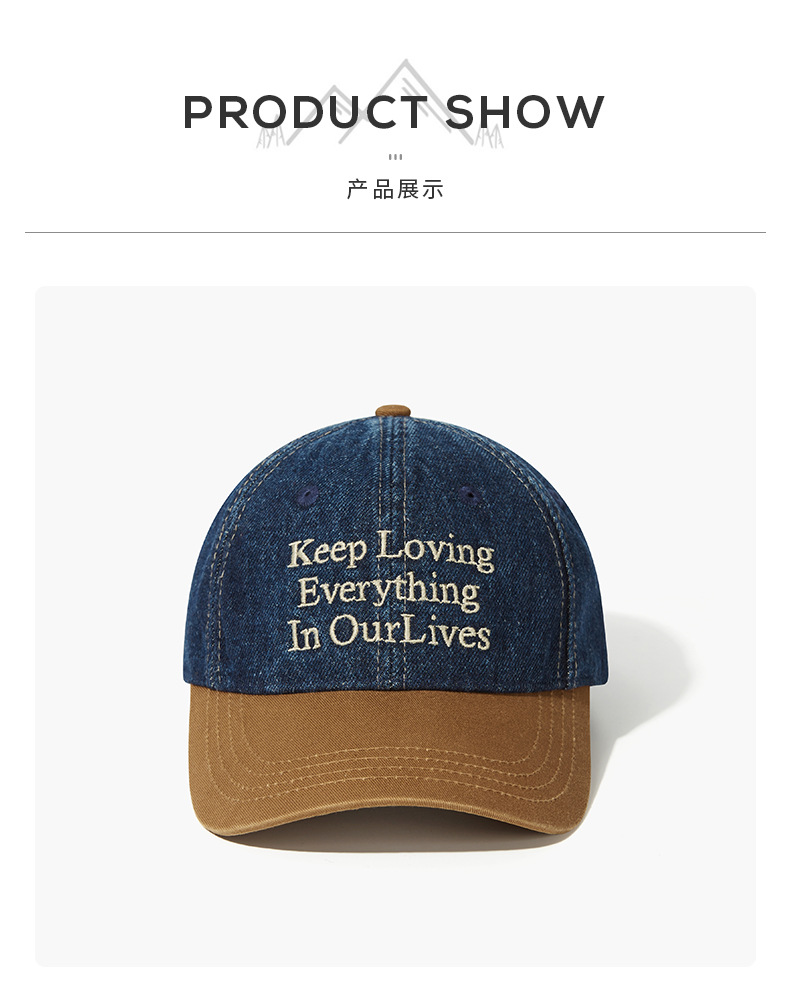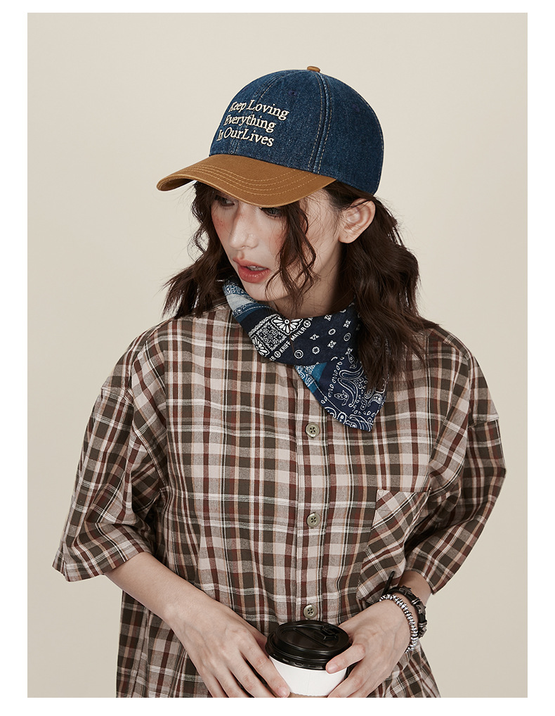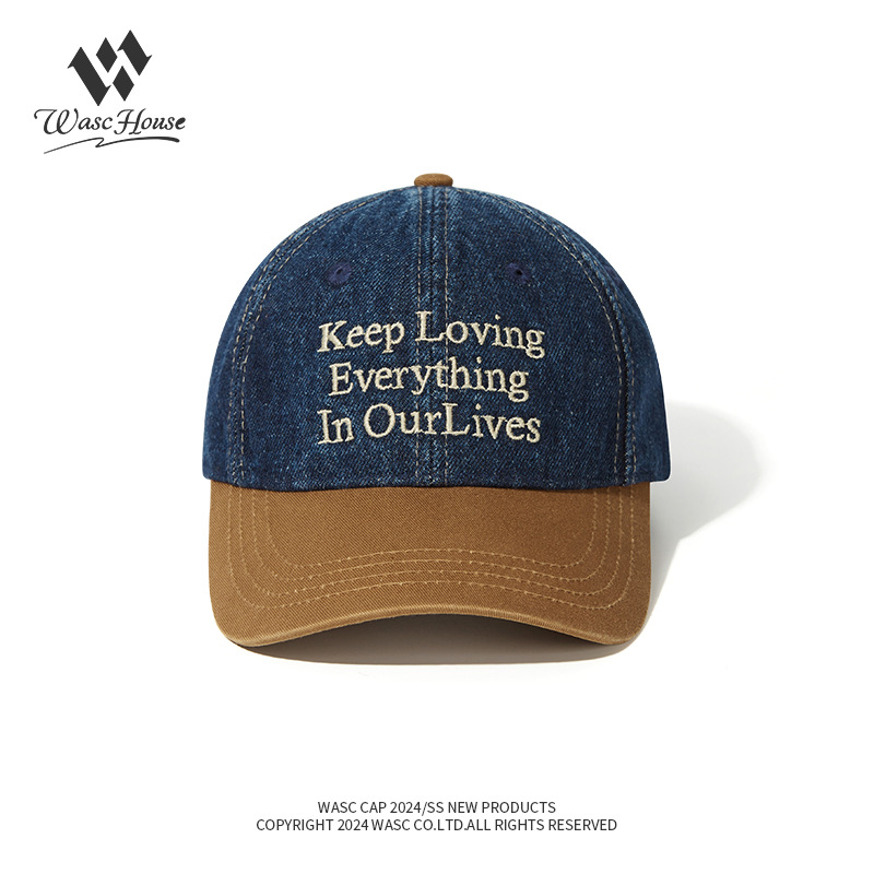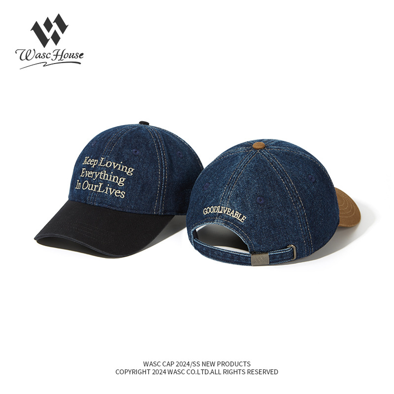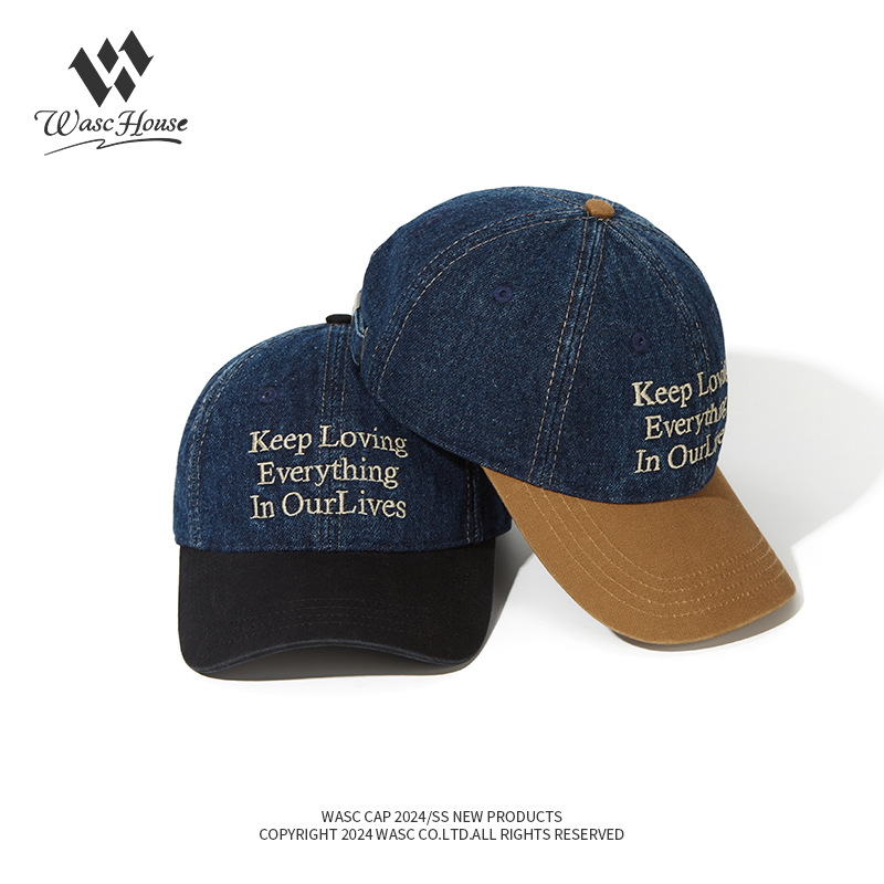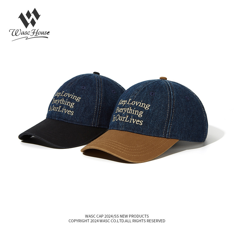 美式水洗棒球帽复古牛仔拼色软顶女韩版春夏季情侣遮阳鸭舌帽男显