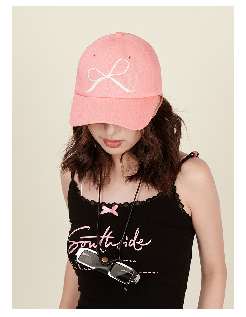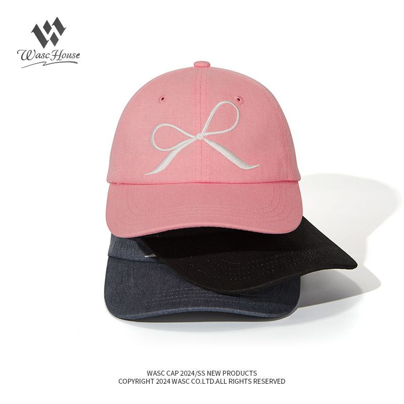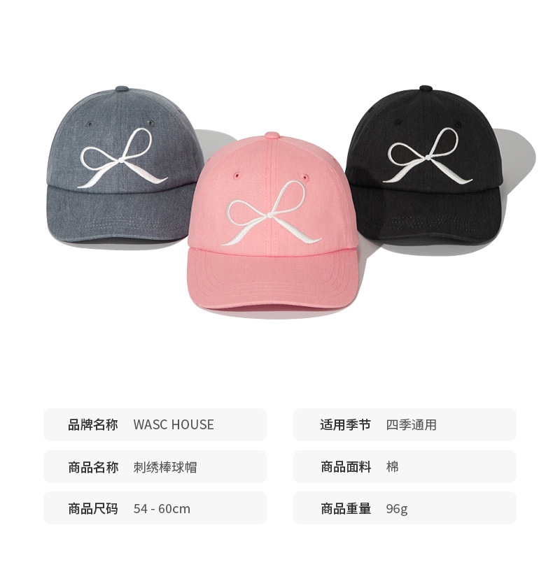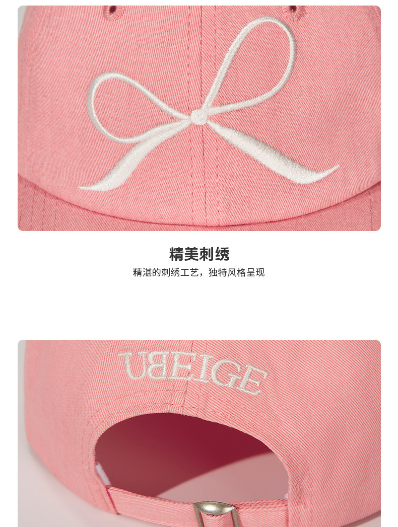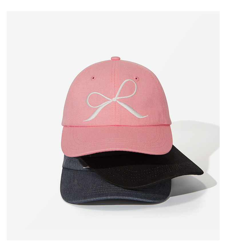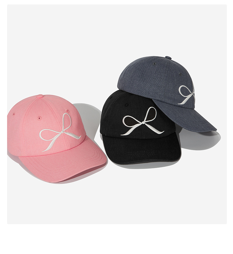 蝴蝶结刺绣棒球帽加大帽檐遮阳帽韩版显脸小软顶鸭舌帽生产批发