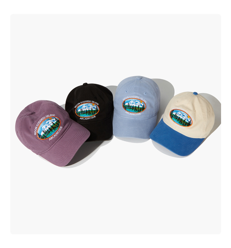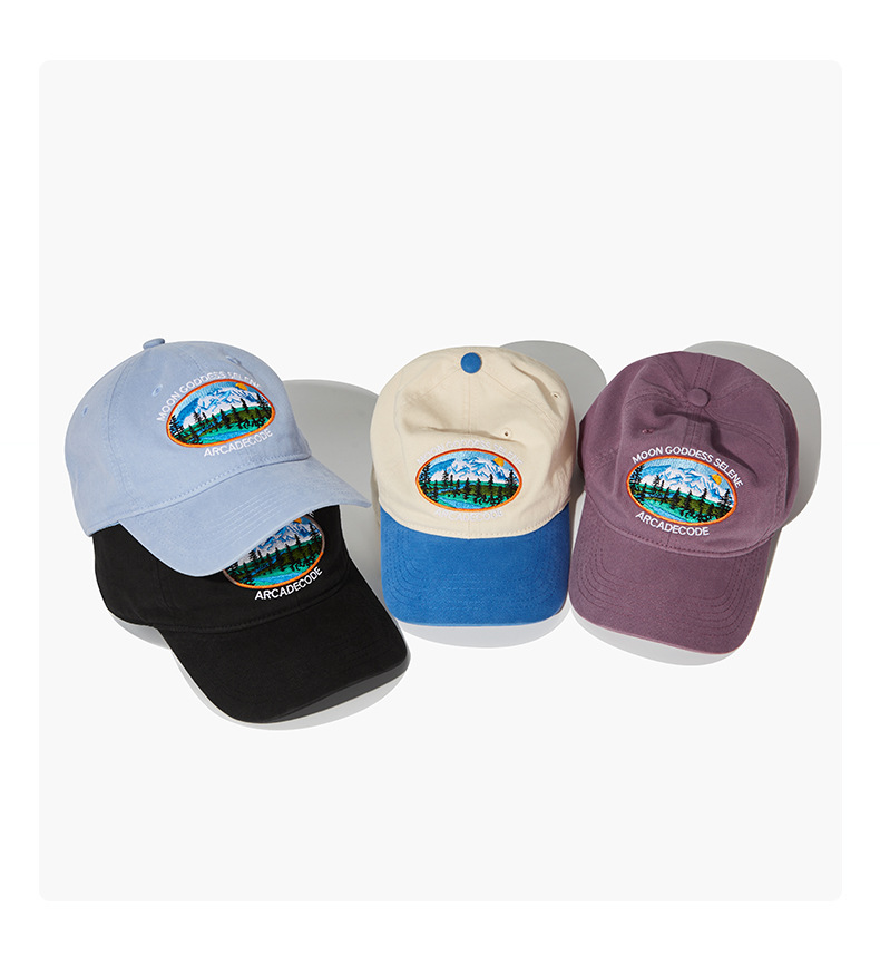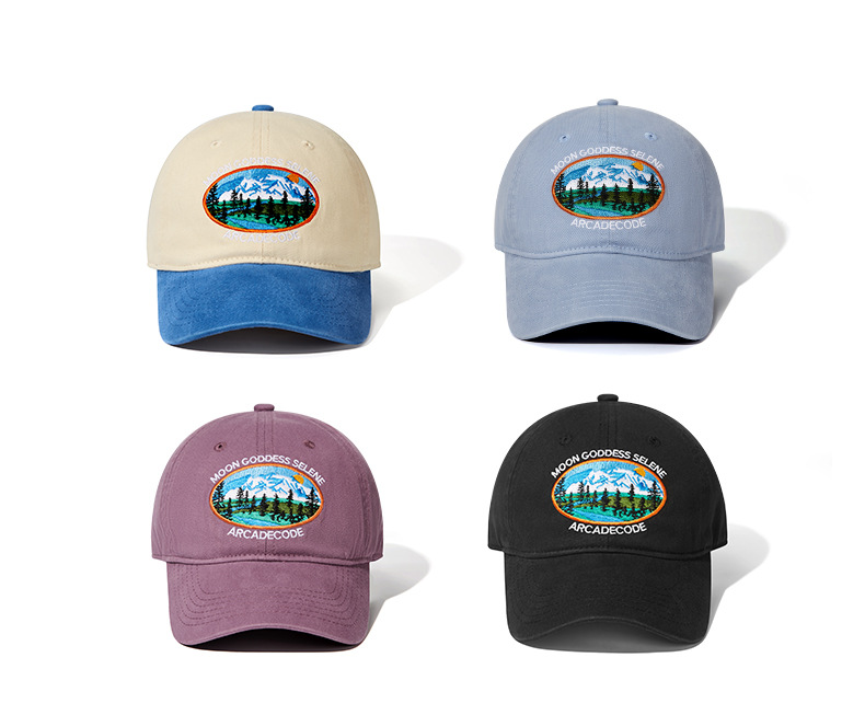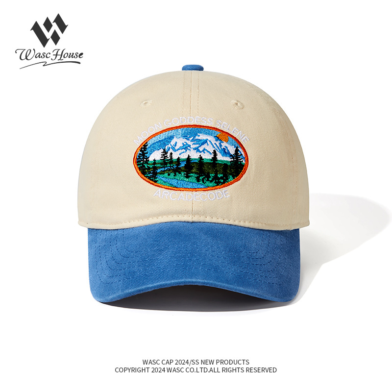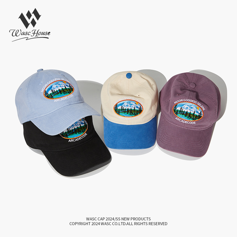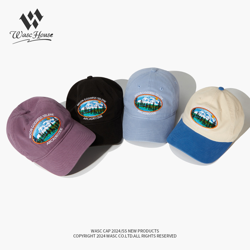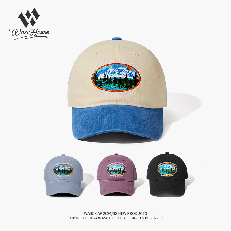 厂家水洗重工棒球帽森林雪山刺绣鸭舌帽男女潮牌街头遮阳帽子批发