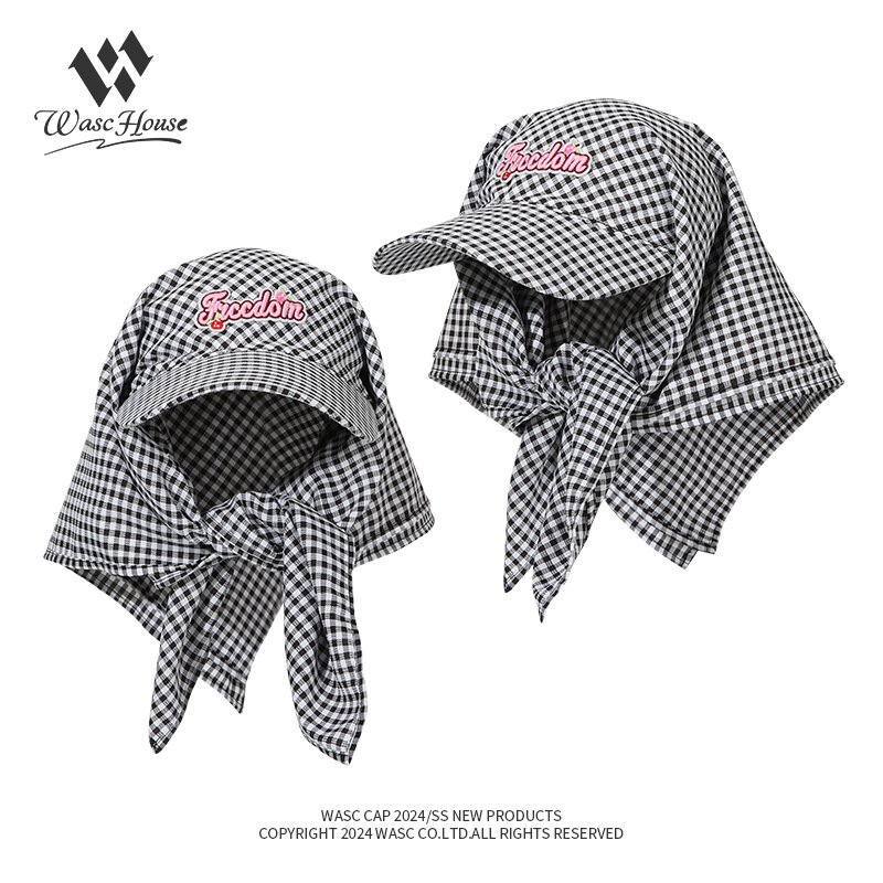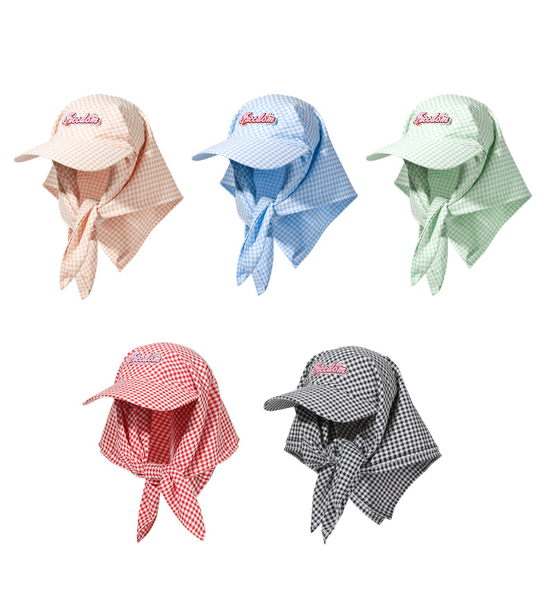彩色布贴格子头巾帽海边沙滩包头帽子遮阳防晒鸭舌帽子生产批发
