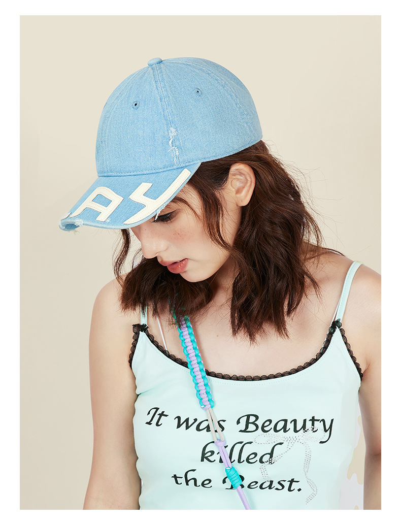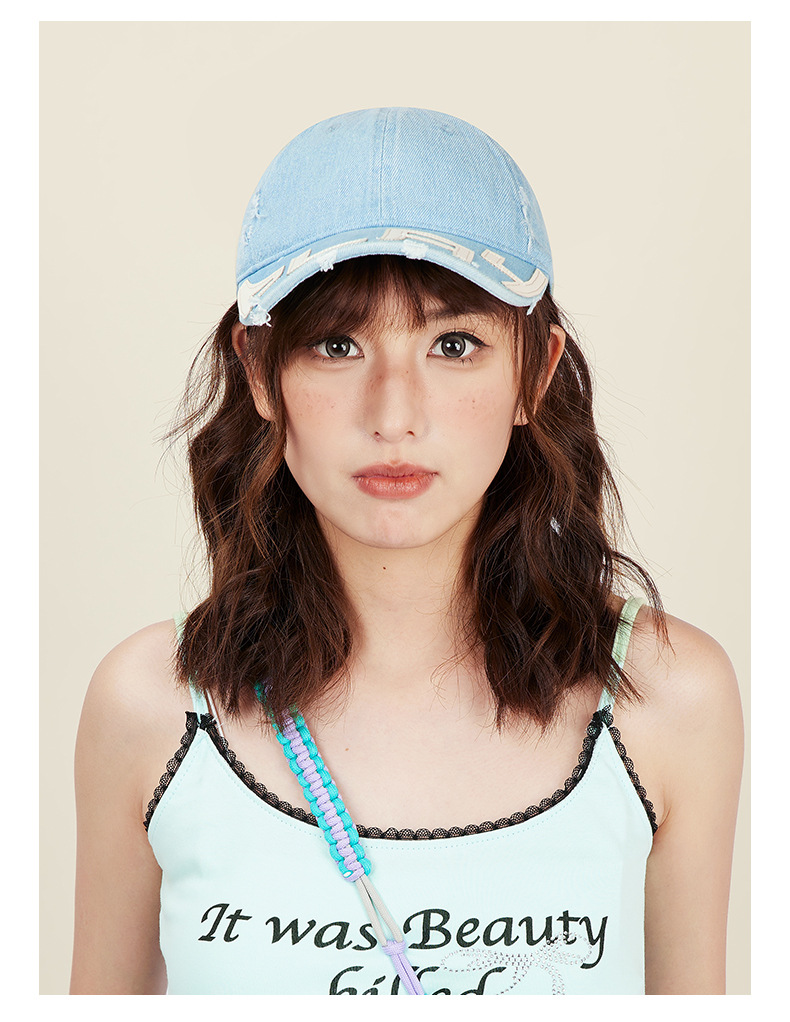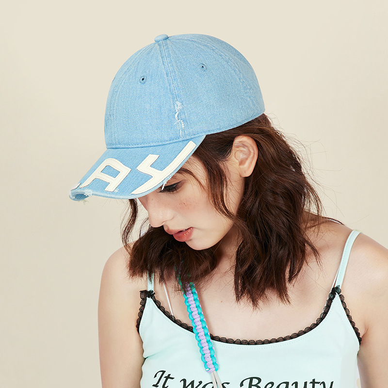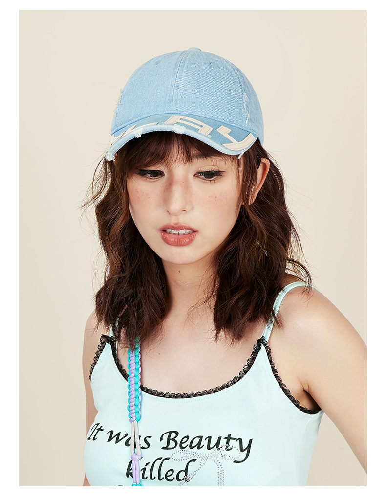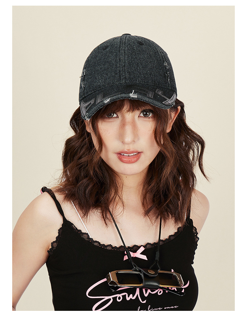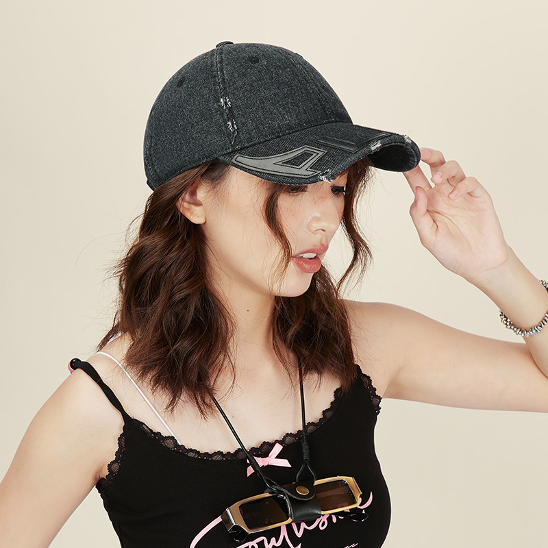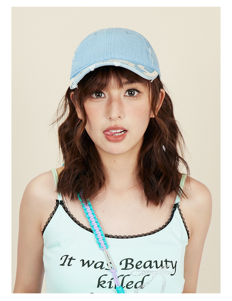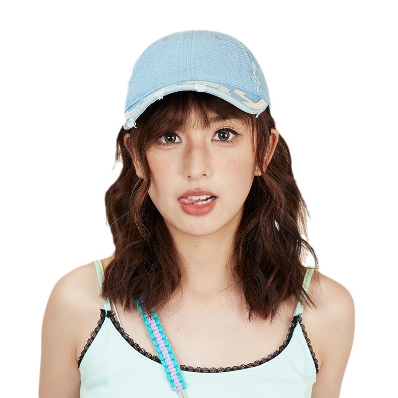 水洗做旧破坏牛仔棒球帽女小众街头潮牌显脸小软顶鸭舌帽子男批发