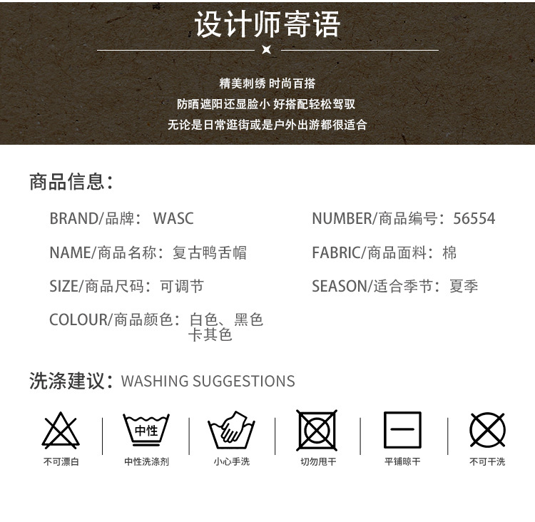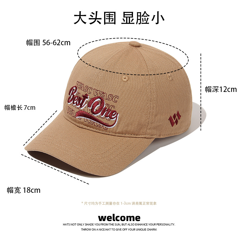wasc大头围显脸小棒球帽女潮美式复古刺绣遮阳防嗮帽子批发鸭舌帽