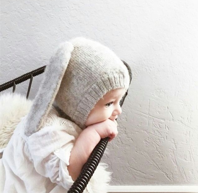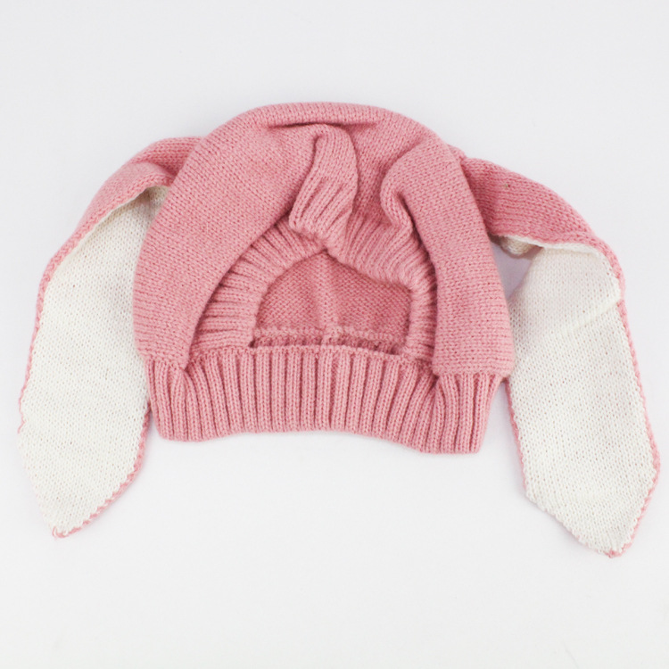 韩版卡通时尚宝宝长耳兔针织毛线帽子秋冬护耳保暖套头帽子
