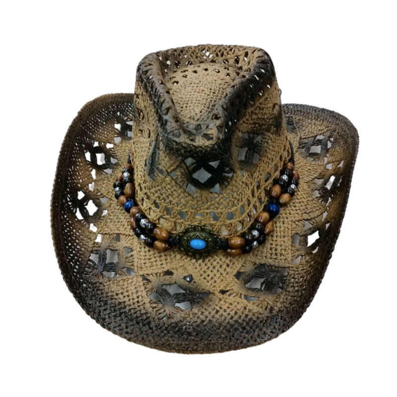 春夏季户外亚马逊镂空防晒沙滩遮阳帽西部牛仔草帽跨境礼帽牛仔帽