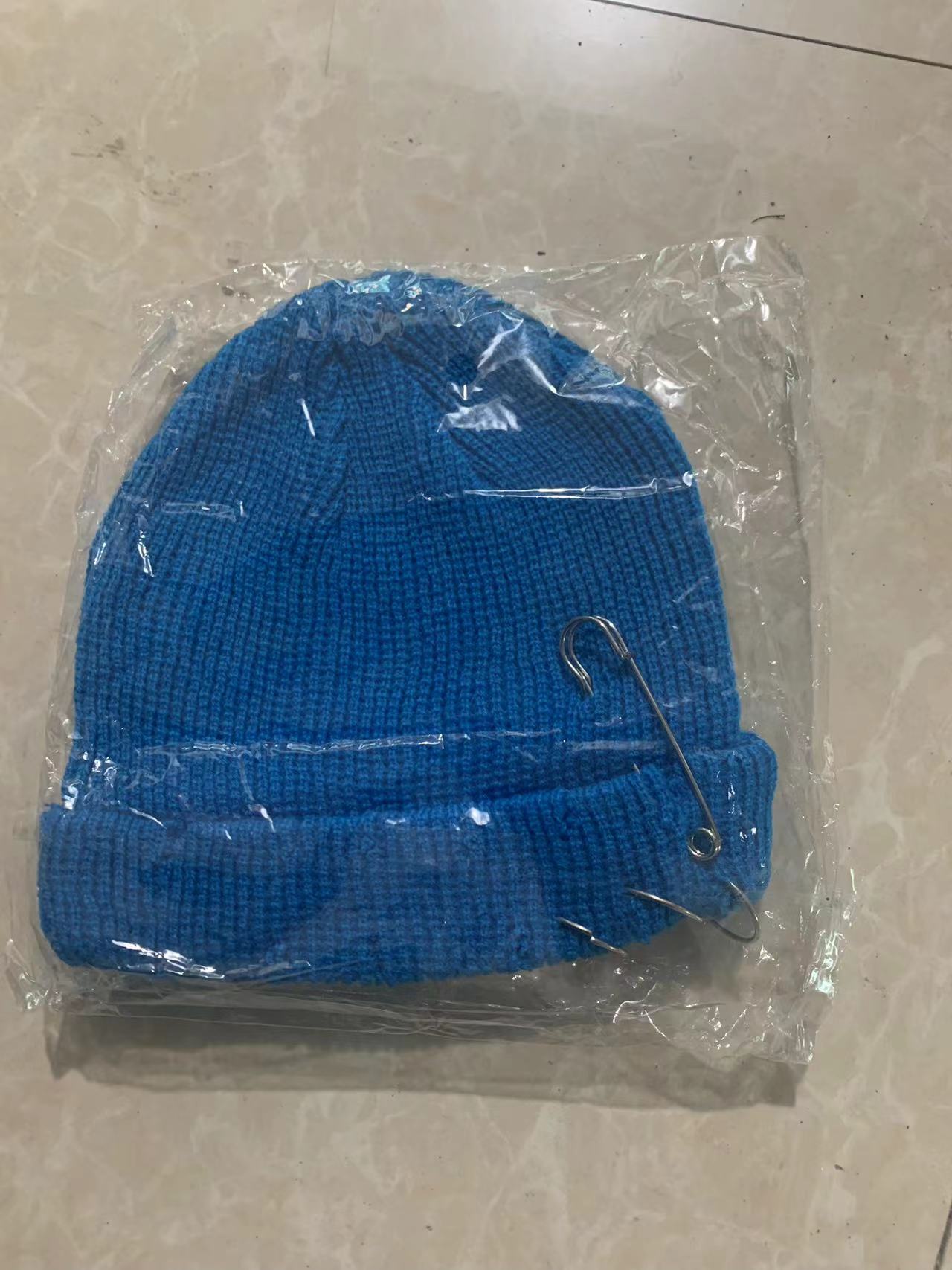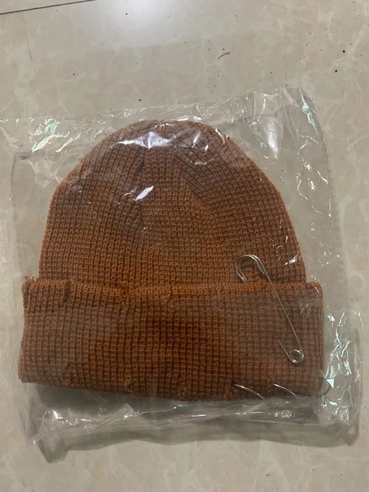 秋冬新款韩版ins欧美百搭基础款破洞别针冷帽针织毛线卷边帽男女