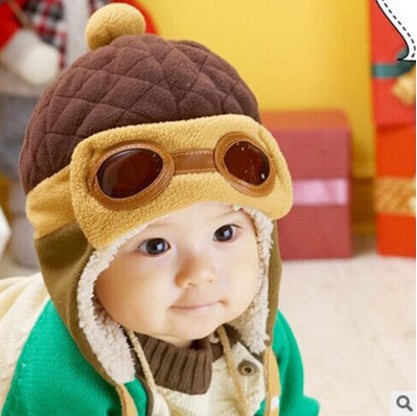 秋冬季儿童时尚飞行员护耳套头帽子户外防寒加绒保暖眼镜雷锋帽