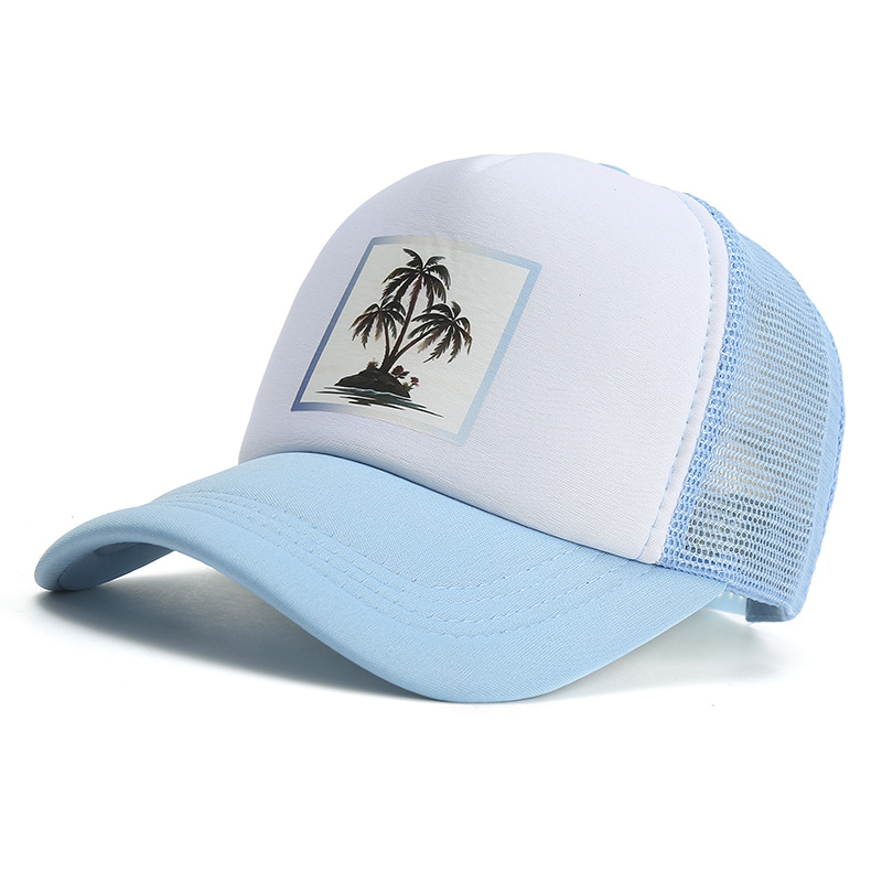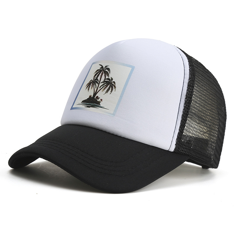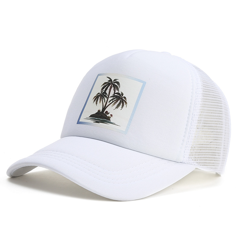 印花椰树鸭舌帽新款时尚休闲透气防晒帽子夏季户外遮阳棒球网帽