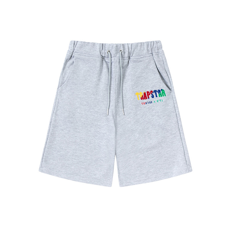 跨境外贸Trapstar彩虹字母渐变毛巾刺绣短袖T恤fog高街短裤子套装