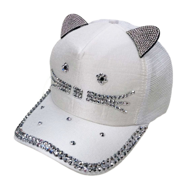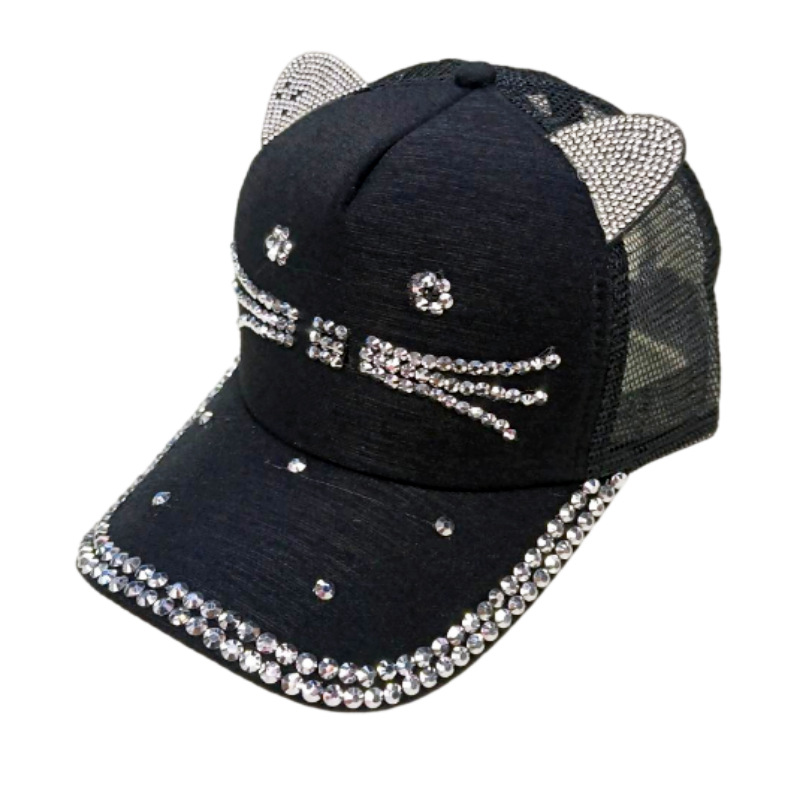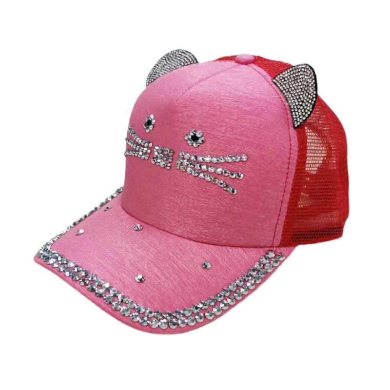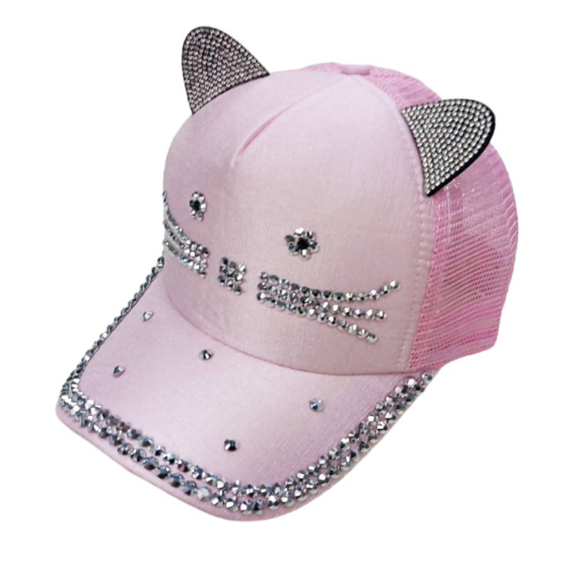 春夏季亲子帽子小猫网帽男女童宝宝卡通亮片耳朵鸭舌帽户外遮阳帽