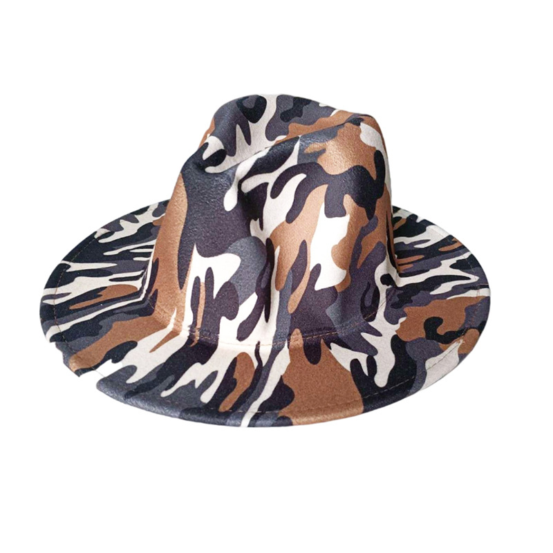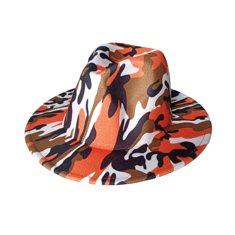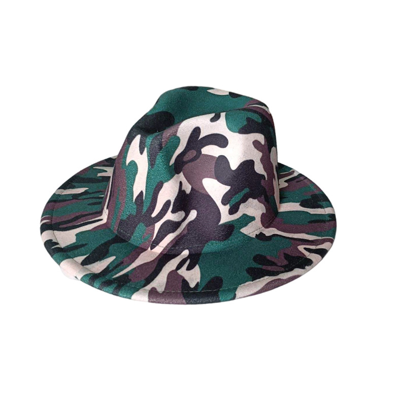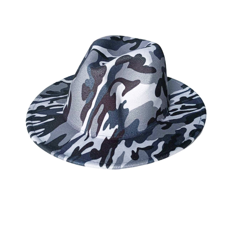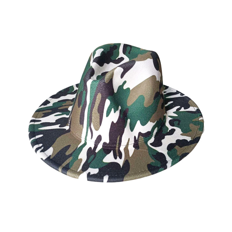 男女士欧美外贸跨境礼帽大檐帽时尚平沿帽秋冬季迷彩毛呢爵士帽