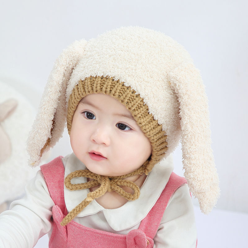 婴儿帽秋冬新款可爱男女宝宝帽婴幼儿保暖厚兔耳朵毛绒护耳帽小童