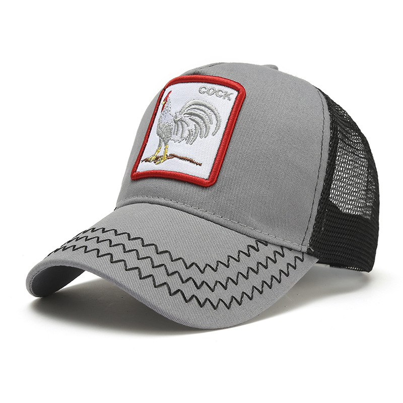 跨境春夏季户外成人遮阳防晒网帽 时尚男女士刺绣动物棒球帽子