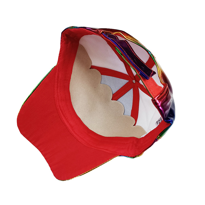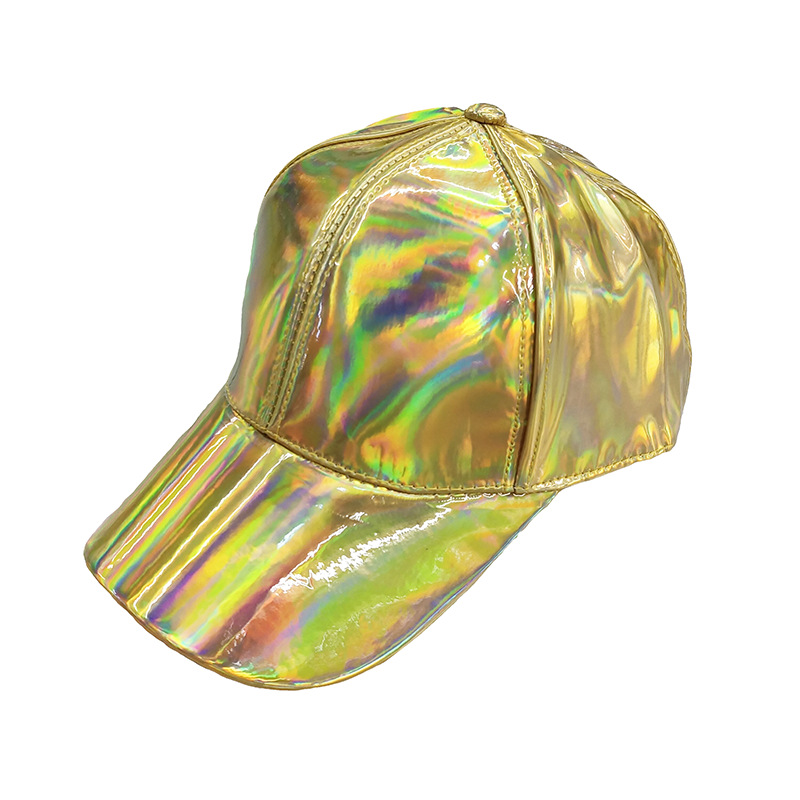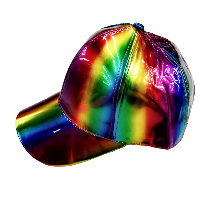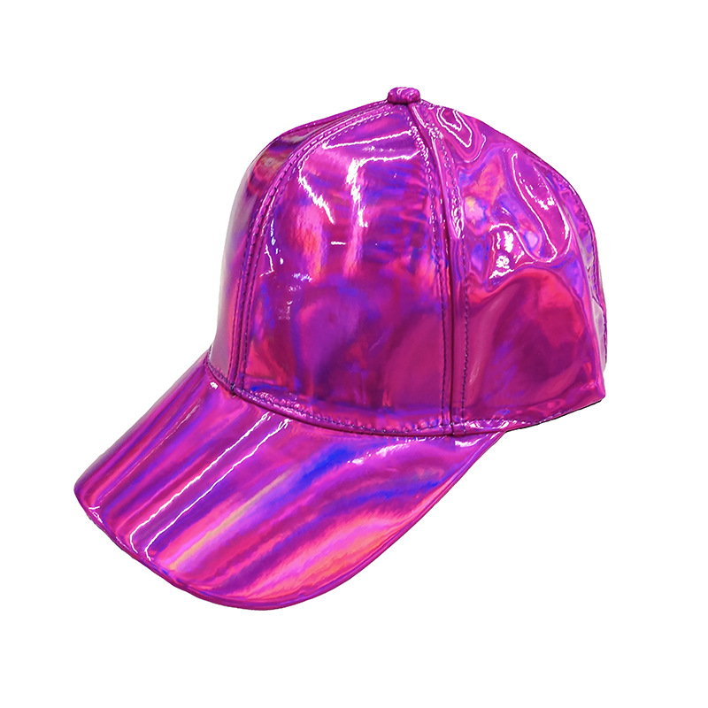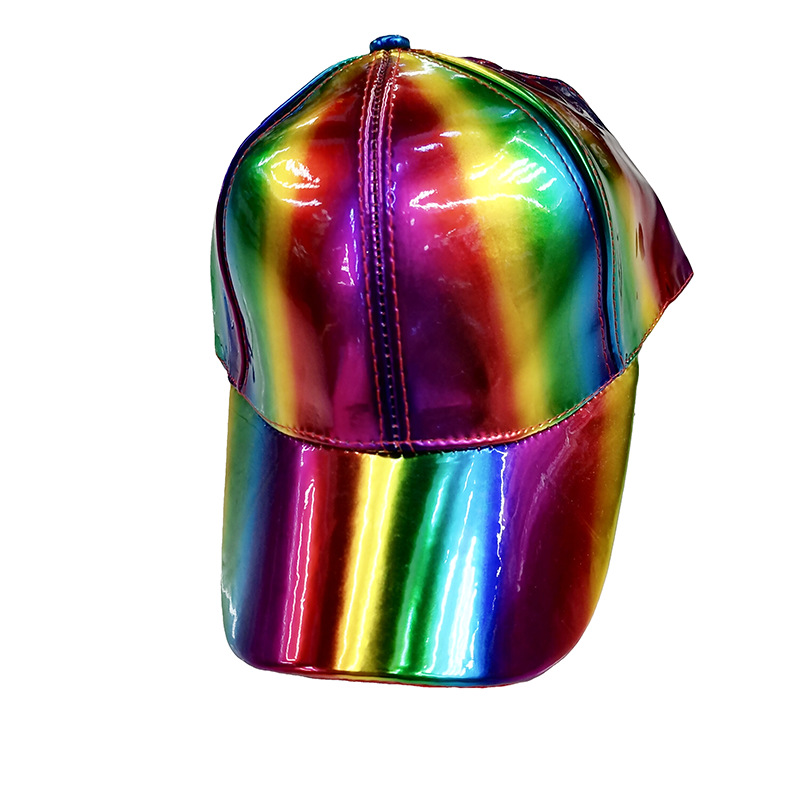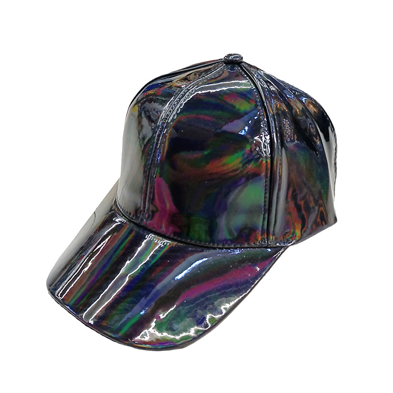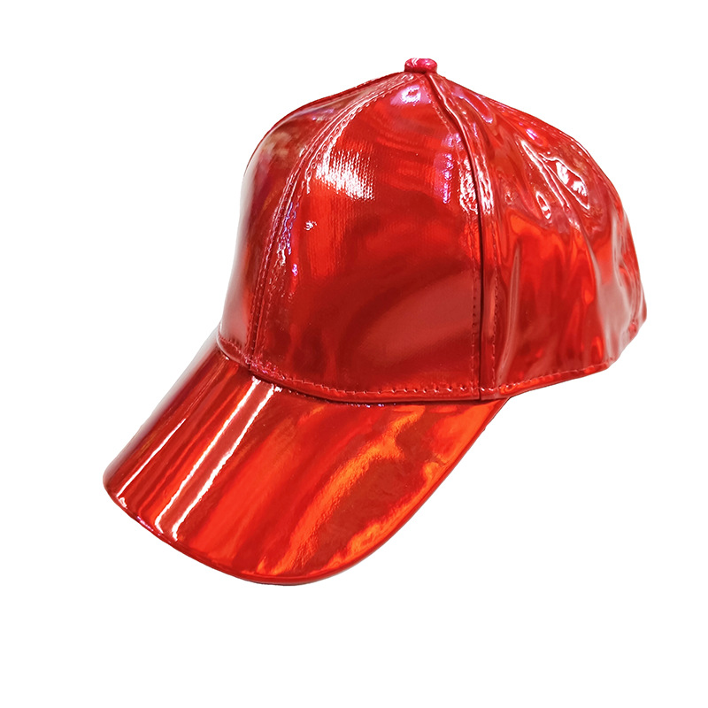 新款炫彩漆皮弯沿棒球帽男女潮学院风亮面嘻哈街舞滑板鸭舌帽子