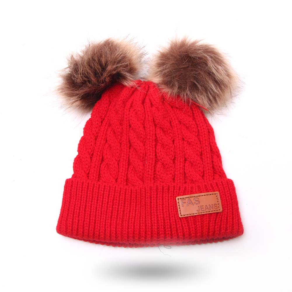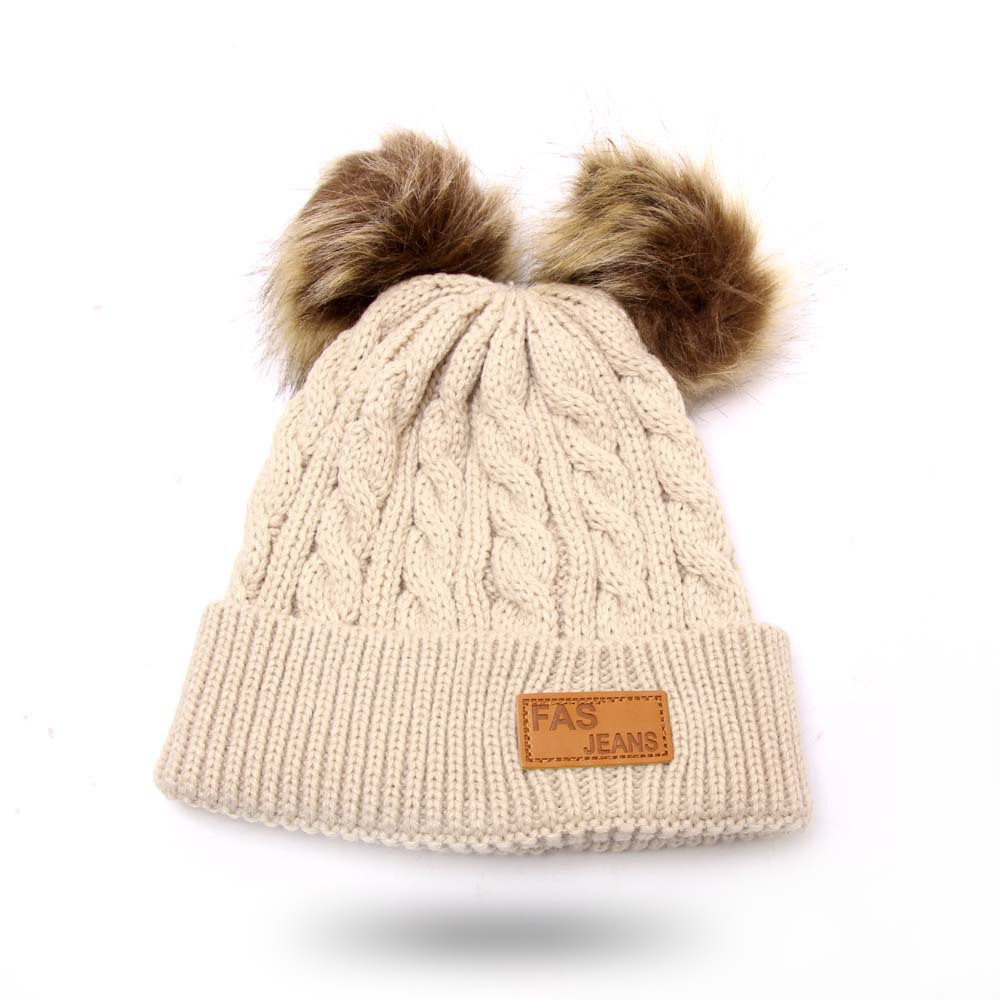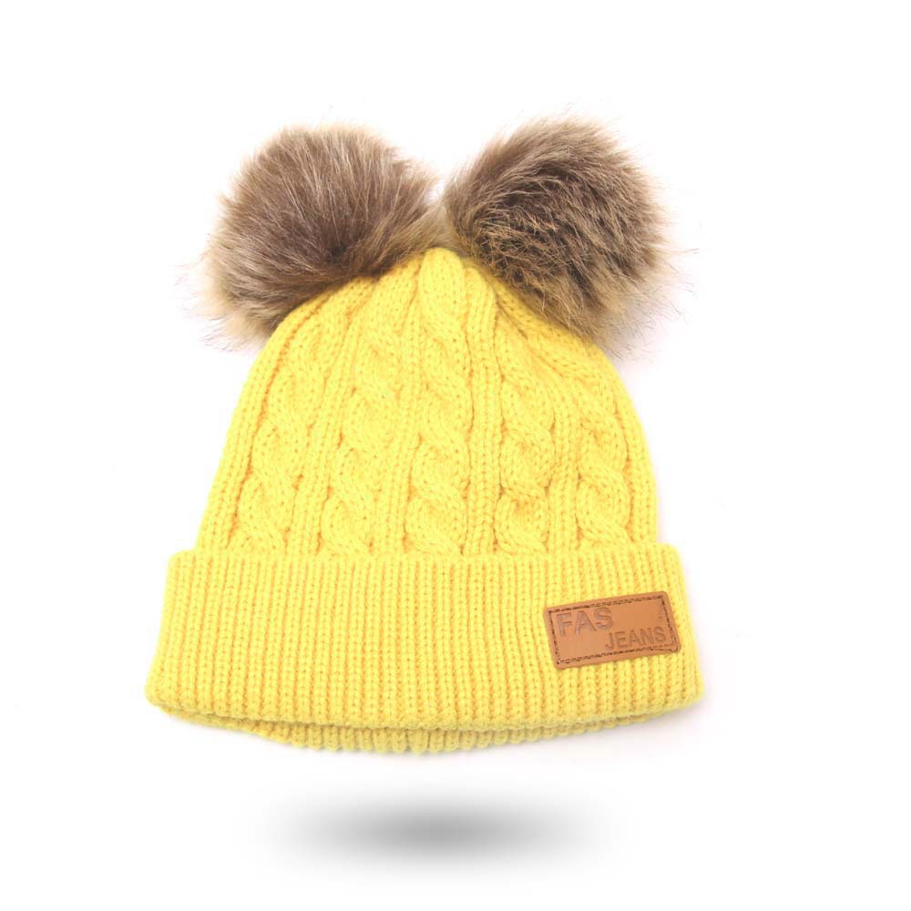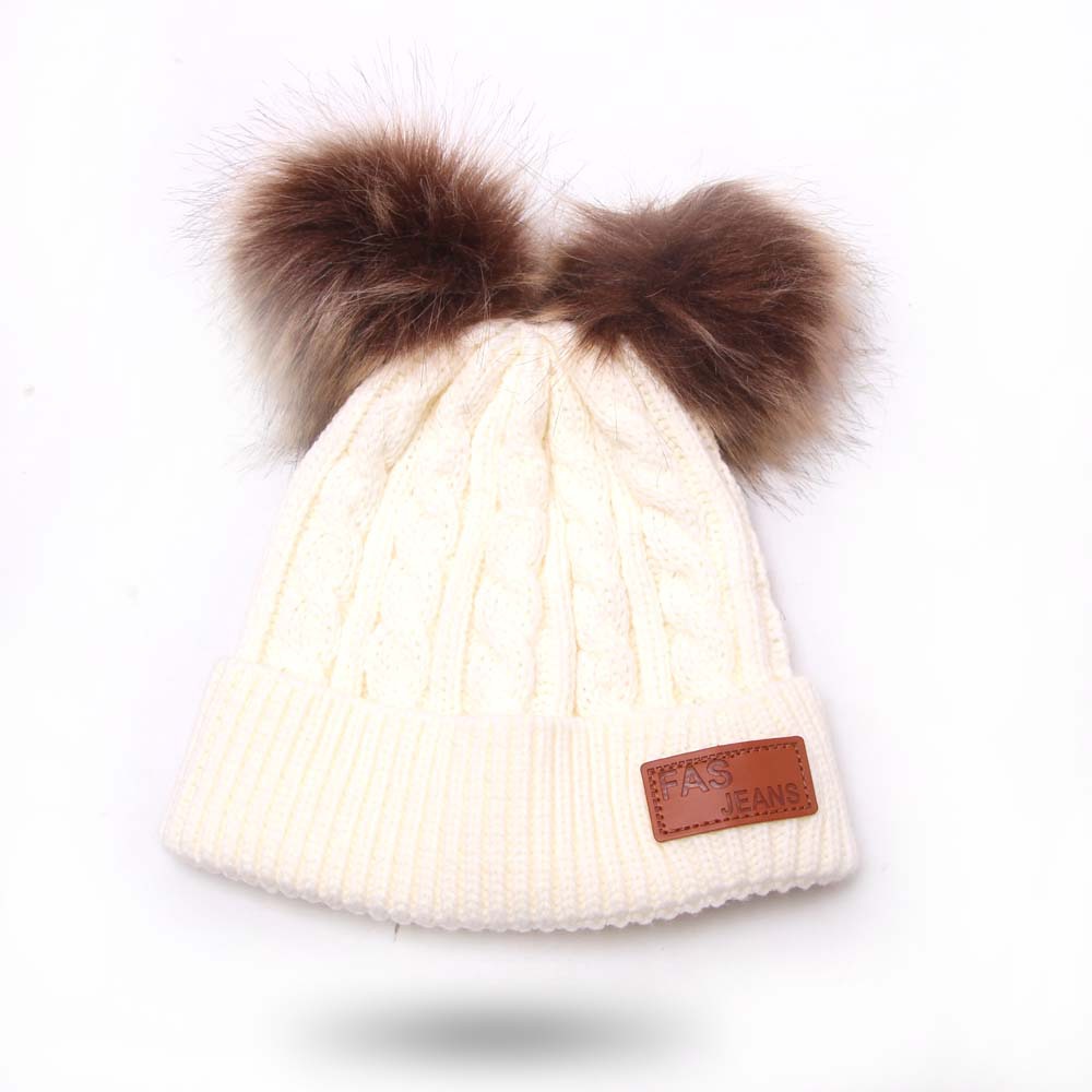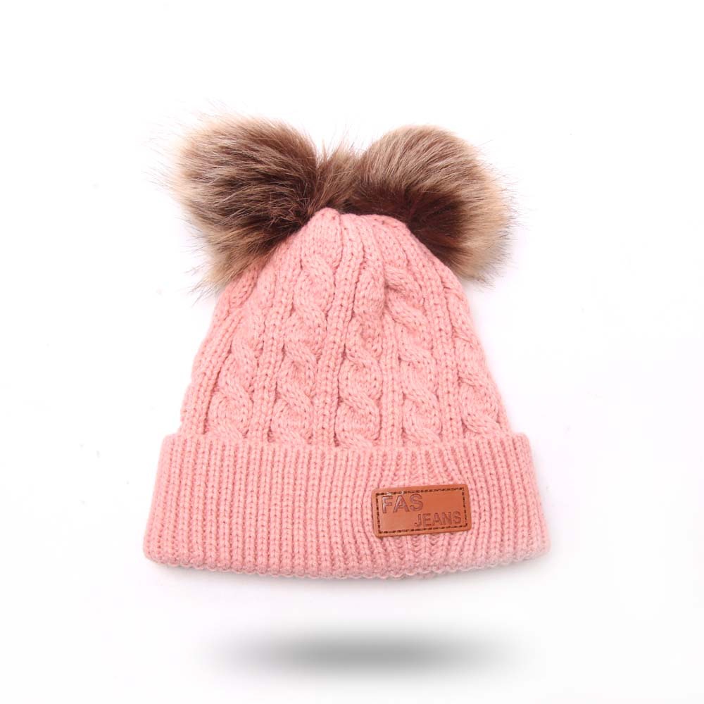 2019秋冬百搭宝宝双球帽子儿童毛线帽 仿貉子毛球宝宝婴儿针织帽