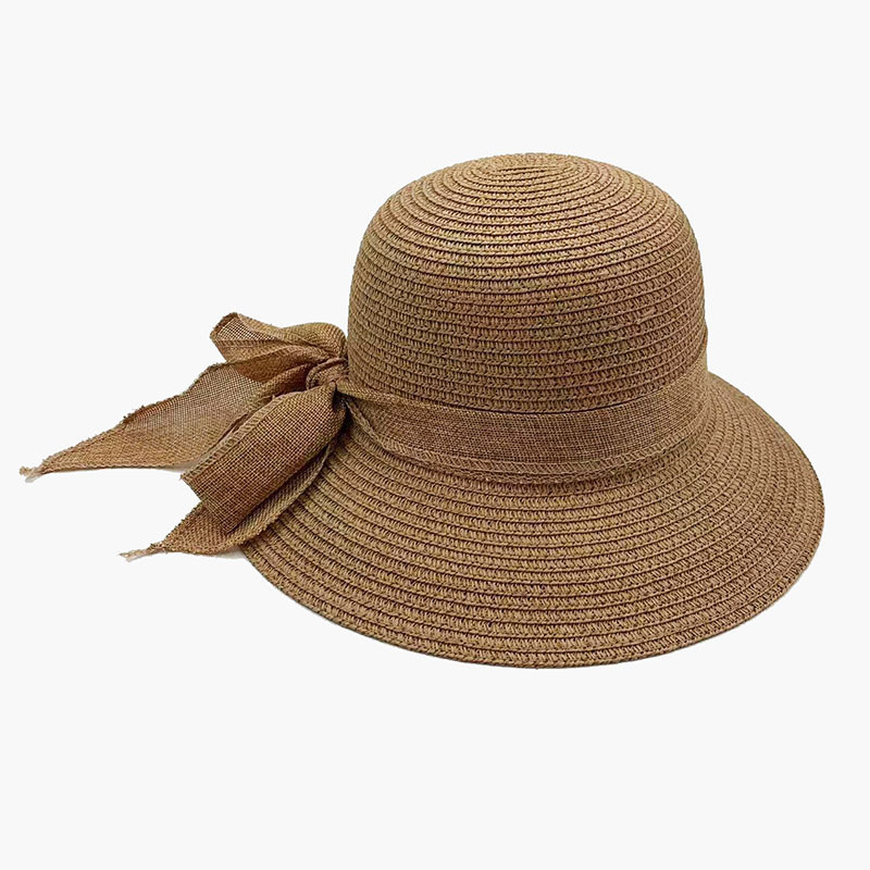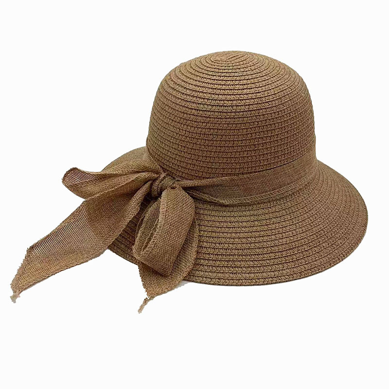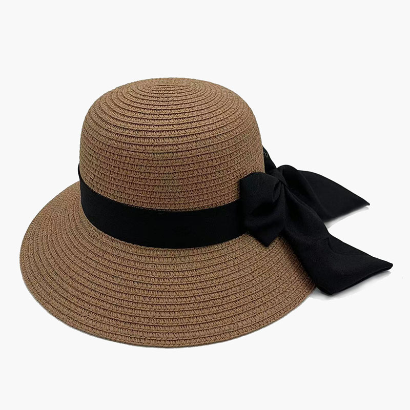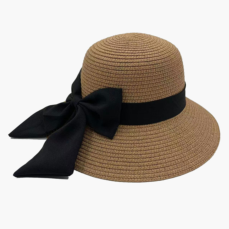跨境欧美女士蝴蝶结草帽夏季防晒遮阳帽子海边出游草编沙滩太阳帽