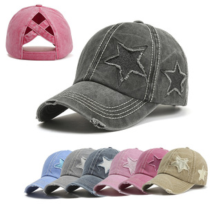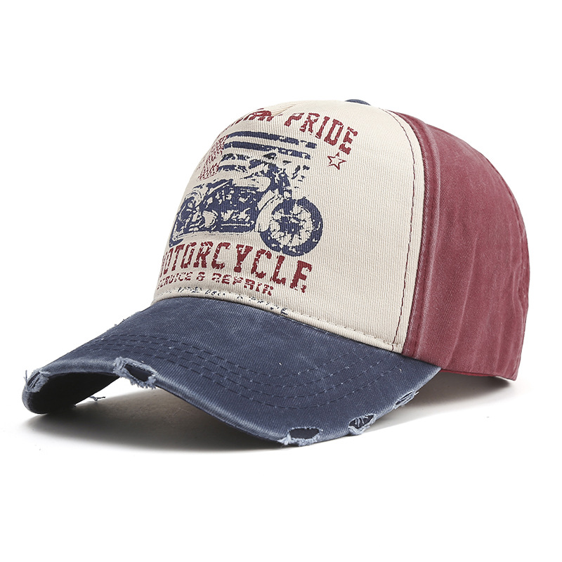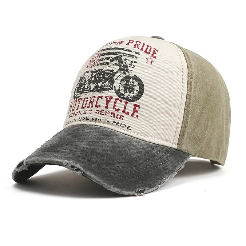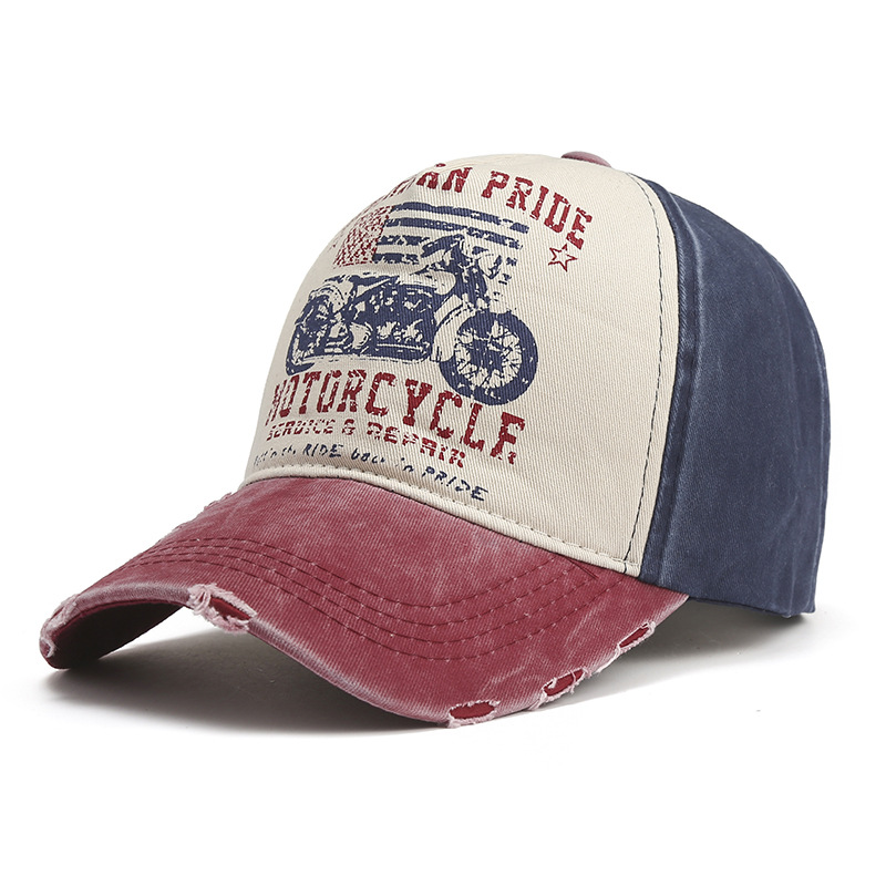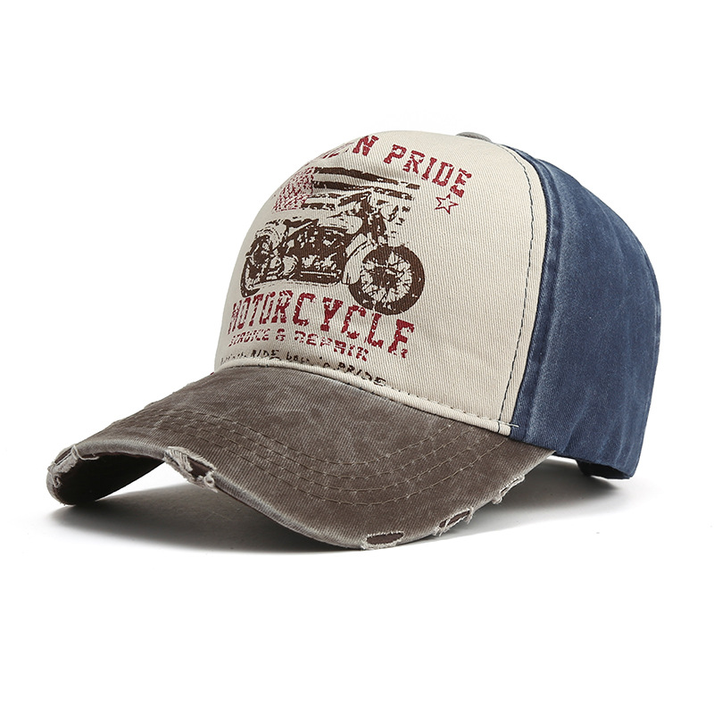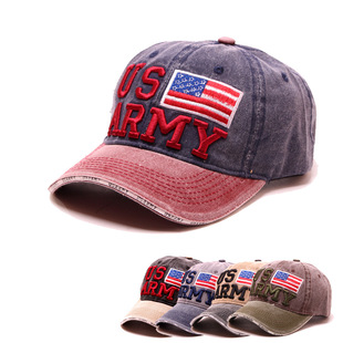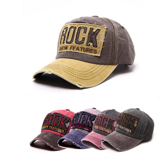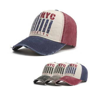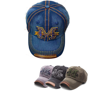 跨境棉水洗棒球帽男女韩版鸭舌帽英伦破旧户外牛仔布印花做旧帽子