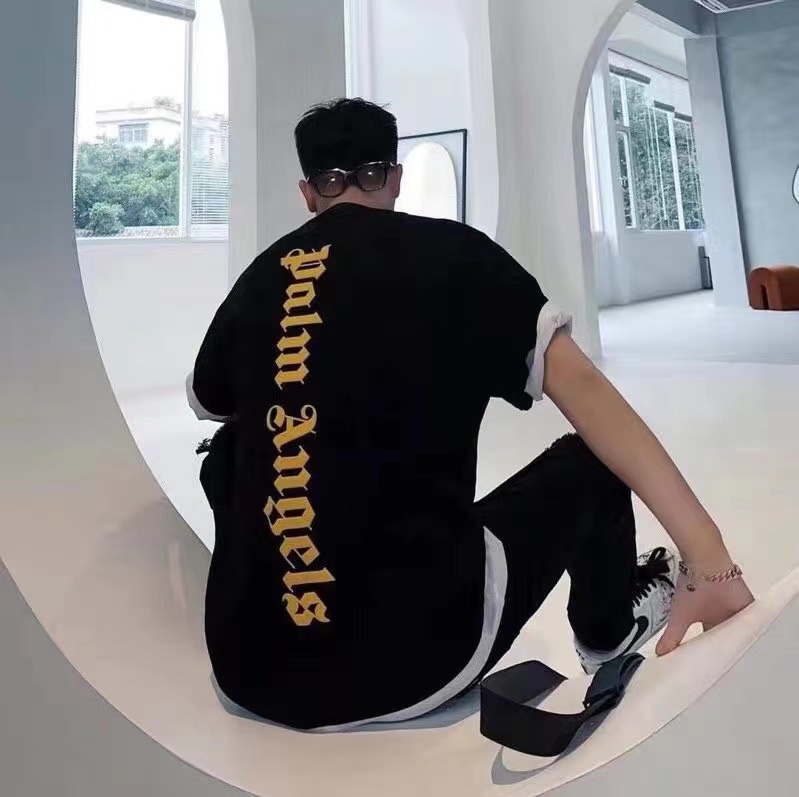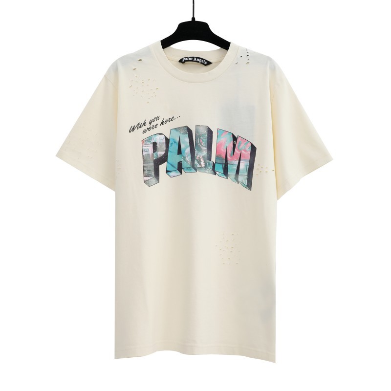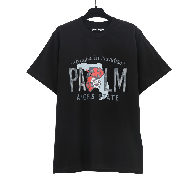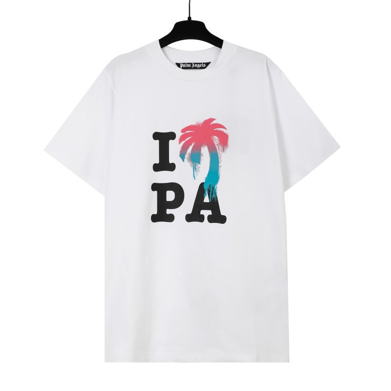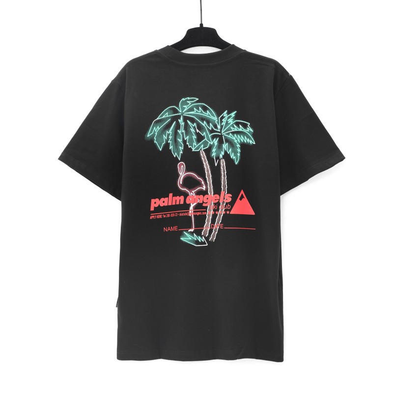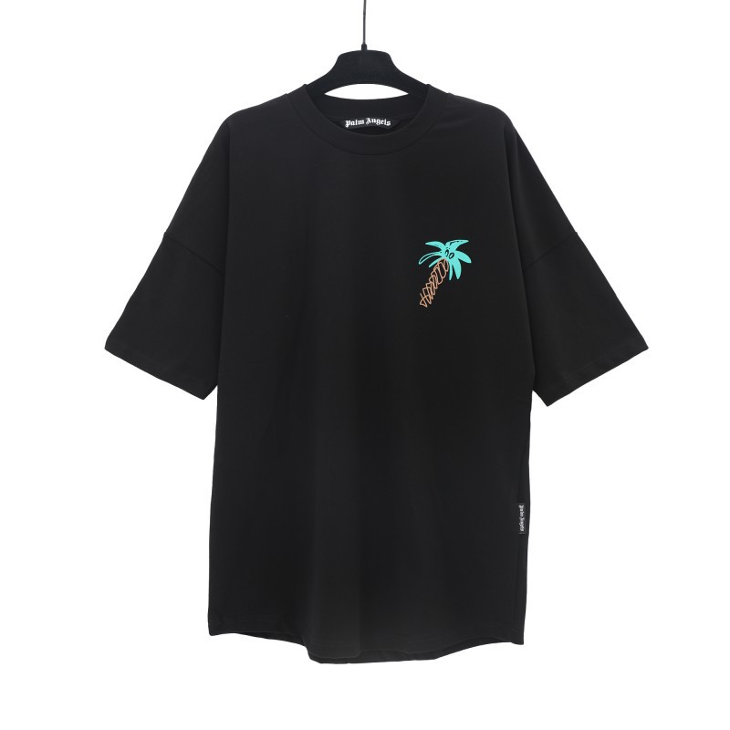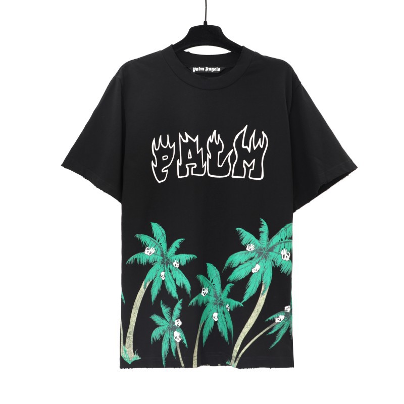 批发正确版pa断头熊短袖棕榈树高街潮牌蝙蝠袖后背大logo字母T恤