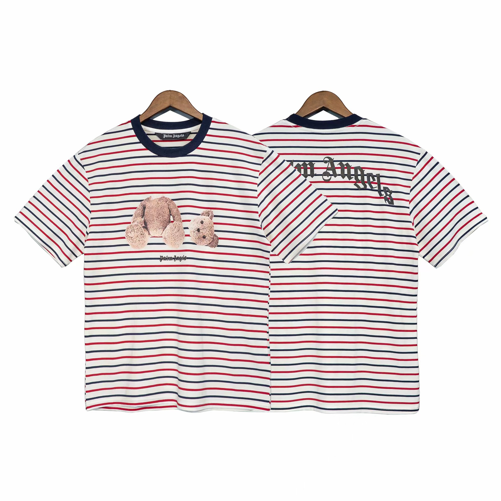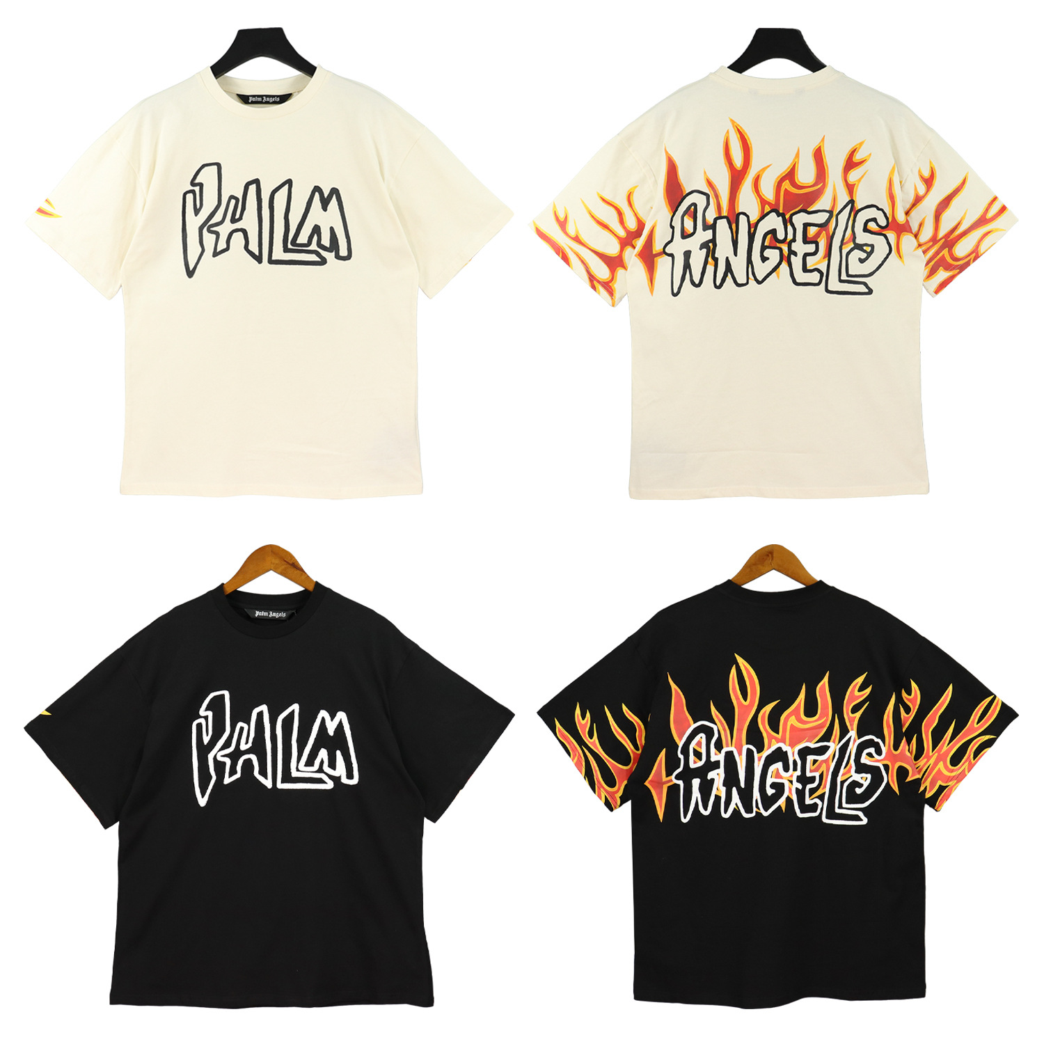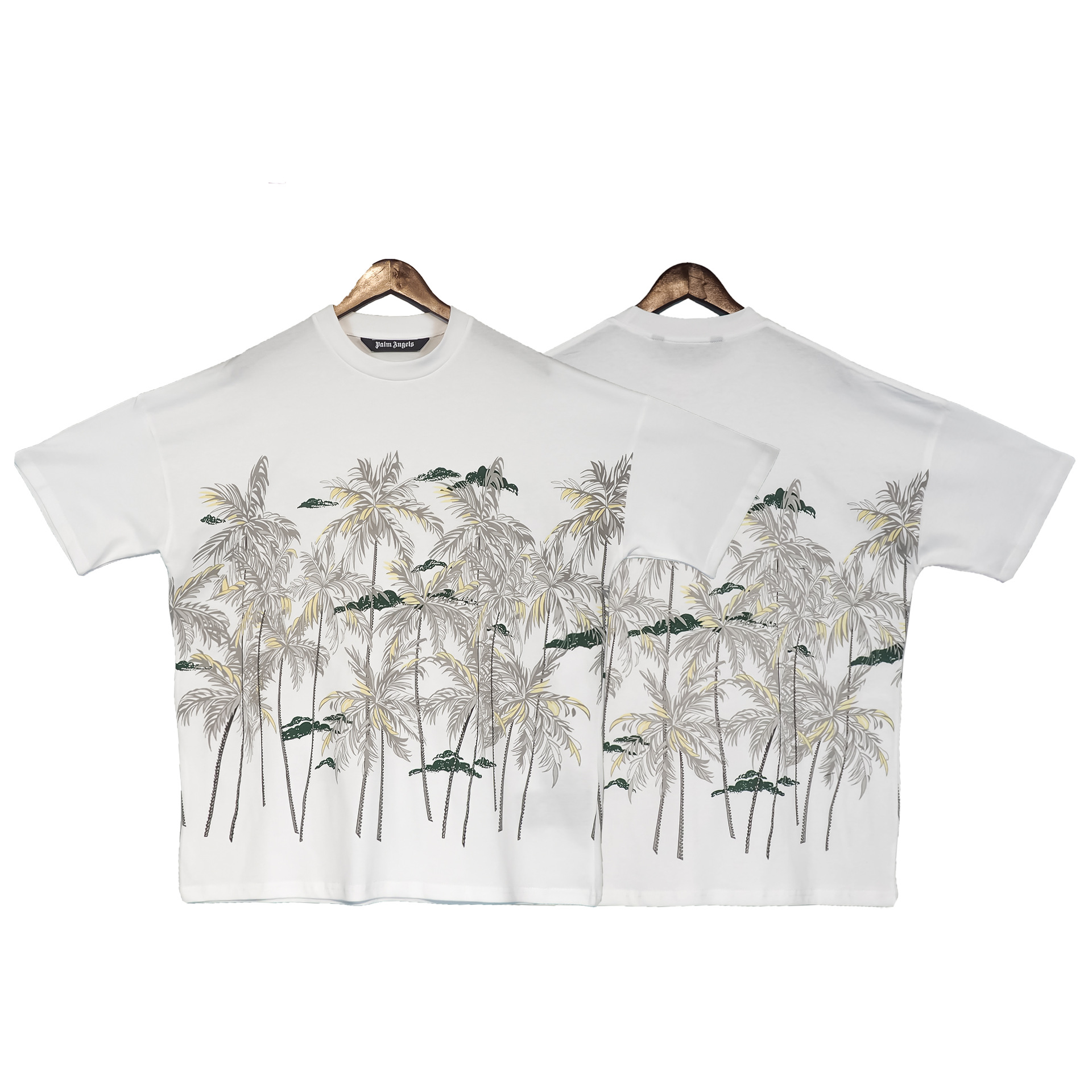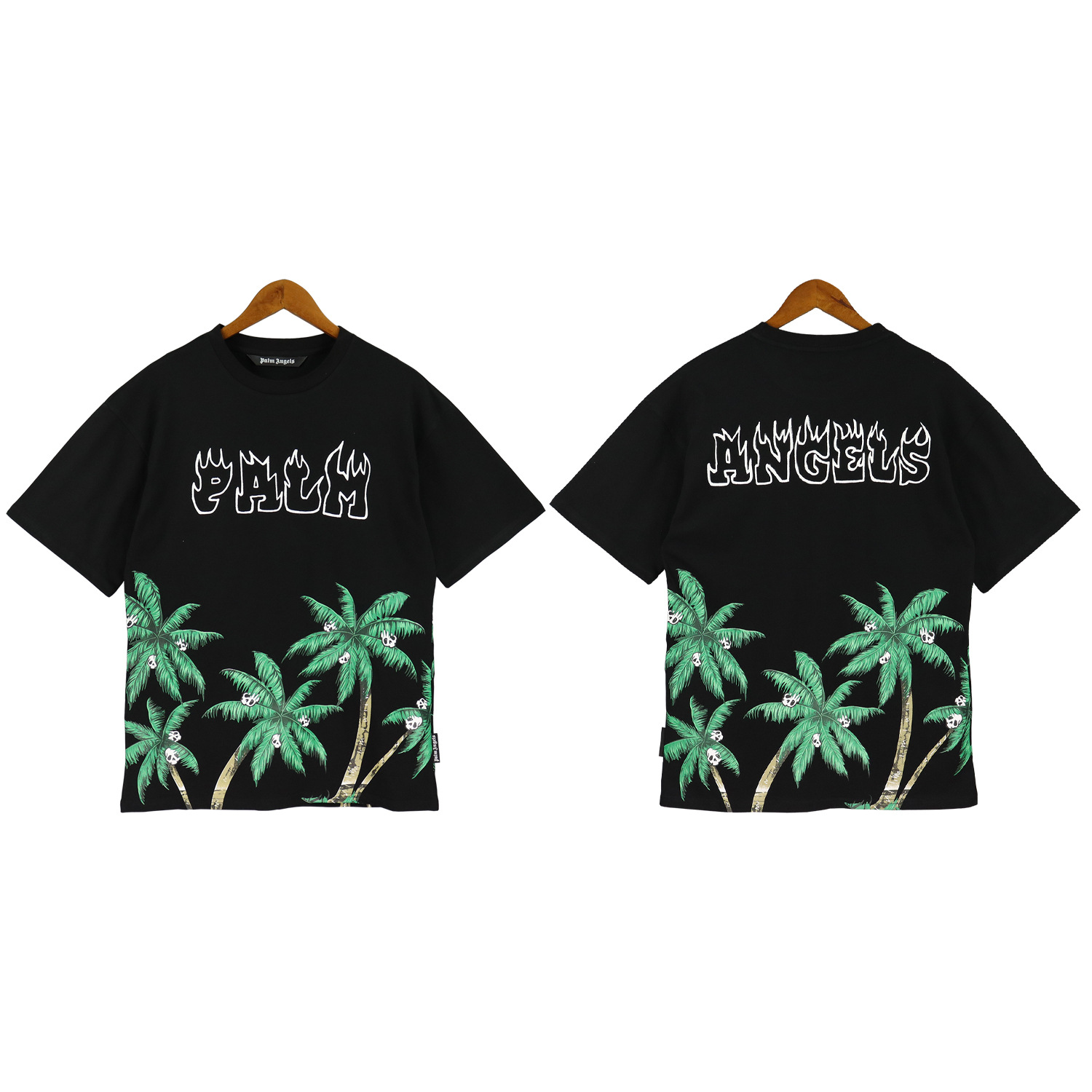 外贸跨境批发PA潮牌23新款断头熊棕榈椰树火焰鲨鱼情侣装宽松T恤