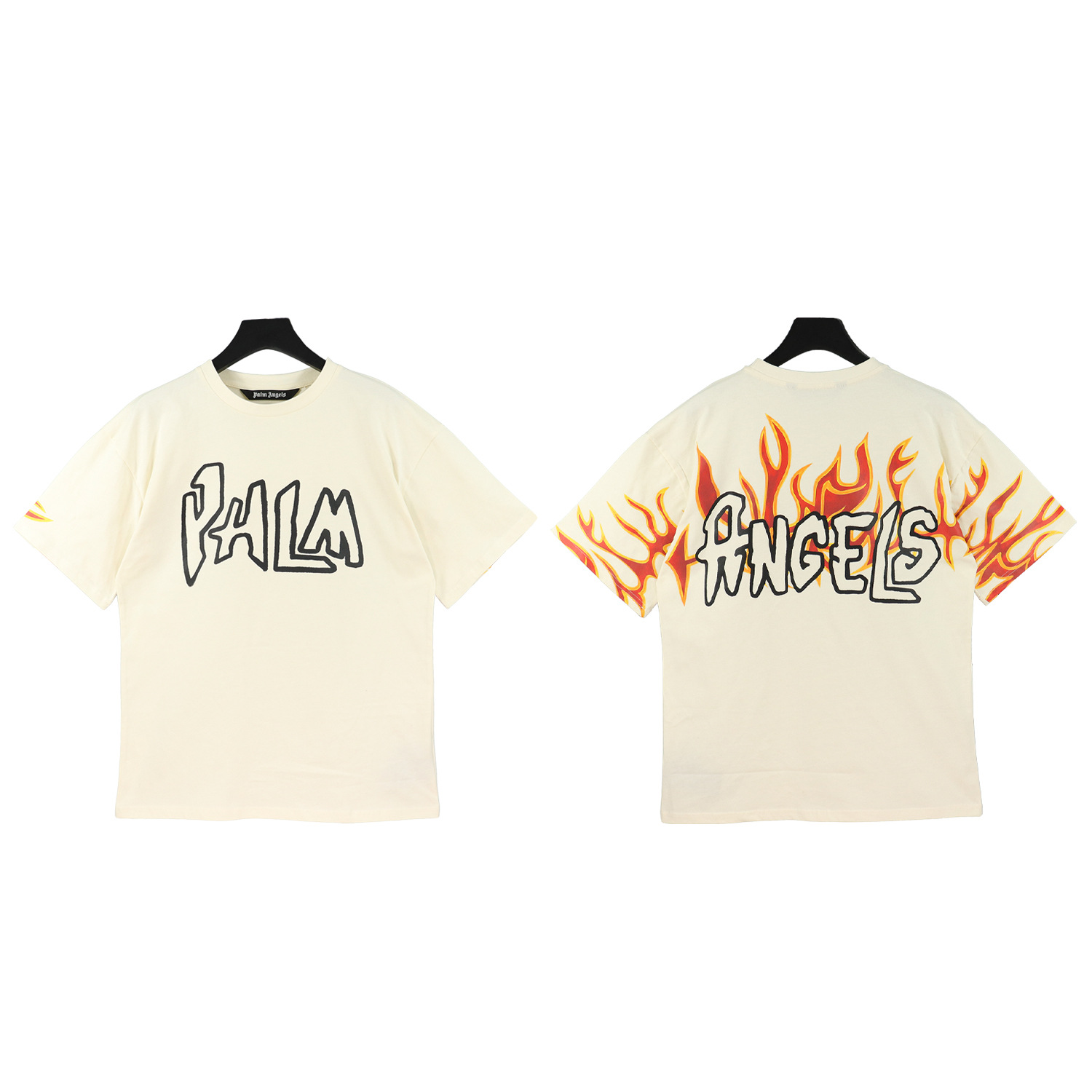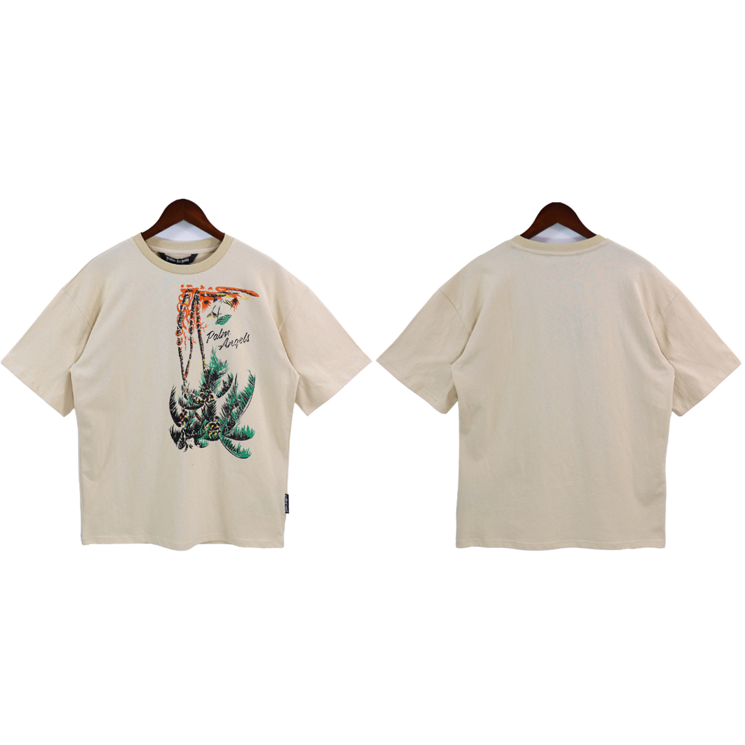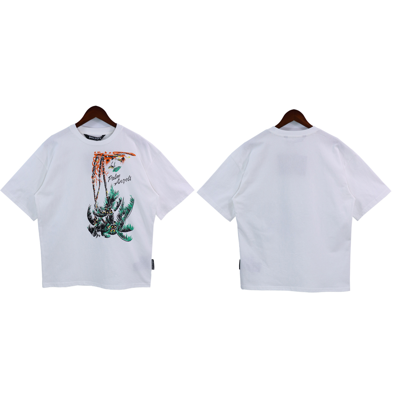 外贸跨境批发PA潮牌23新款断头熊棕榈椰树火焰鲨鱼情侣装宽松T恤
