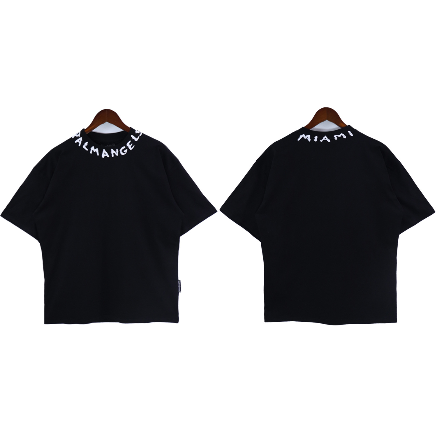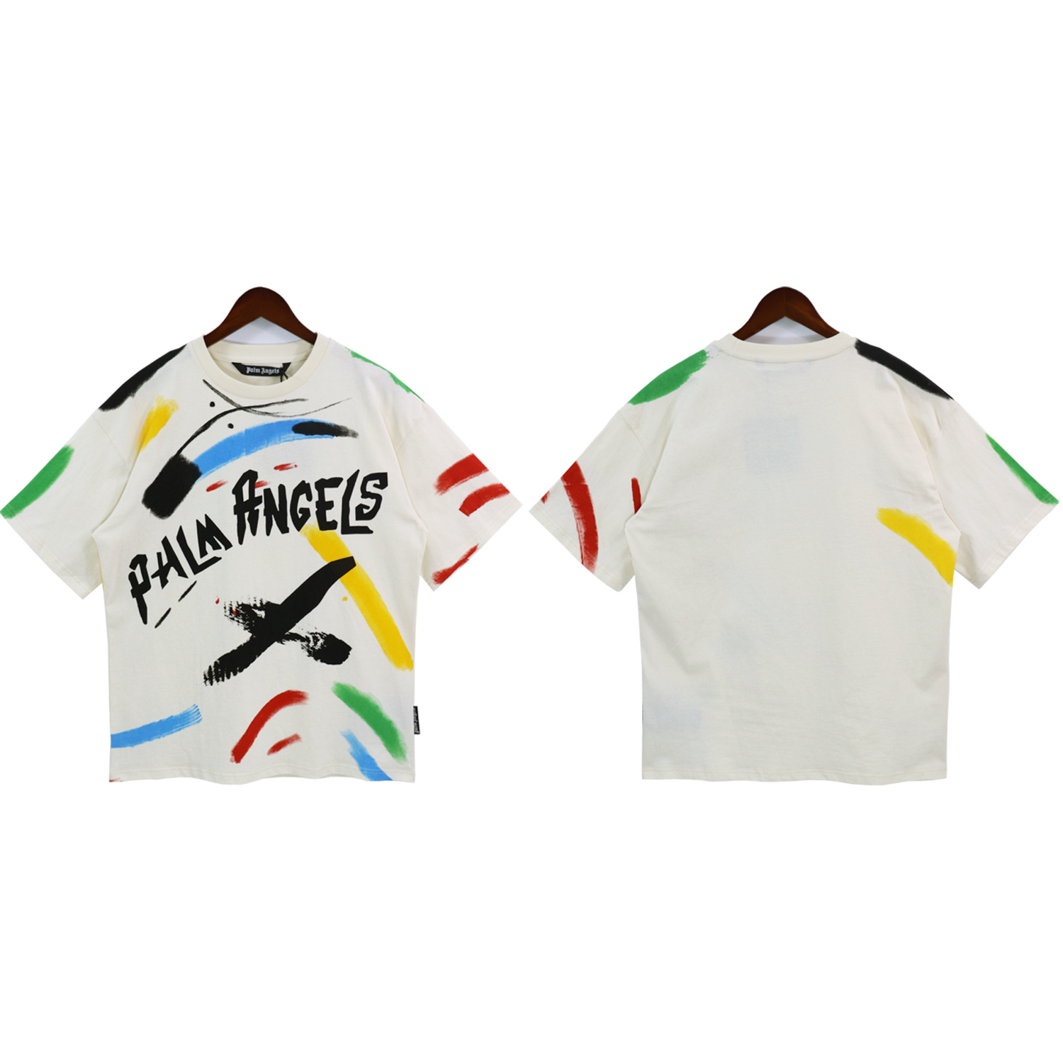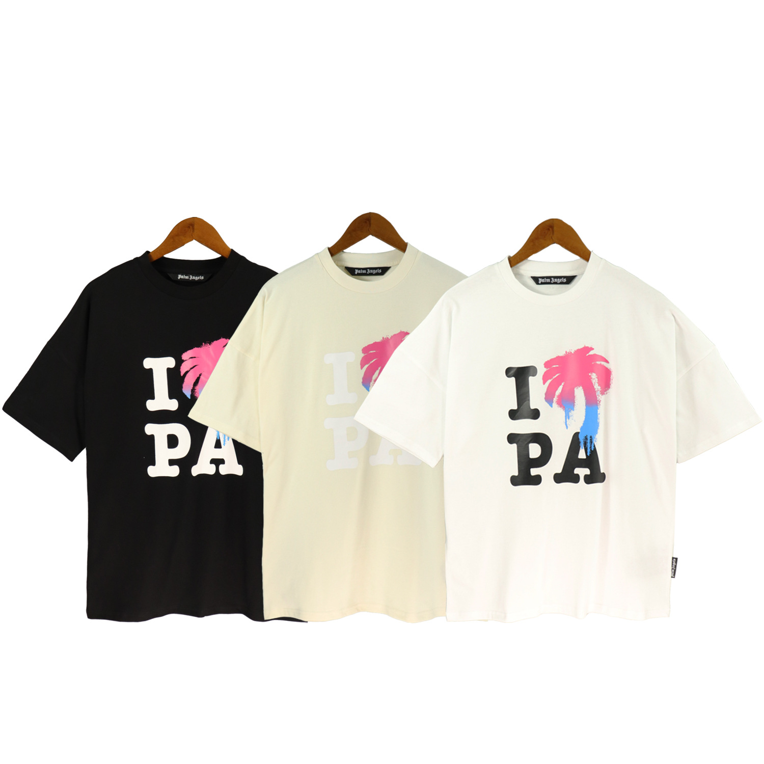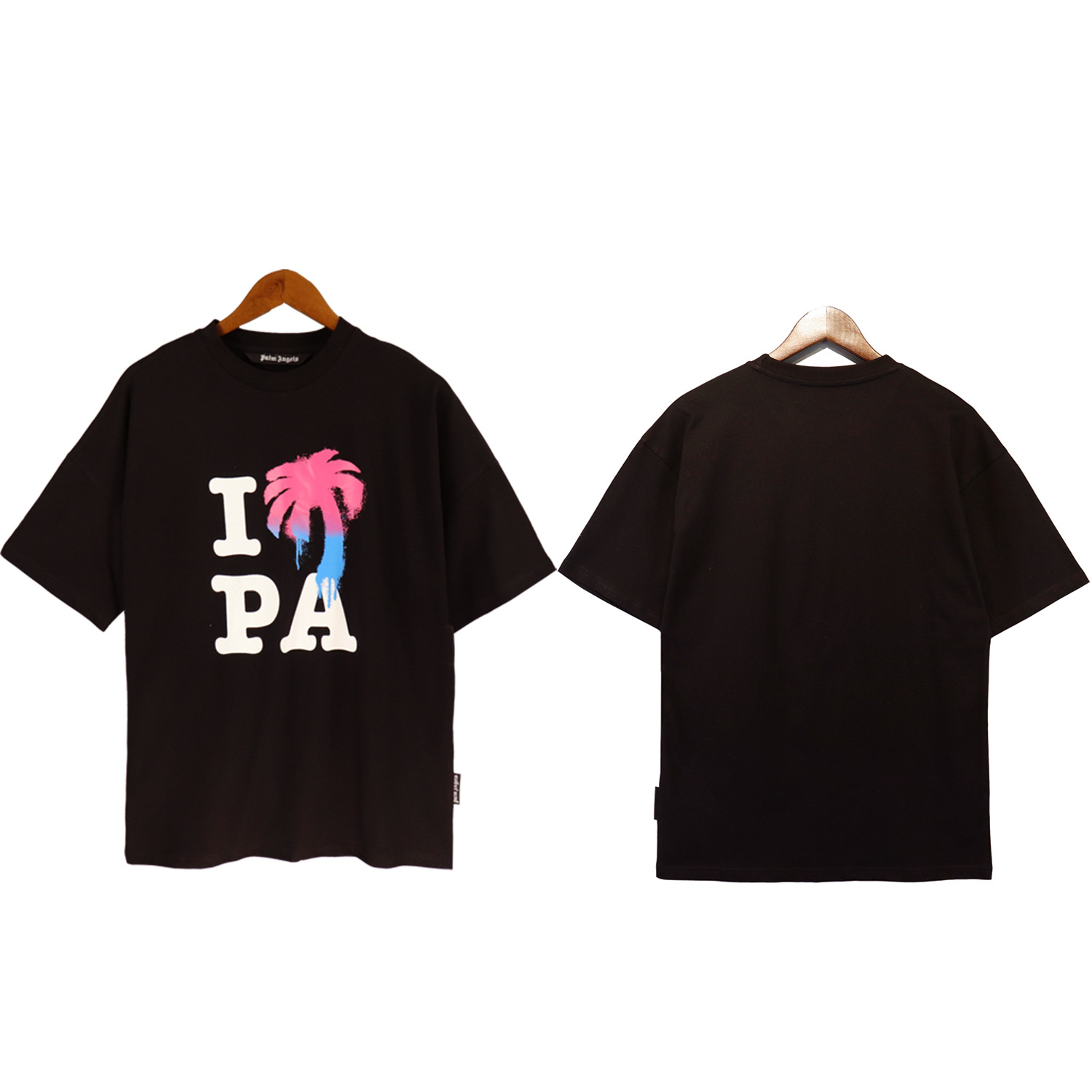 外贸跨境批发PA潮牌23新款断头熊棕榈椰树火焰鲨鱼情侣装宽松T恤