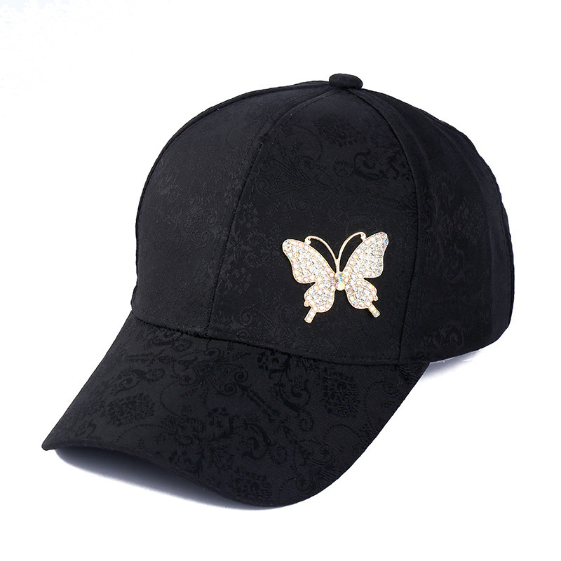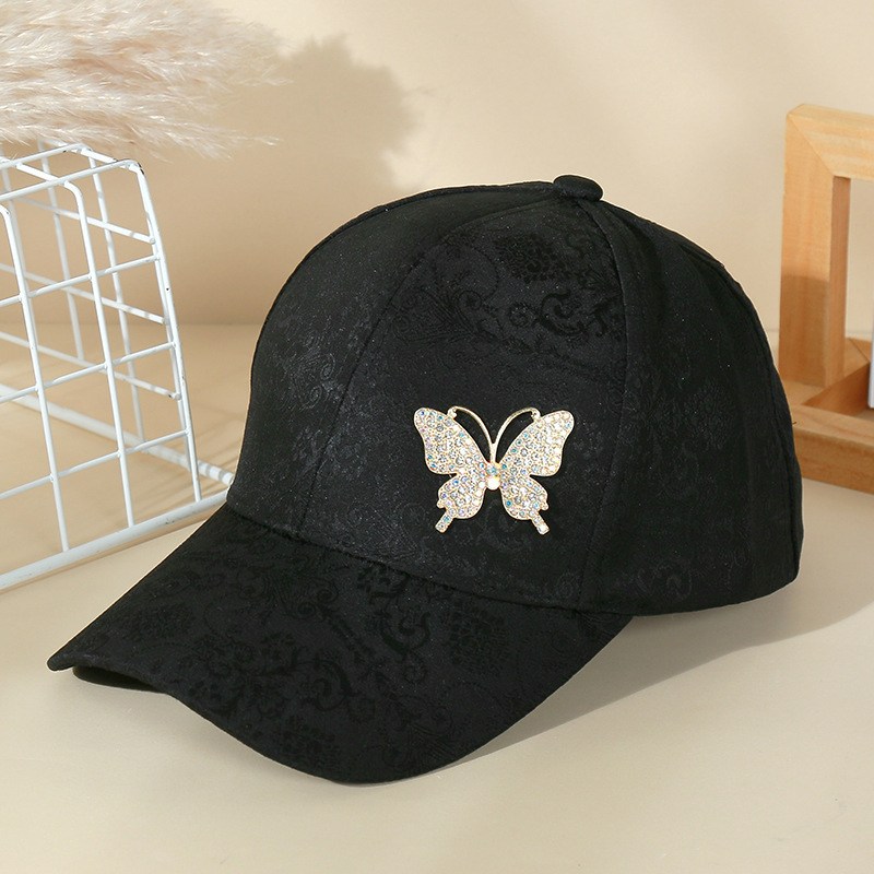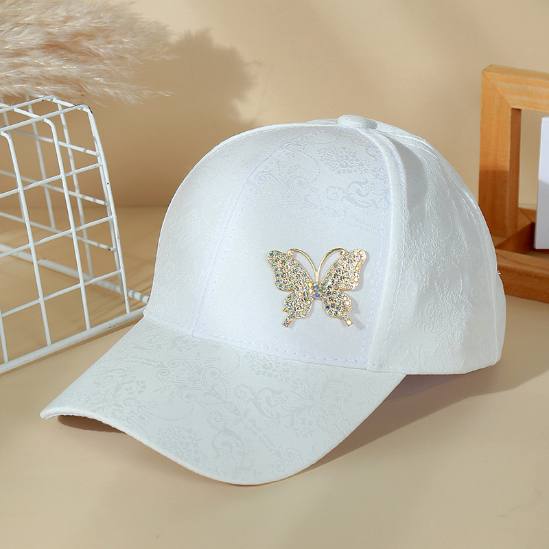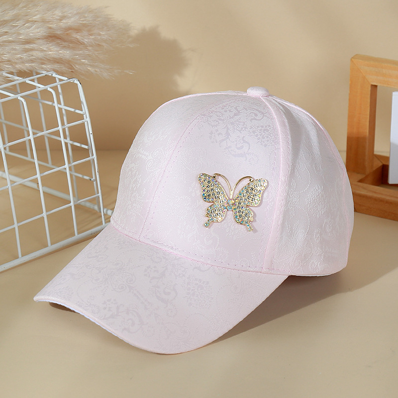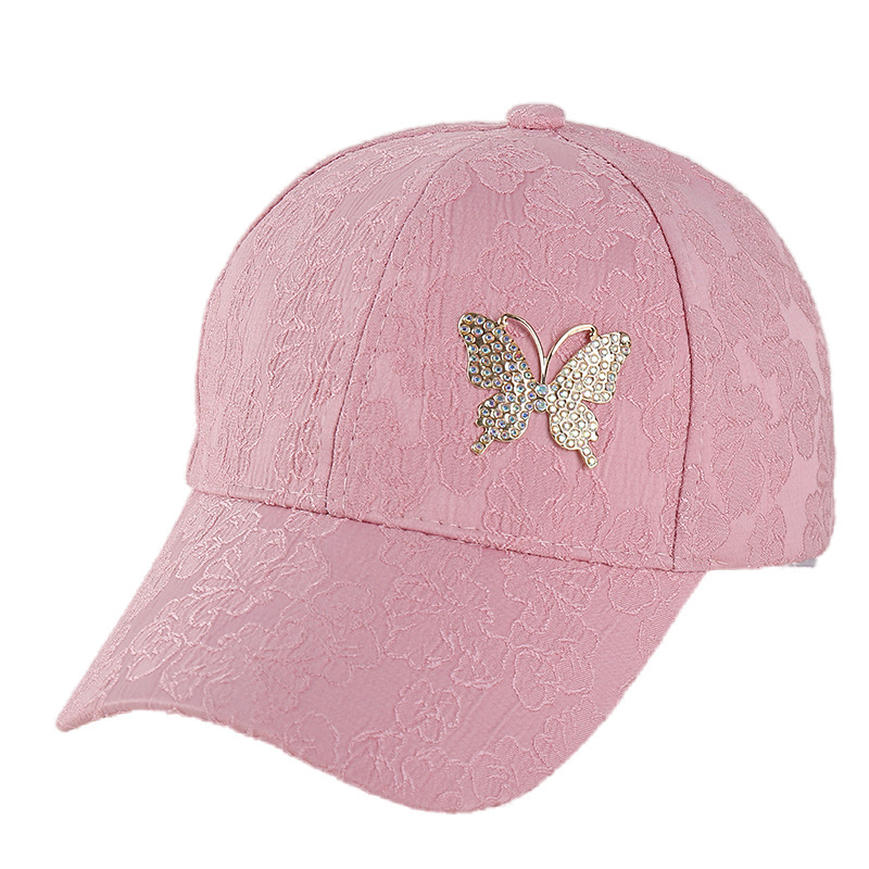 春夏季洋气百搭遮阳帽蕾丝花纹鸭舌帽韩版女士水钻蝴蝶棒球帽子女