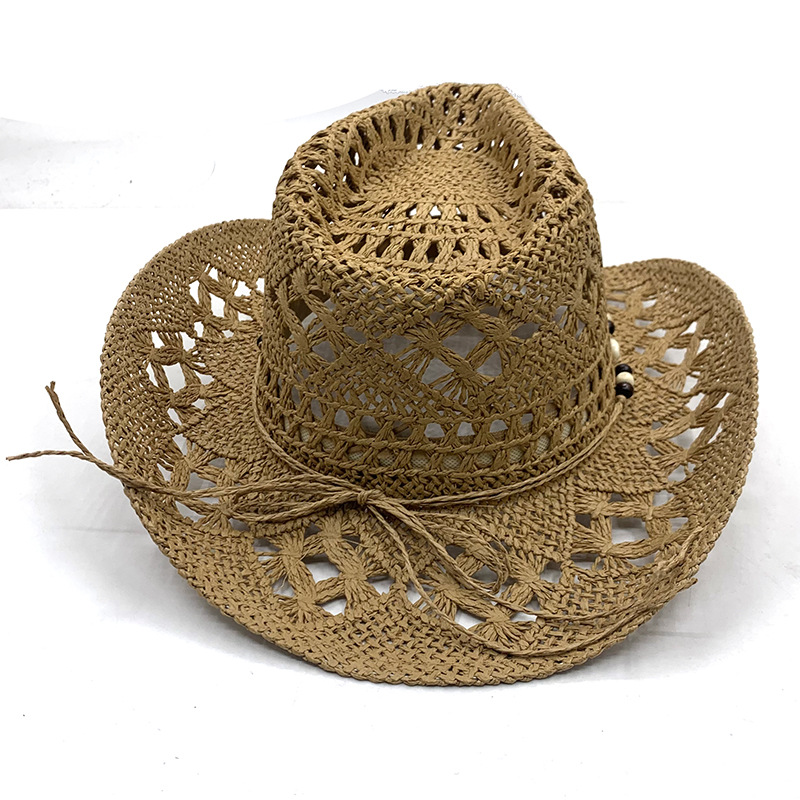 新款春夏户外男女情侣帽旅游防晒遮阳帽西部牛仔草帽手工编织草帽