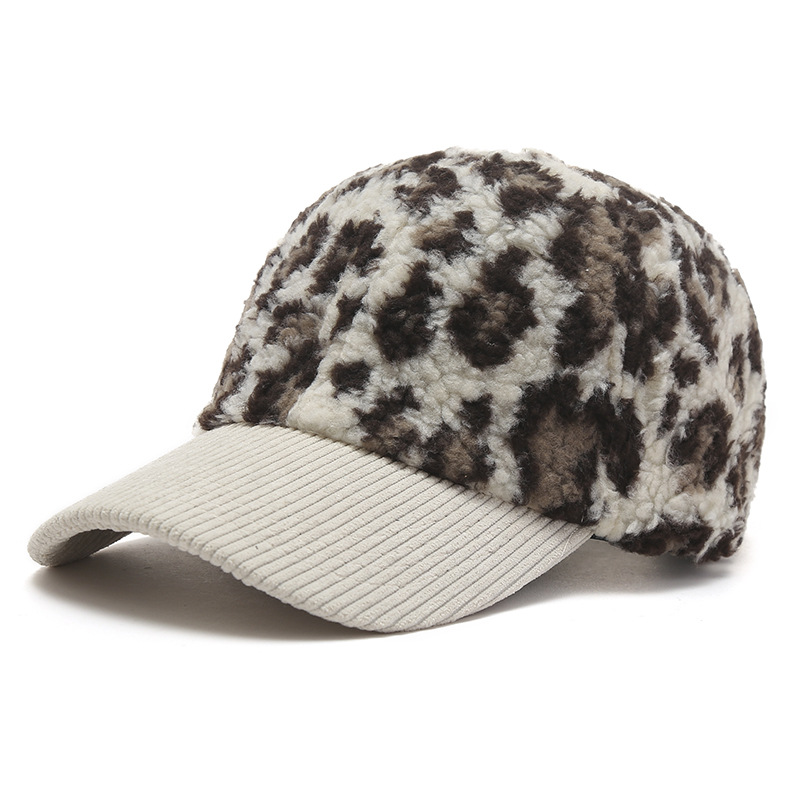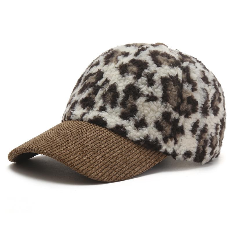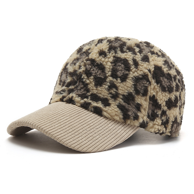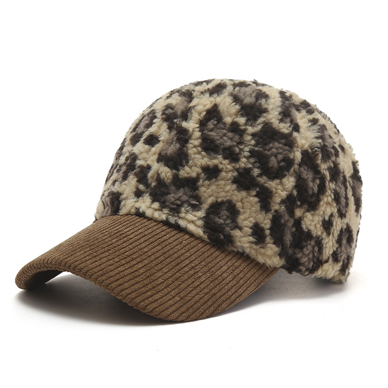 秋冬季厚款豹纹棒球帽子时尚男女士成人户外旅游滑雪保暖太阳帽子