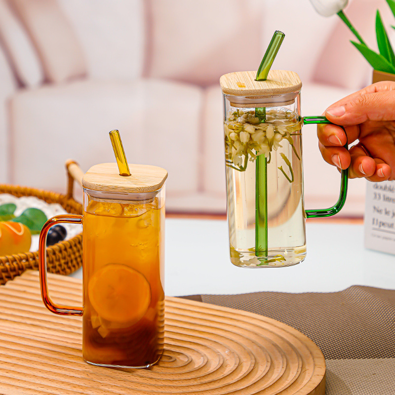 新款方形玻璃杯带把手高硼硅高颜值吸管水杯女耐高温平底可加热杯