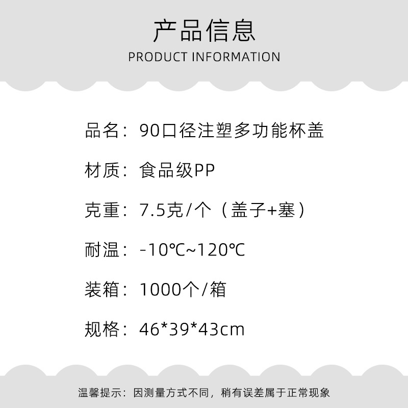 90口径奶茶防漏杯盖咖啡盖一次性纸杯盖通用多功能塑料盖子单买