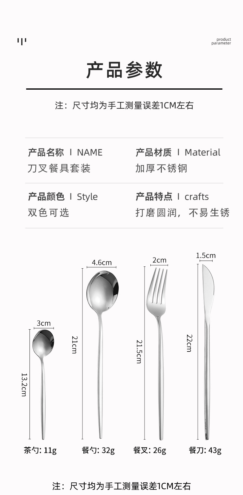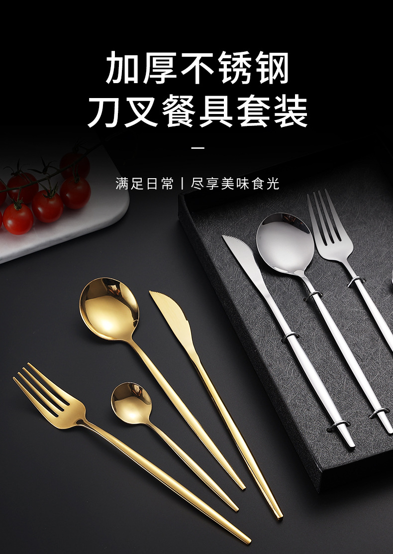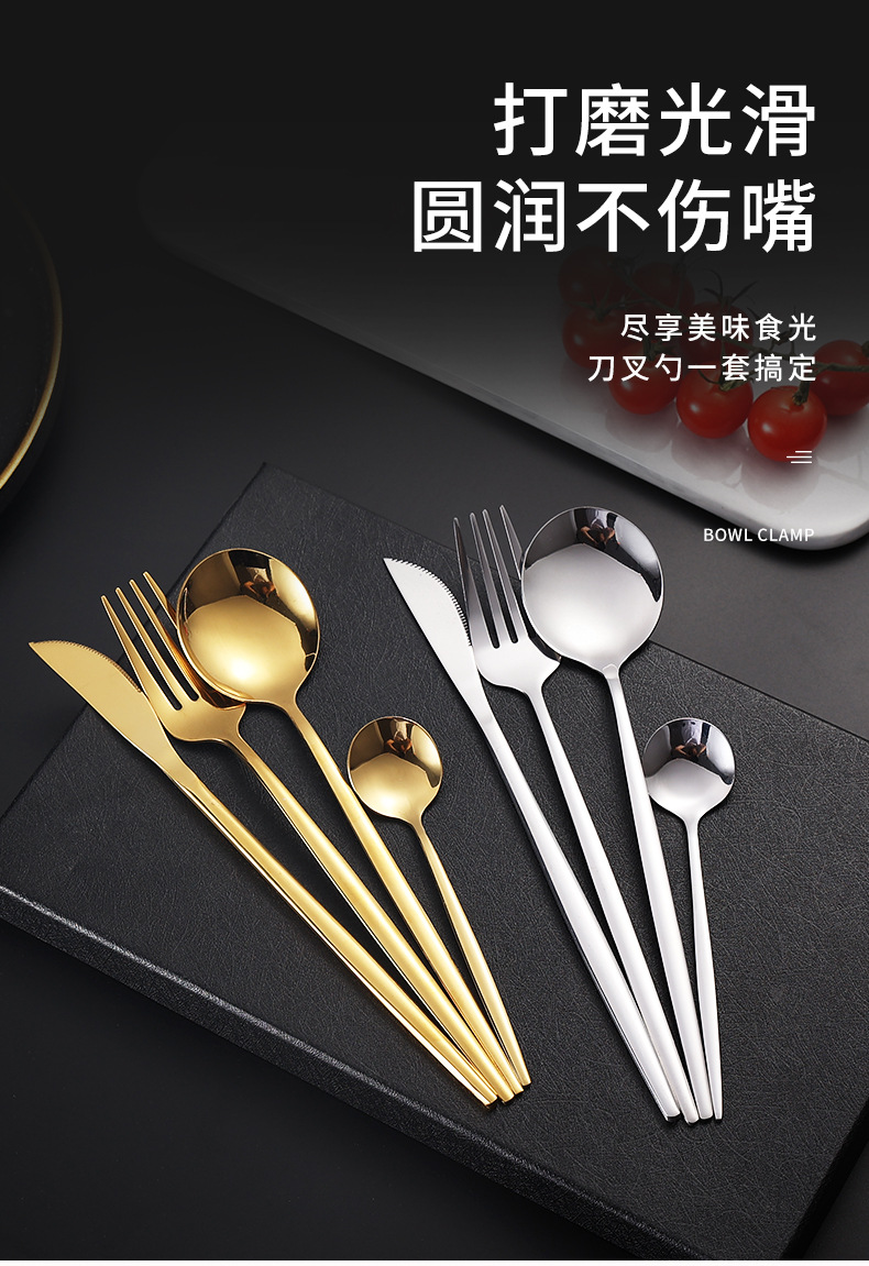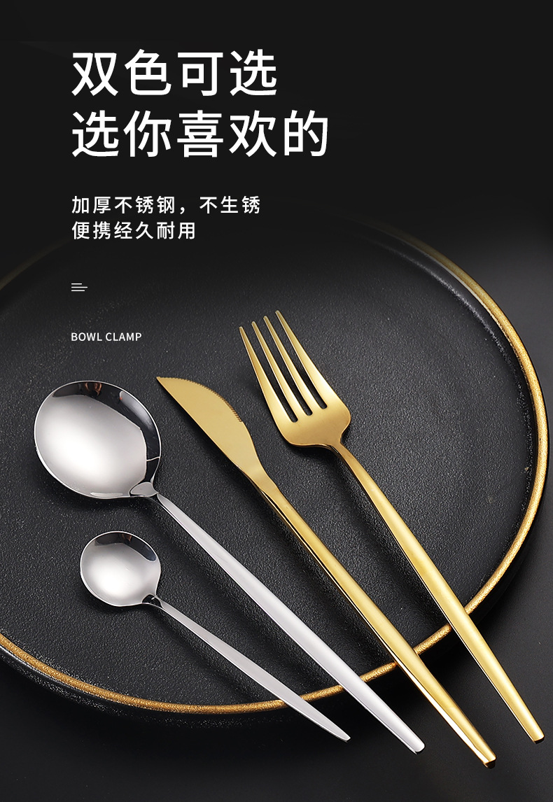 不锈钢餐具葡萄牙西餐刀叉勺4件套餐厅酒店创意牛排刀叉甜品小勺