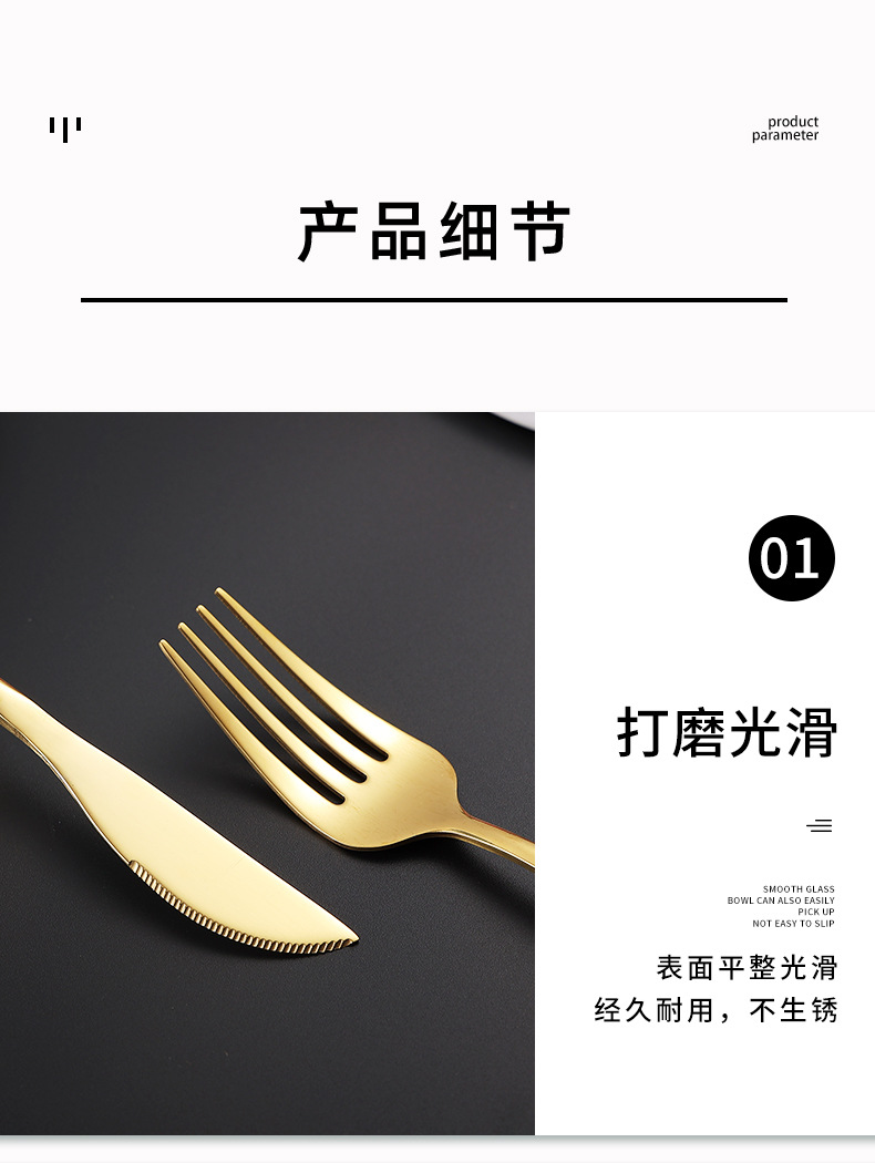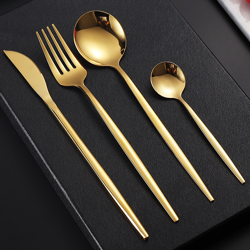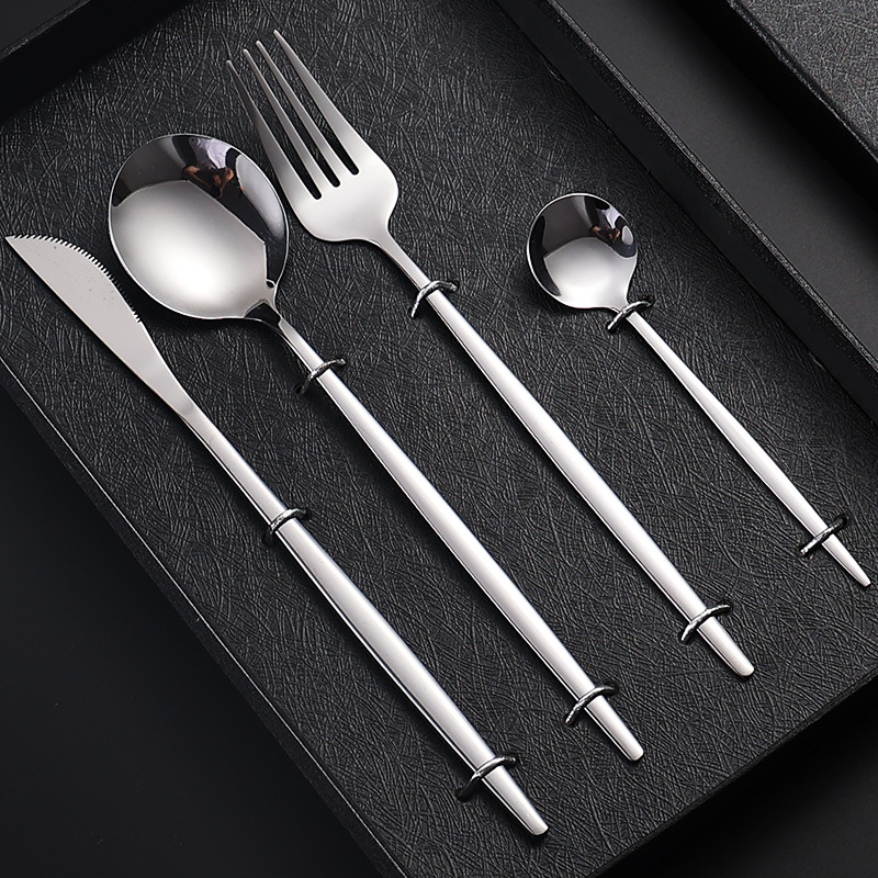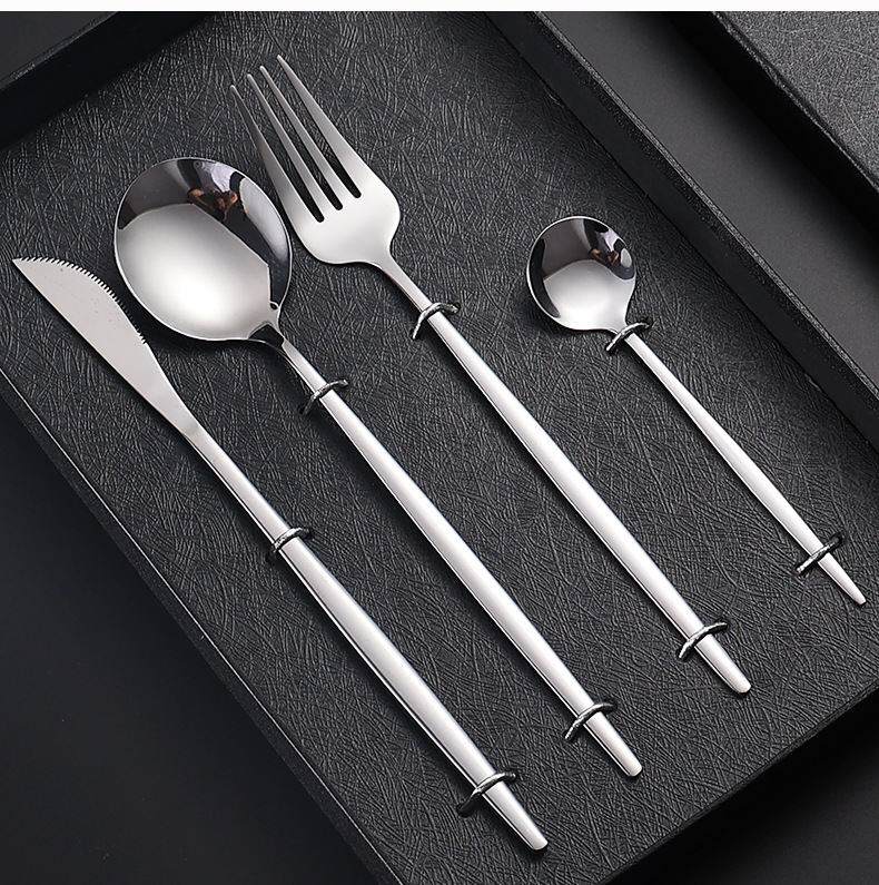 不锈钢餐具葡萄牙西餐刀叉勺4件套餐厅酒店创意牛排刀叉甜品小勺