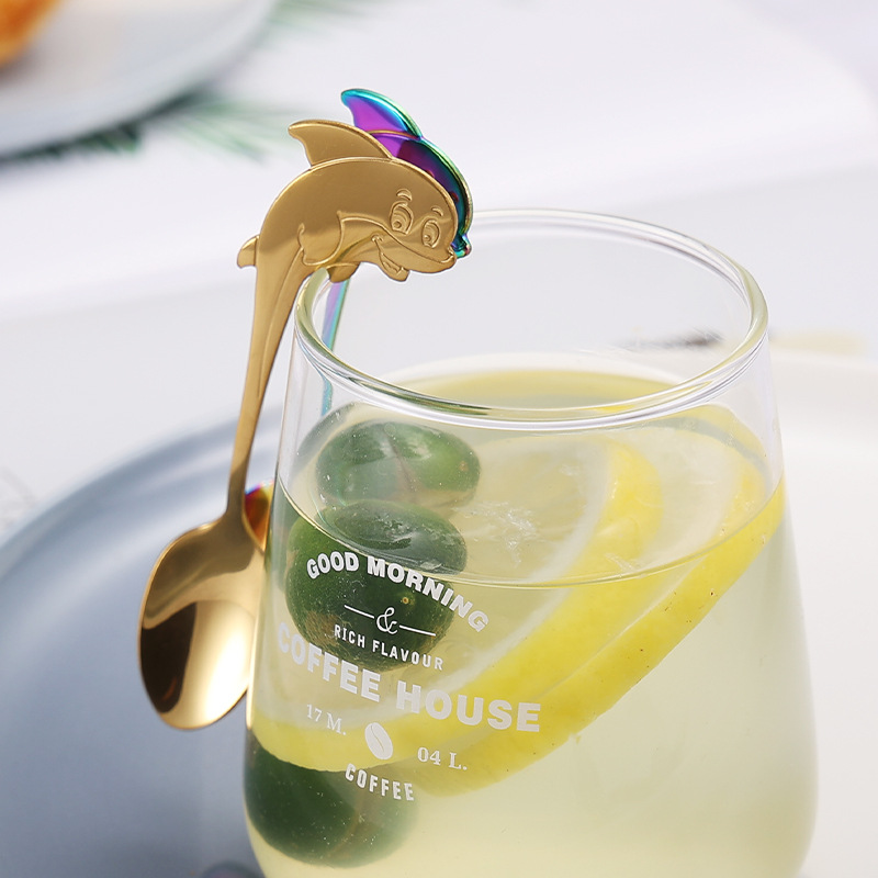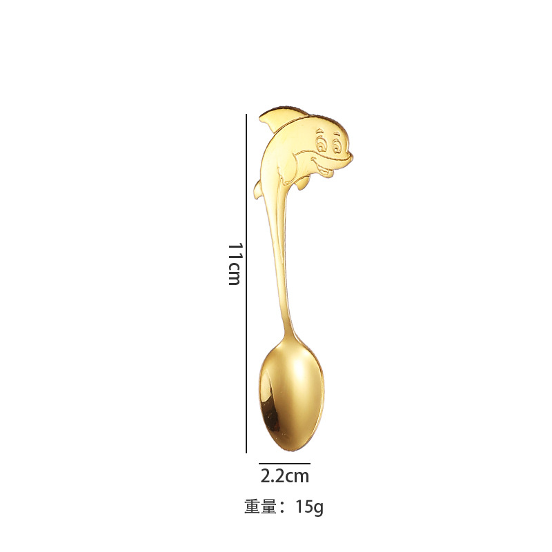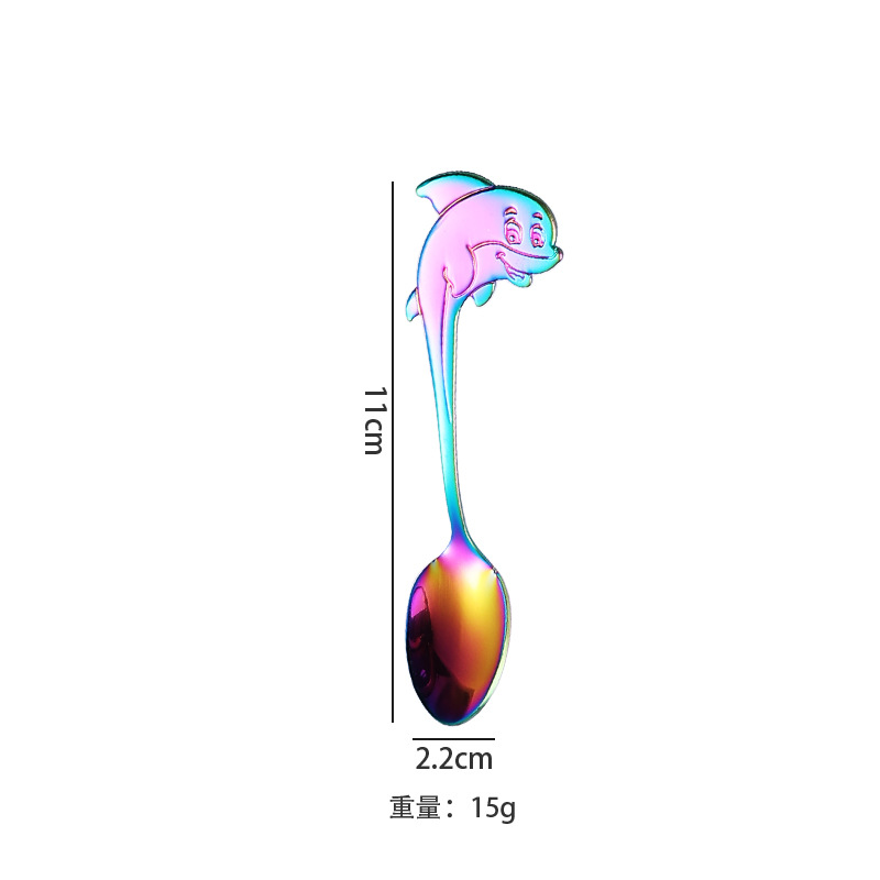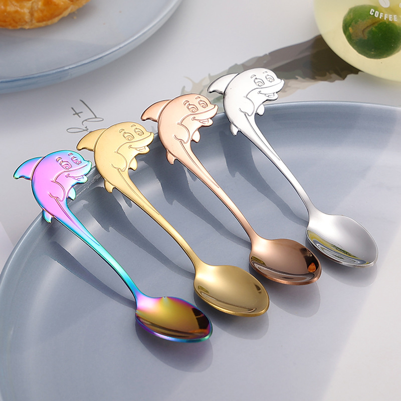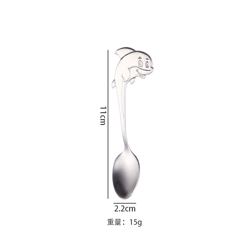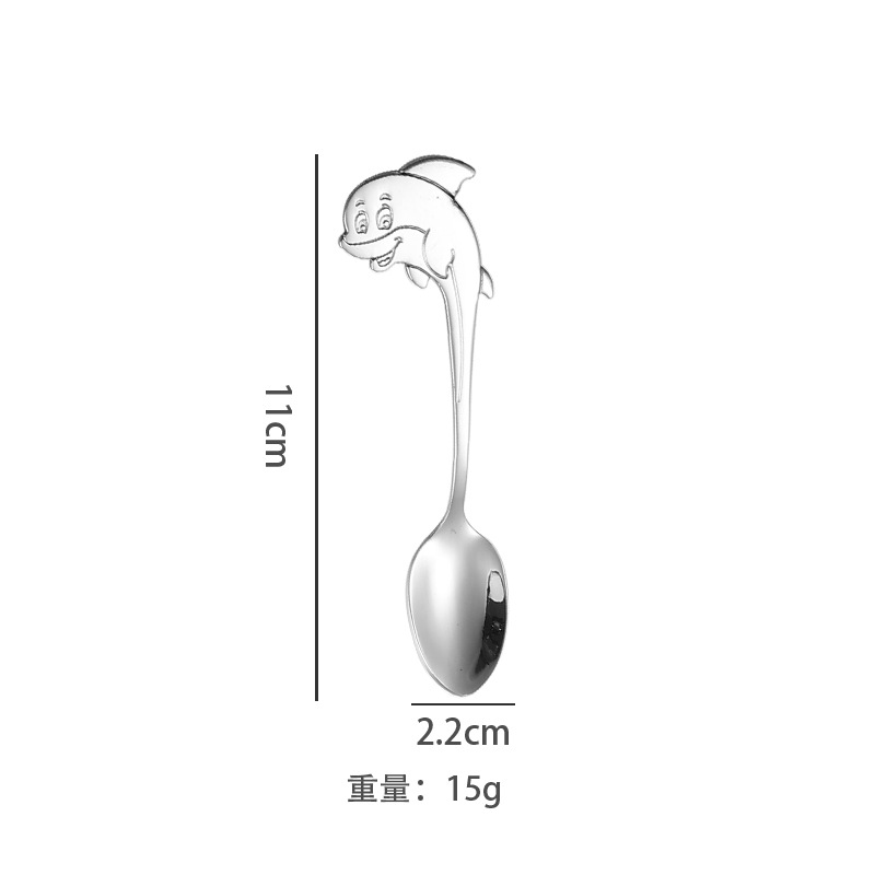 304不锈钢咖啡勺创意卡通海豚手柄小勺子可挂杯边缘甜品勺搅拌勺