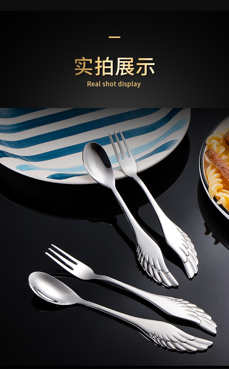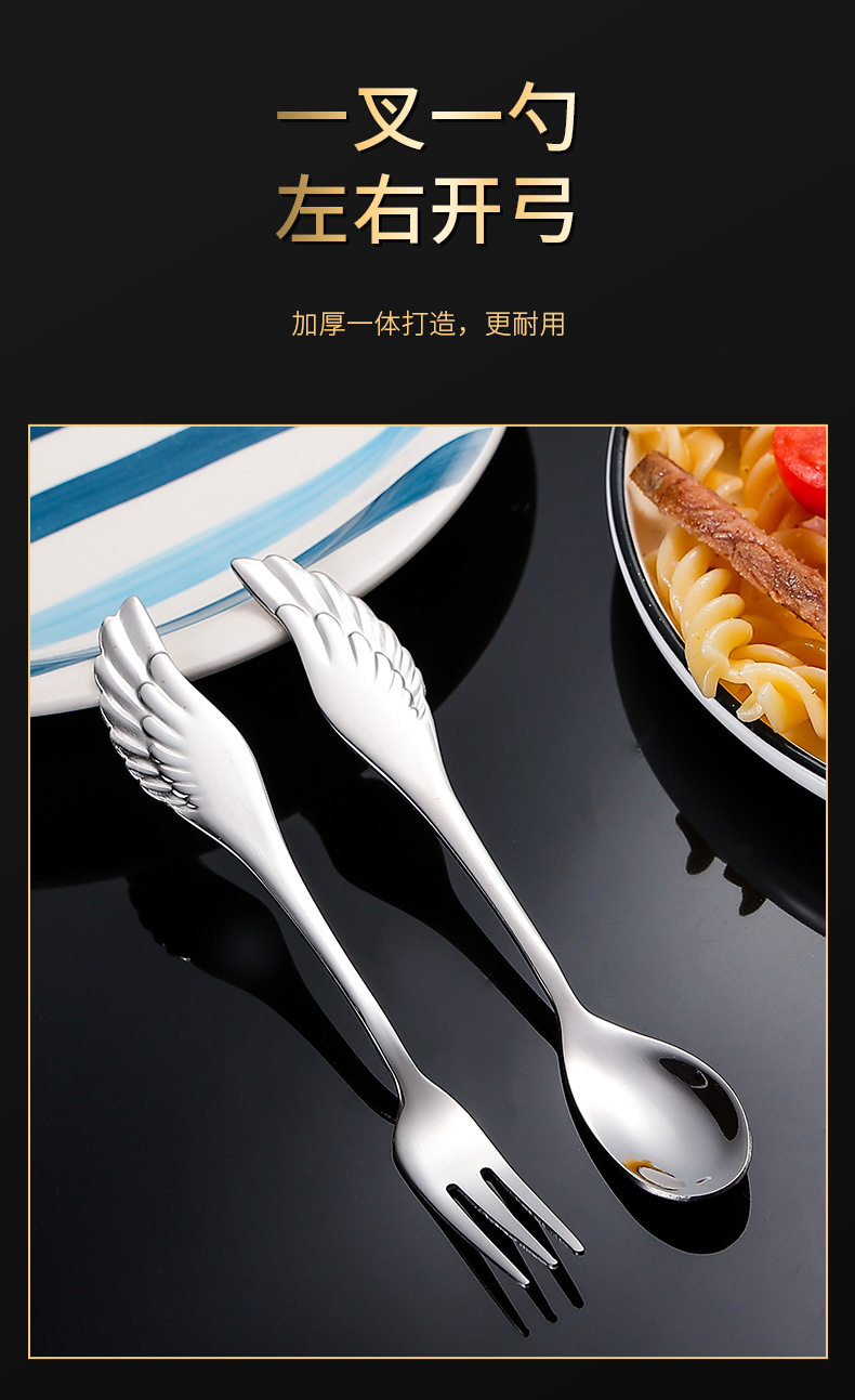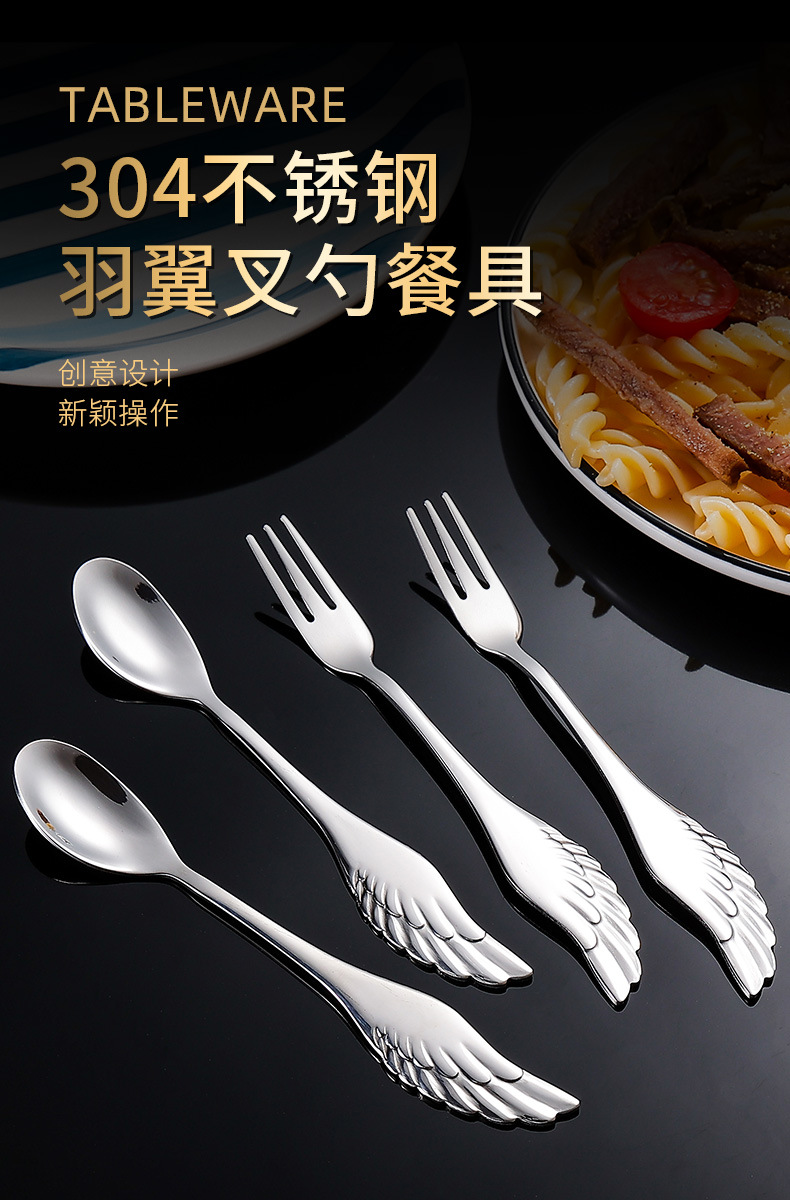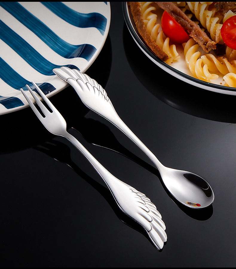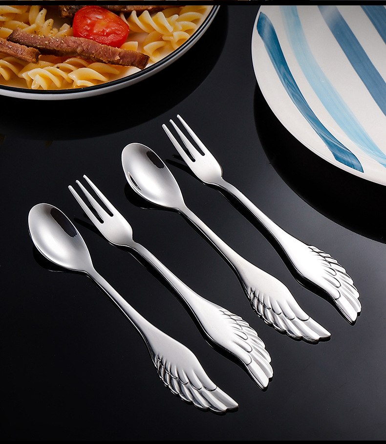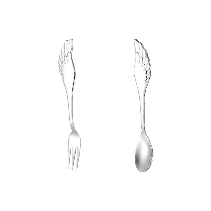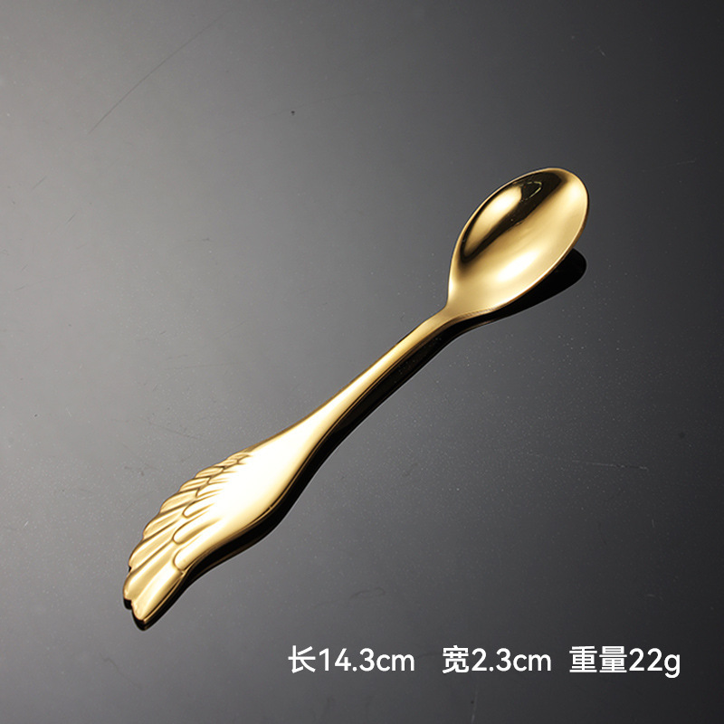 网红创意304不锈钢儿童勺搅拌勺天使之翼可爱咖啡勺甜品勺叉勺子