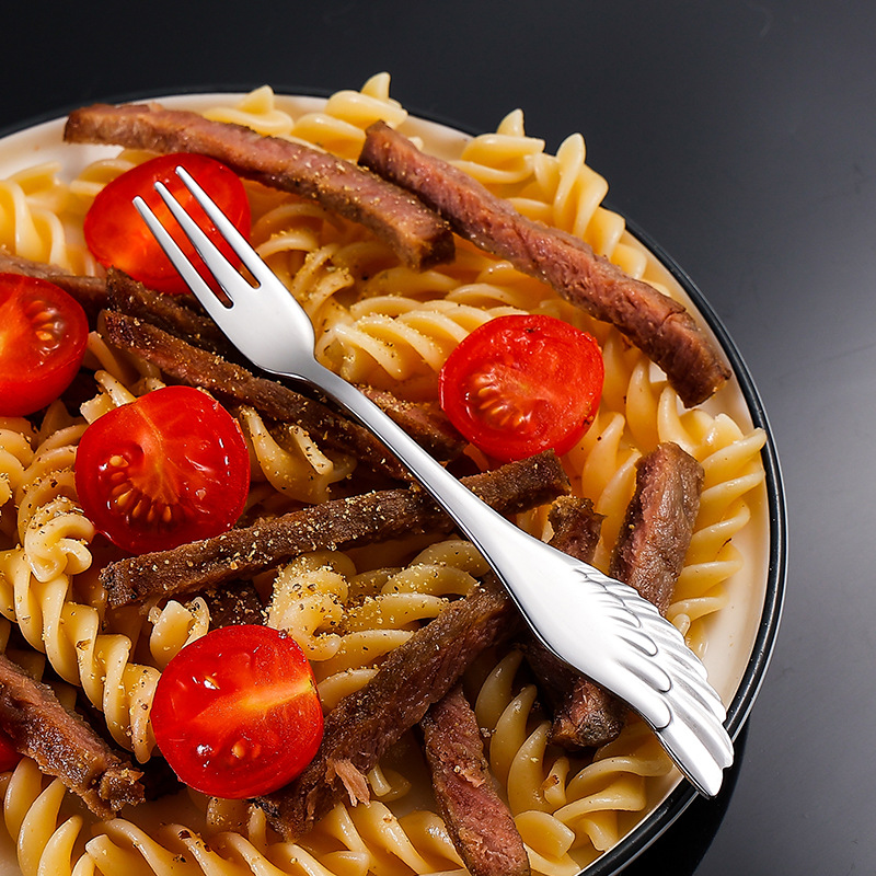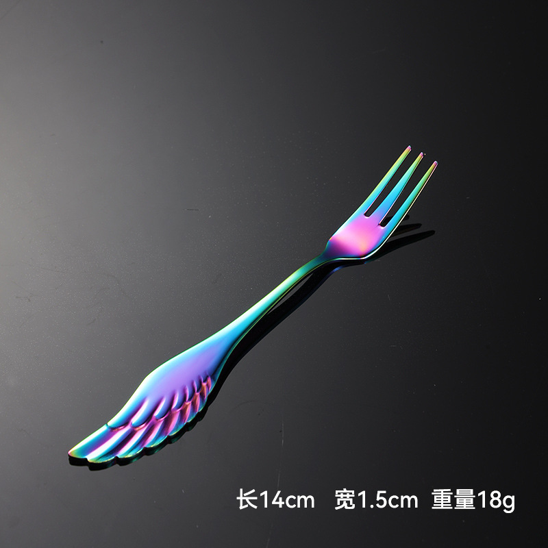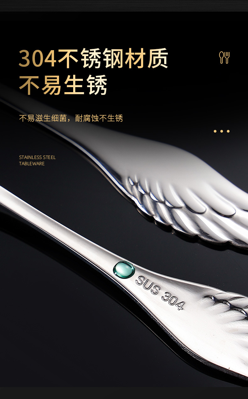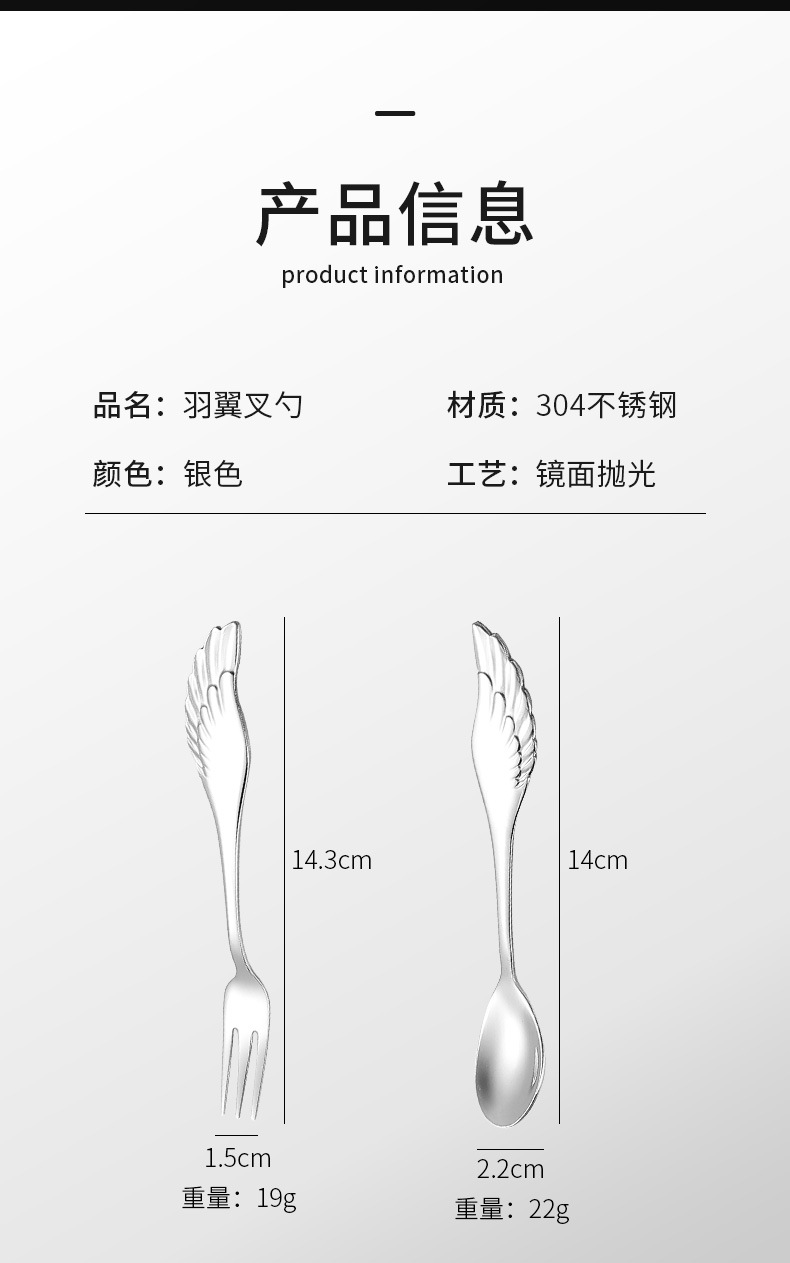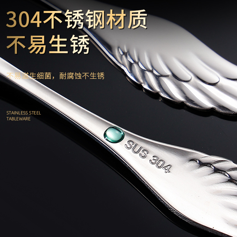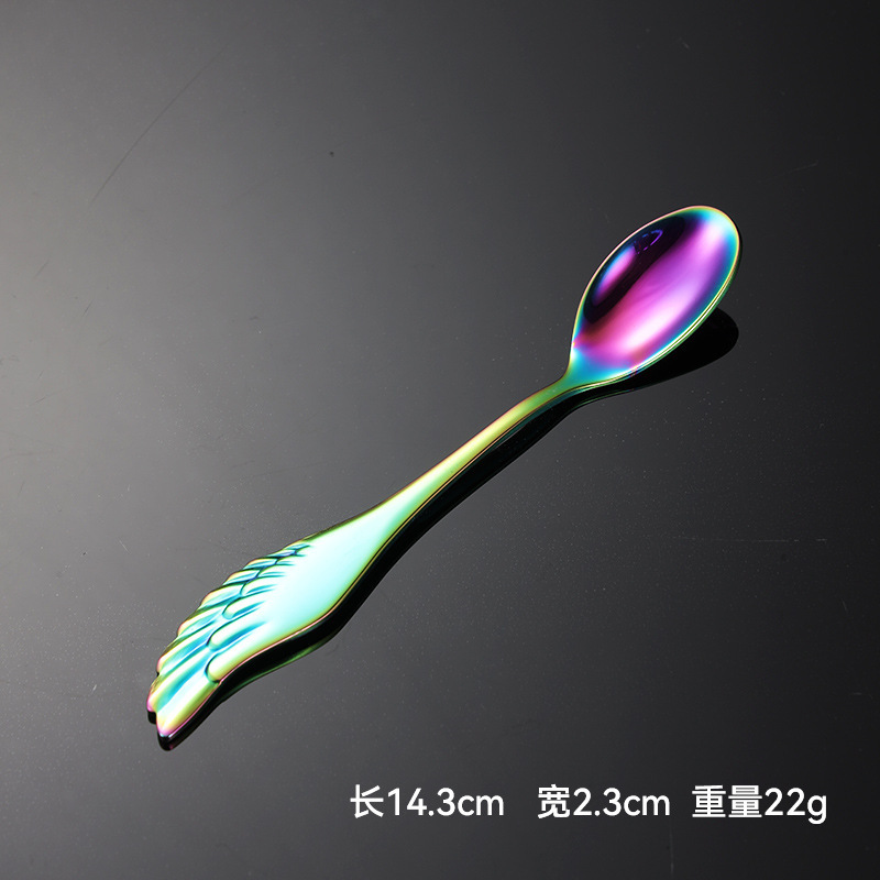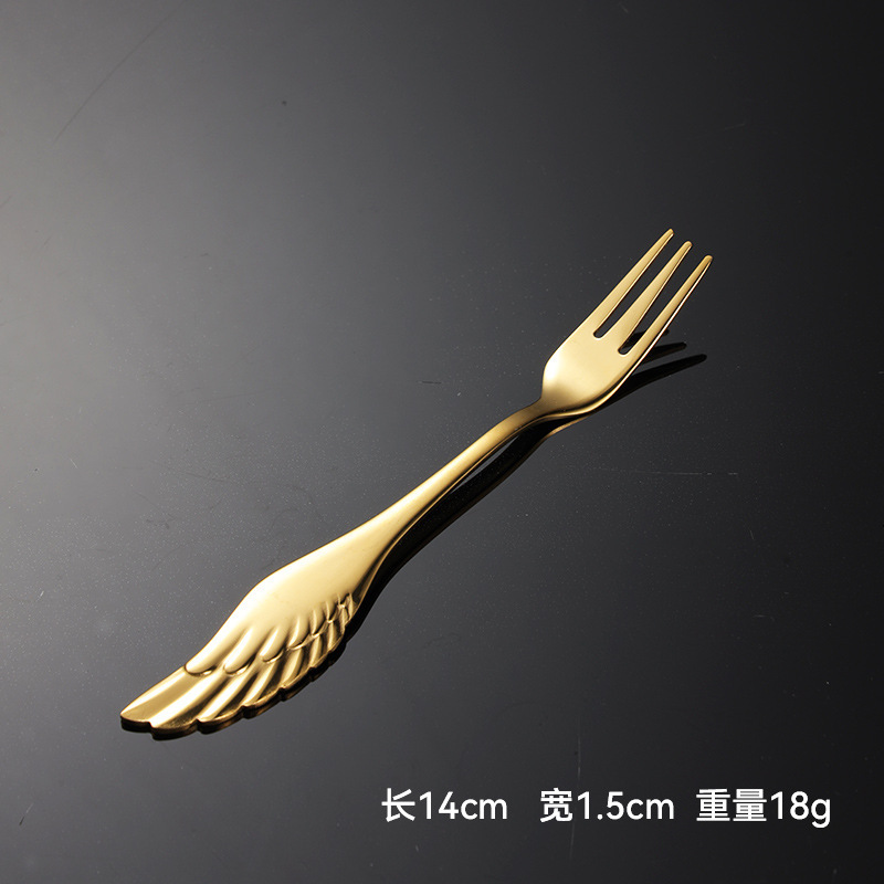 网红创意304不锈钢儿童勺搅拌勺天使之翼可爱咖啡勺甜品勺叉勺子