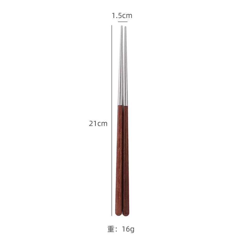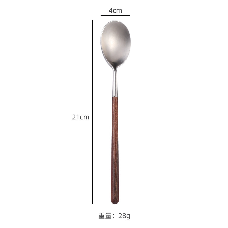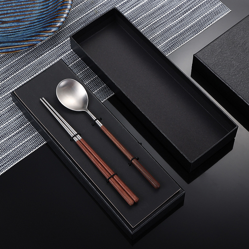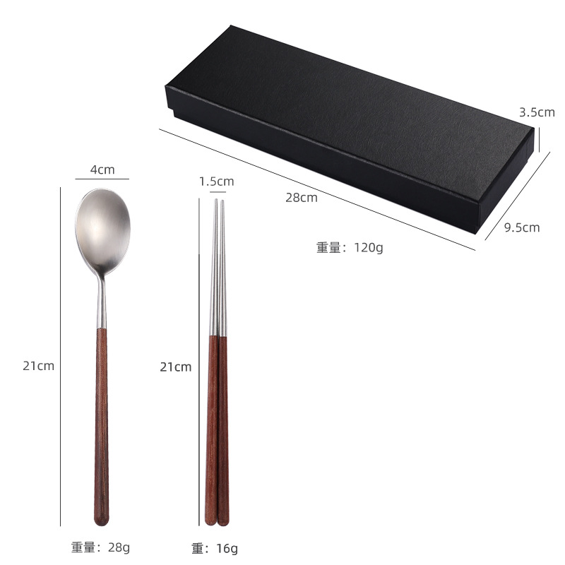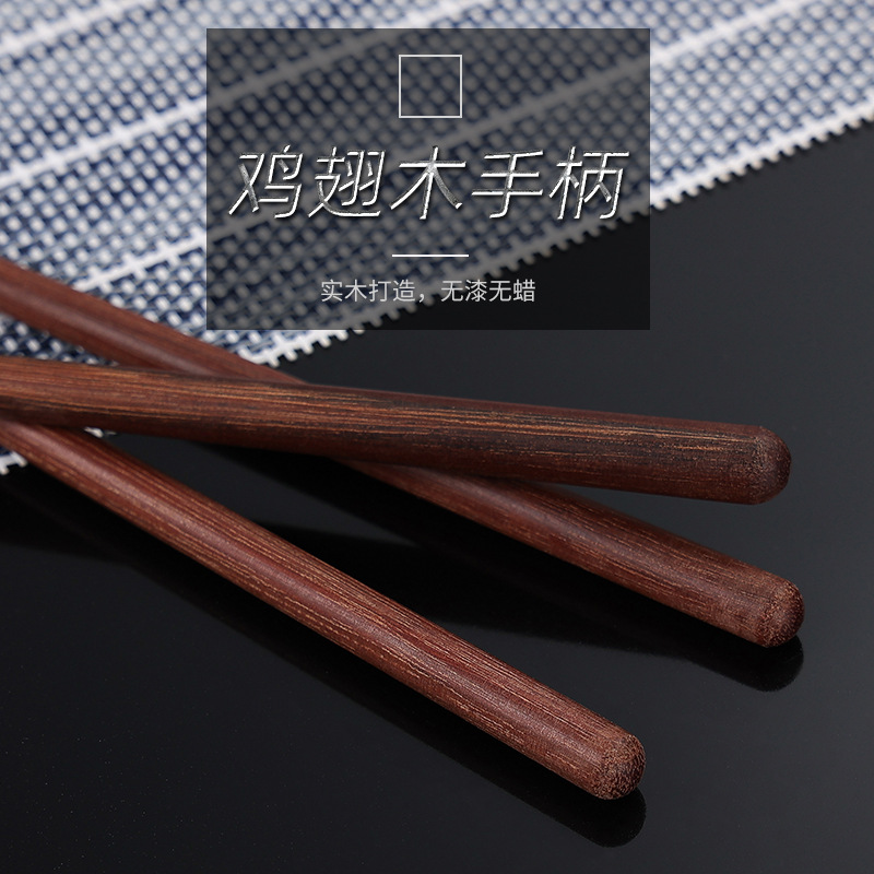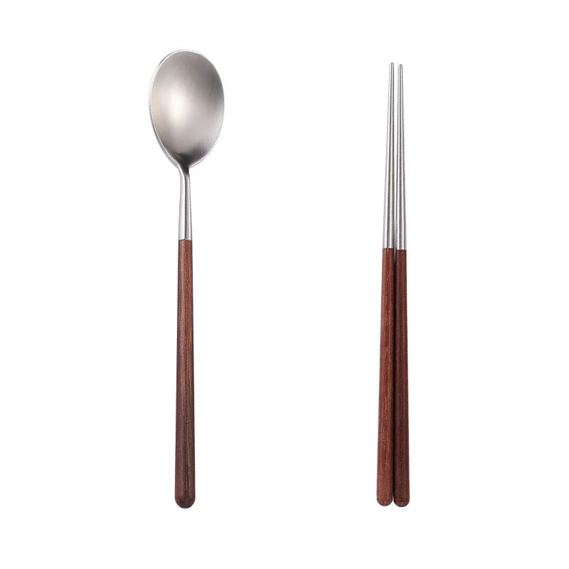 304不锈钢勺子筷子套装实木鸡翅木手柄餐具磨砂加厚便携餐勺调羹