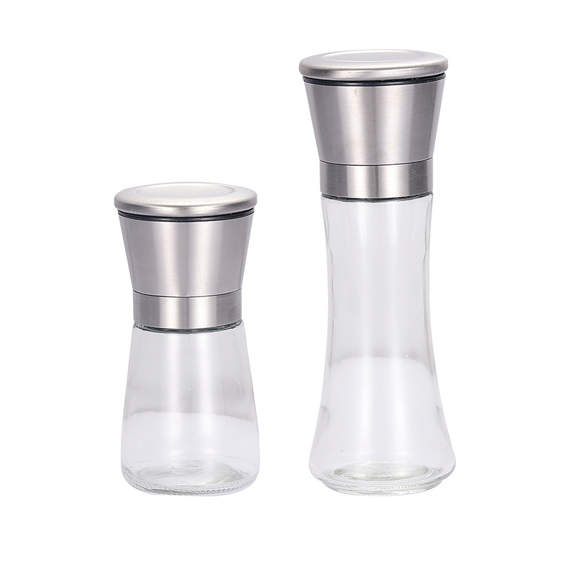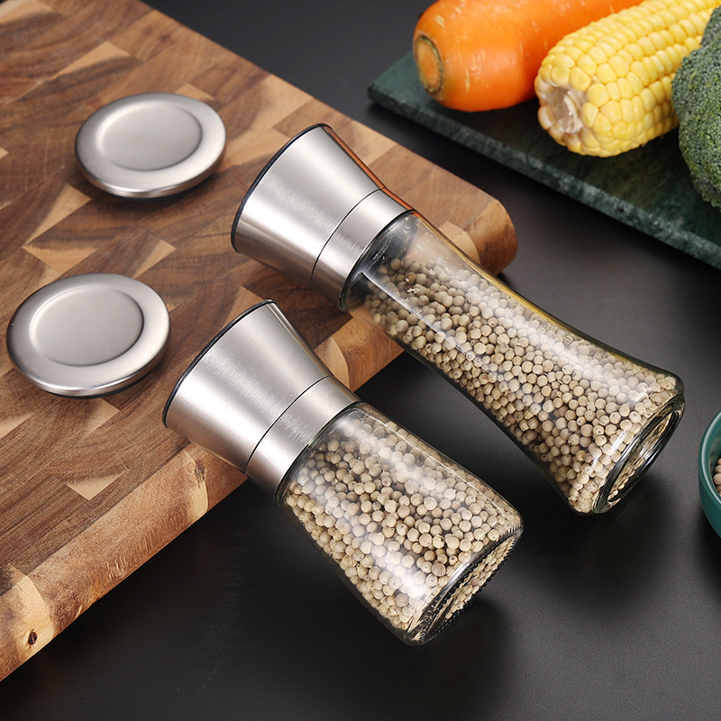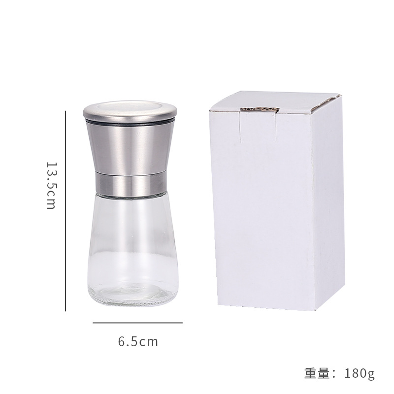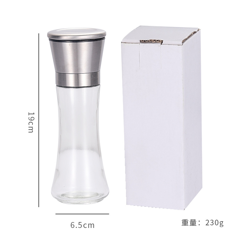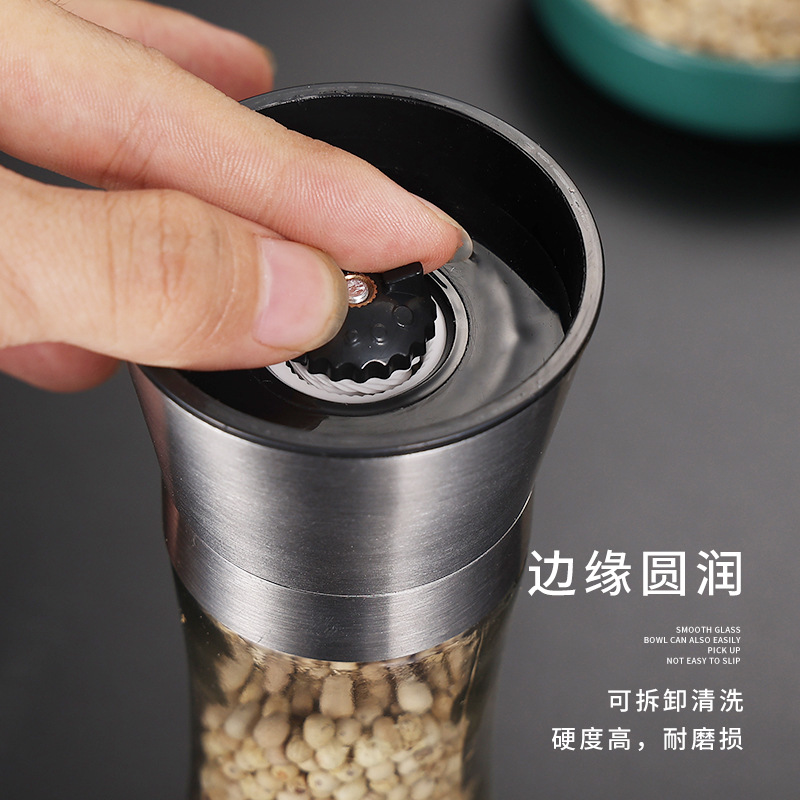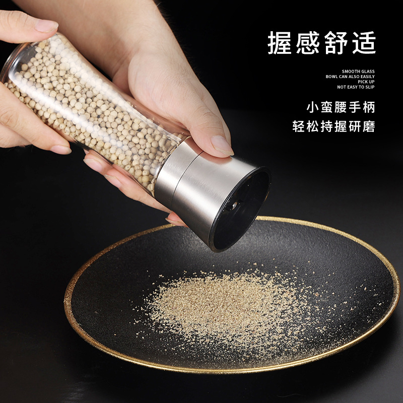 304不锈钢胡椒研磨器跨境无铅玻璃瓶花椒粉海盐调料罐手动研磨瓶