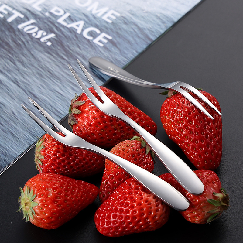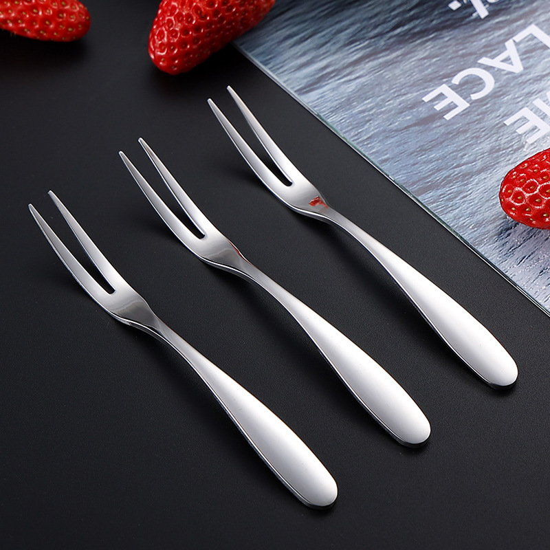 品通加厚水果叉SUS304不锈钢月饼叉二齿小叉子甜品点心沙拉蛋糕叉