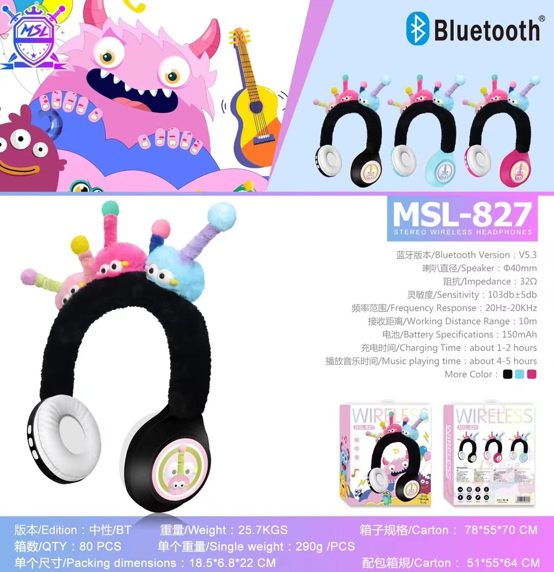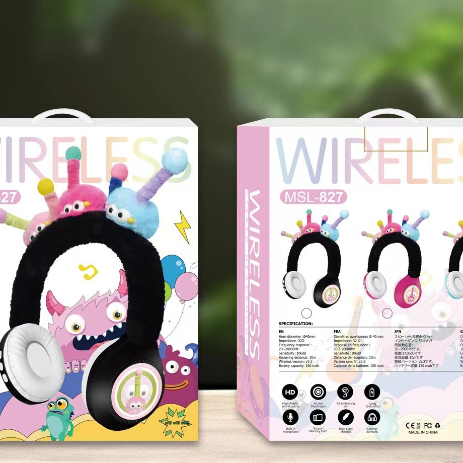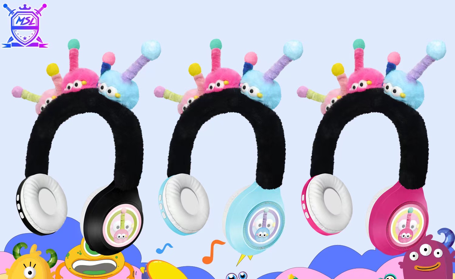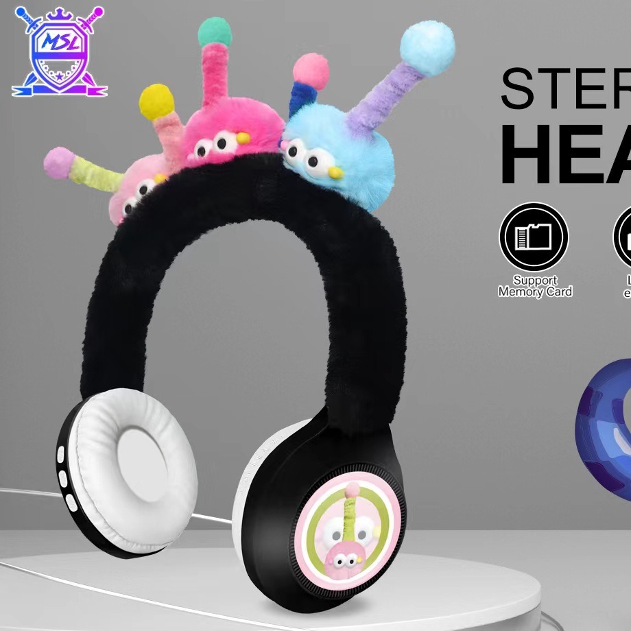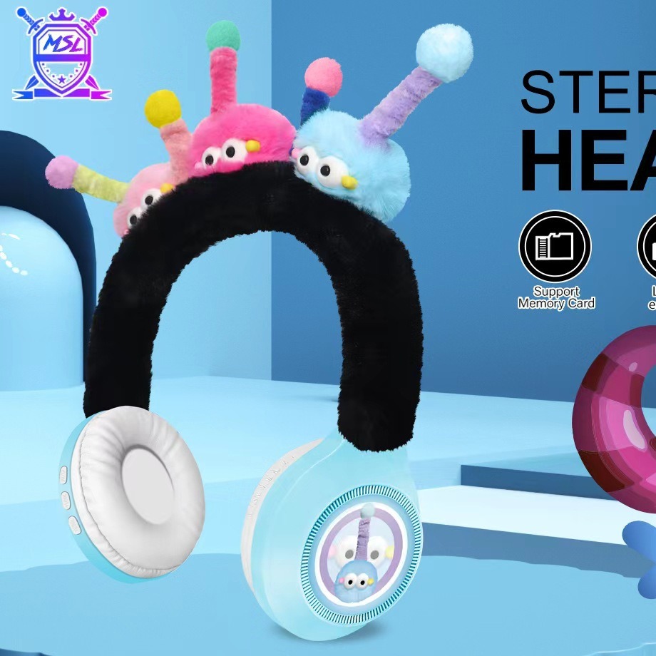 跨境新款MSL827创意卡通毛球小怪物毛绒头戴蓝牙耳机无线儿童耳机