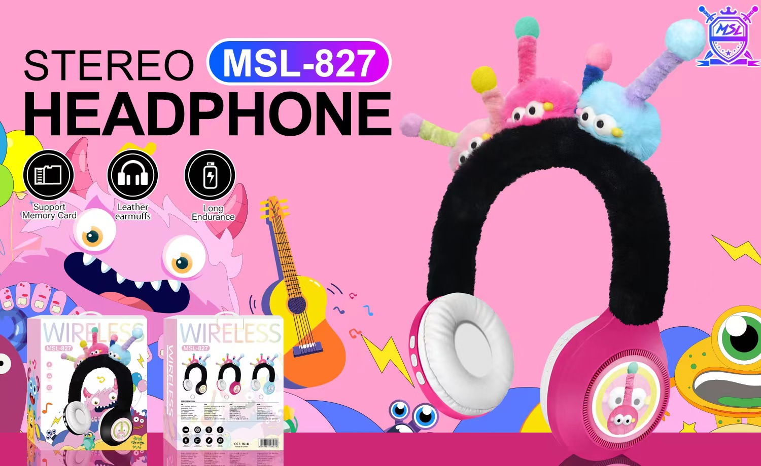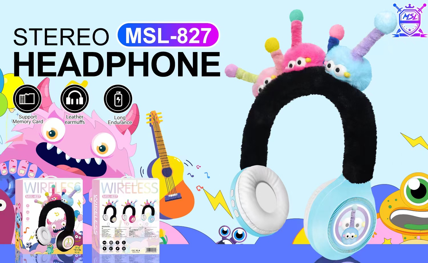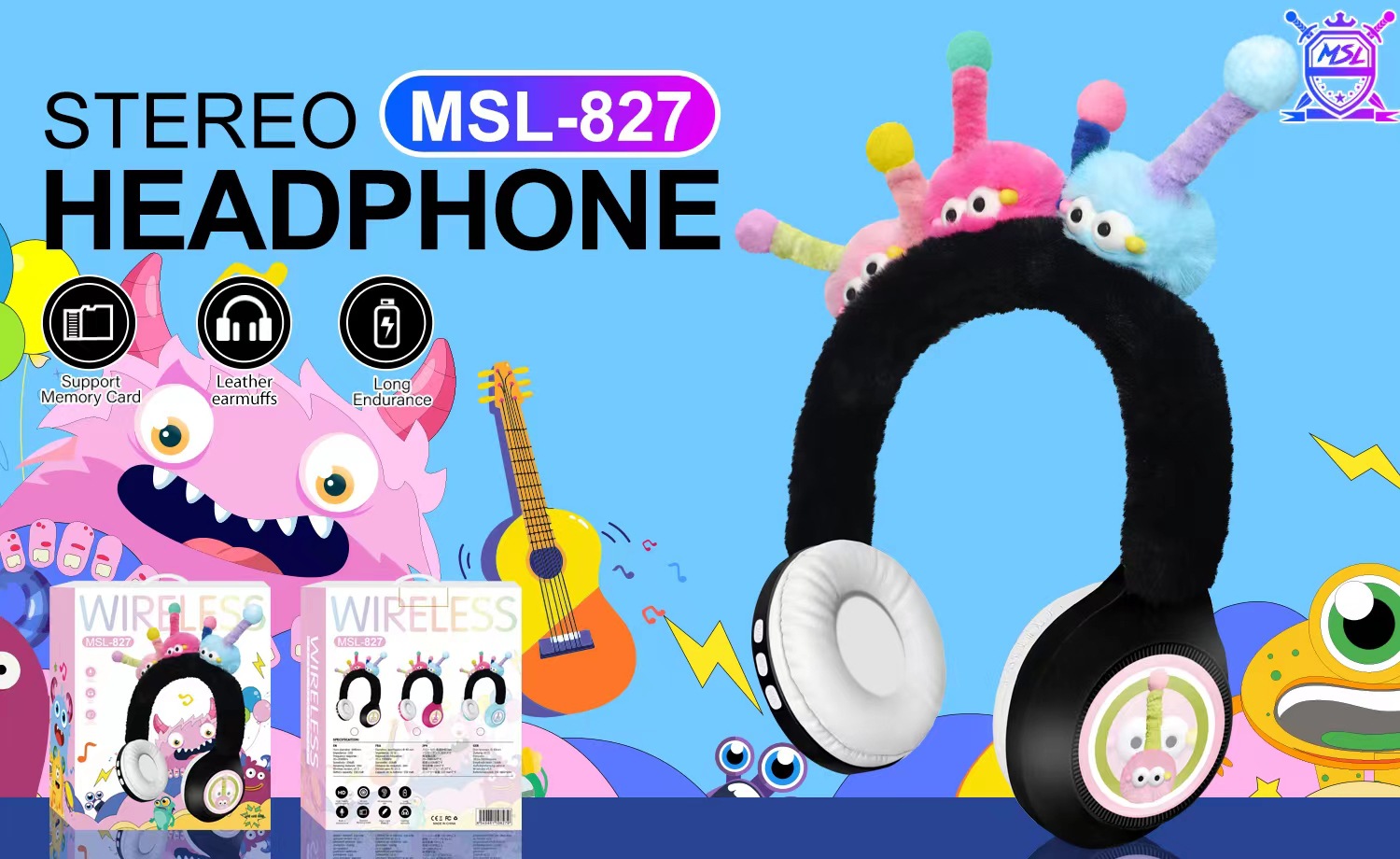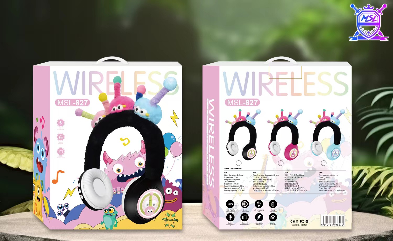 跨境新款MSL827创意卡通毛球小怪物毛绒头戴蓝牙耳机无线儿童耳机