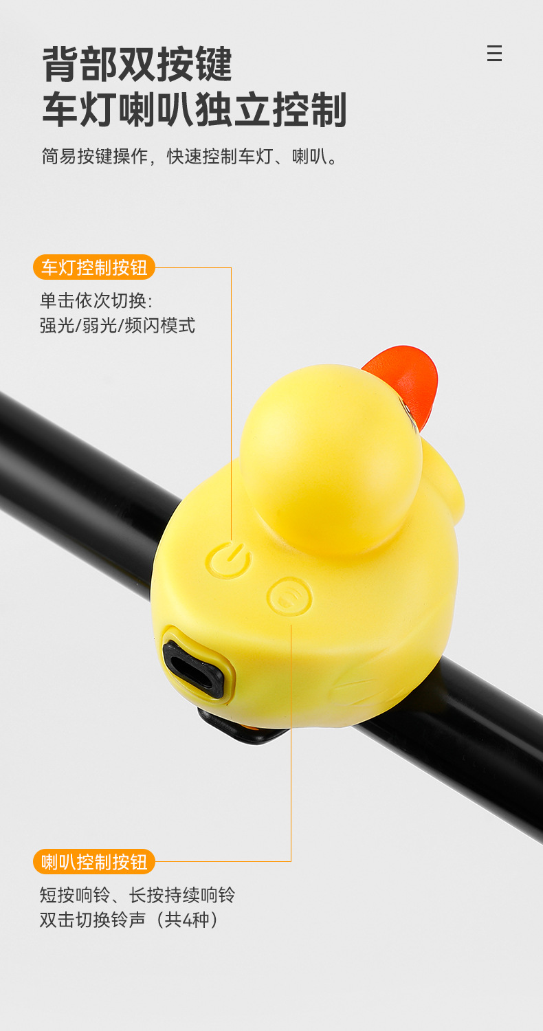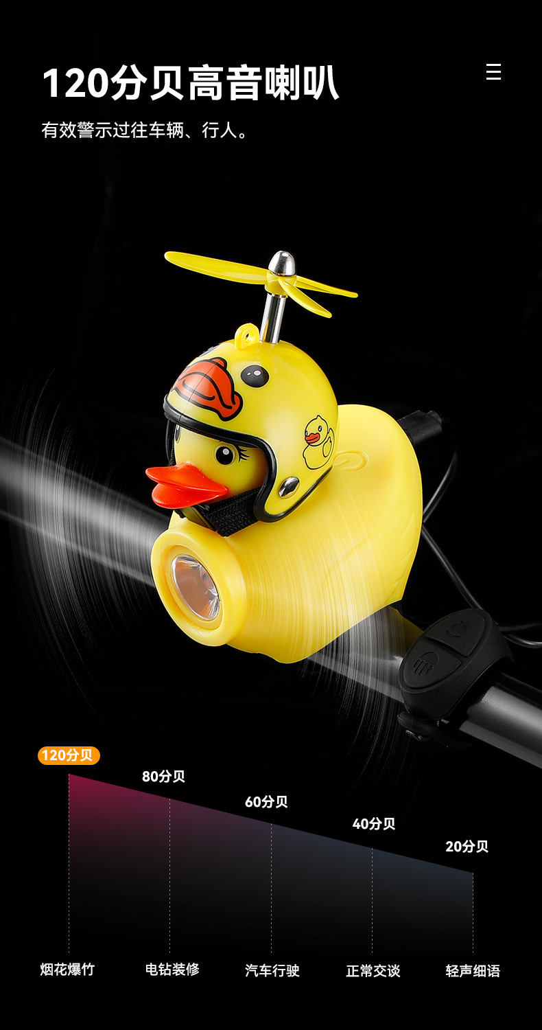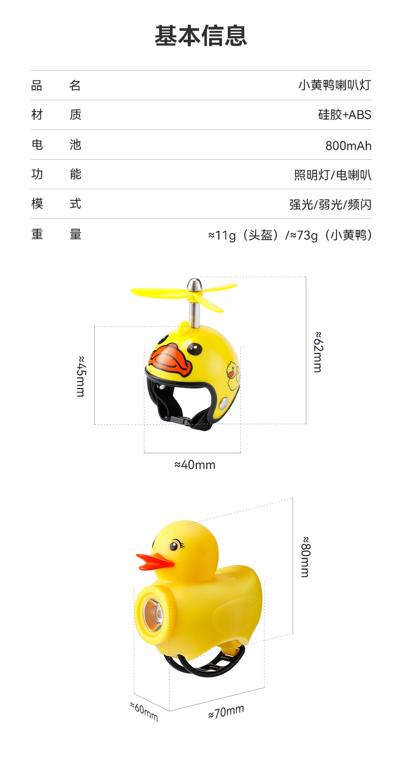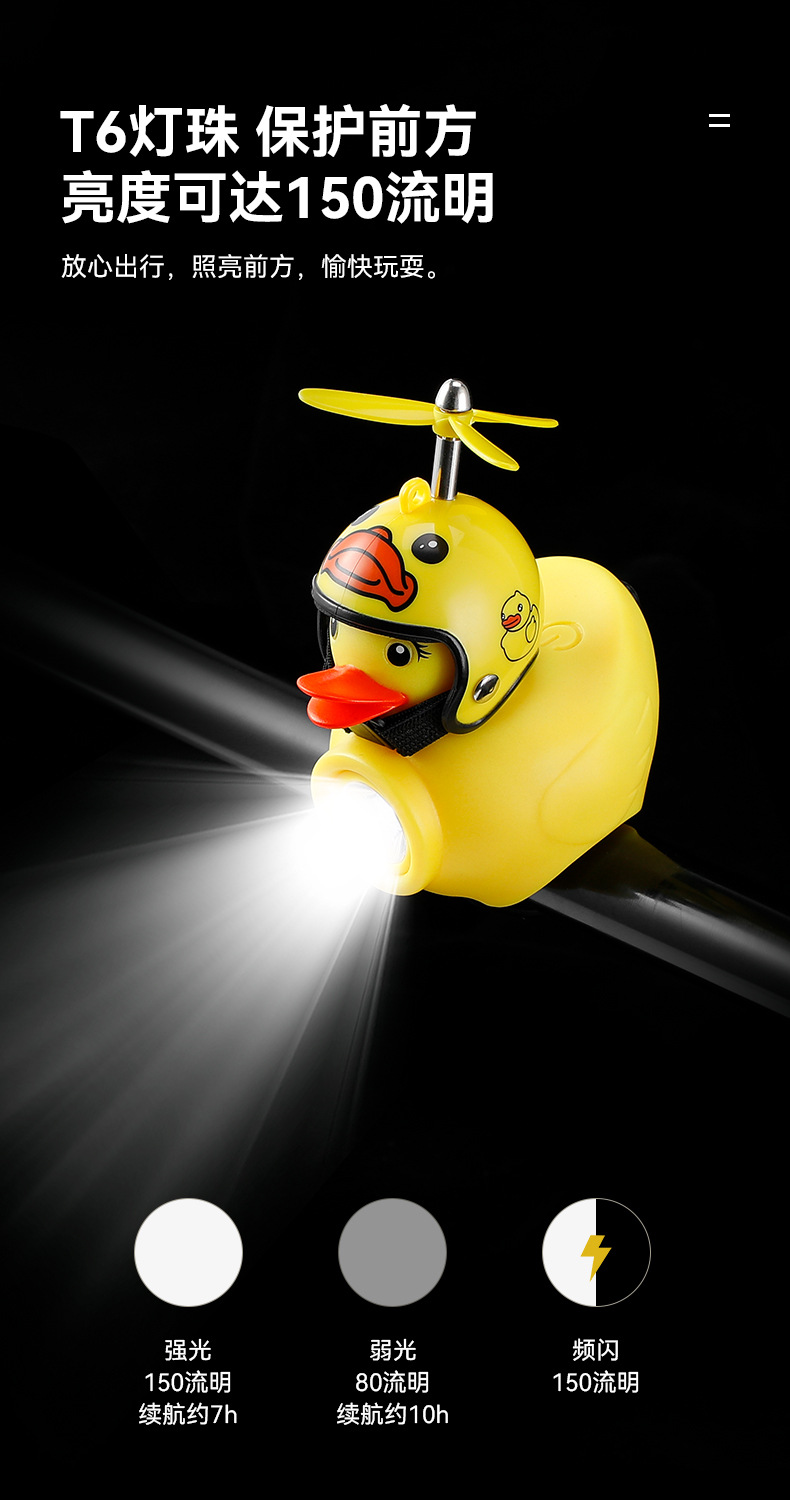 自行车小黄鸭夜骑前灯破风鸭抖音竹蜻蜓儿童铃铛喇叭电动车社会鸭
