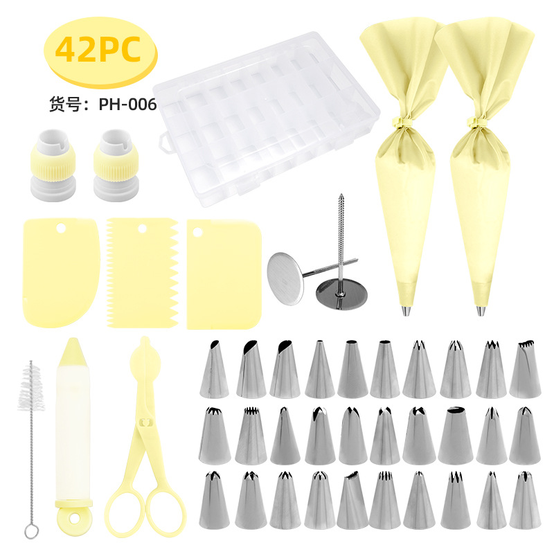 亚马逊蛋糕奶油装饰工具 42件套裱花嘴套装 裱花钉裱花袋新手套装
