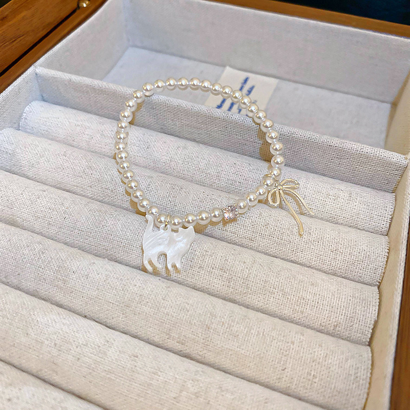 小清新彩色米珠花朵猫咪珍珠手链小众闺蜜学生手环甜美高级感手饰