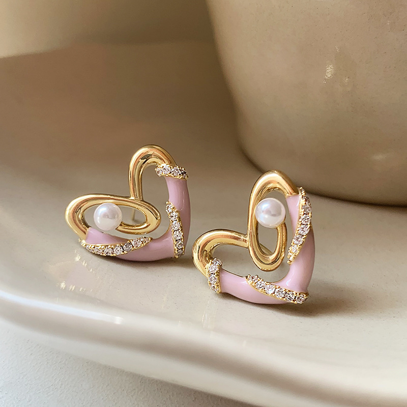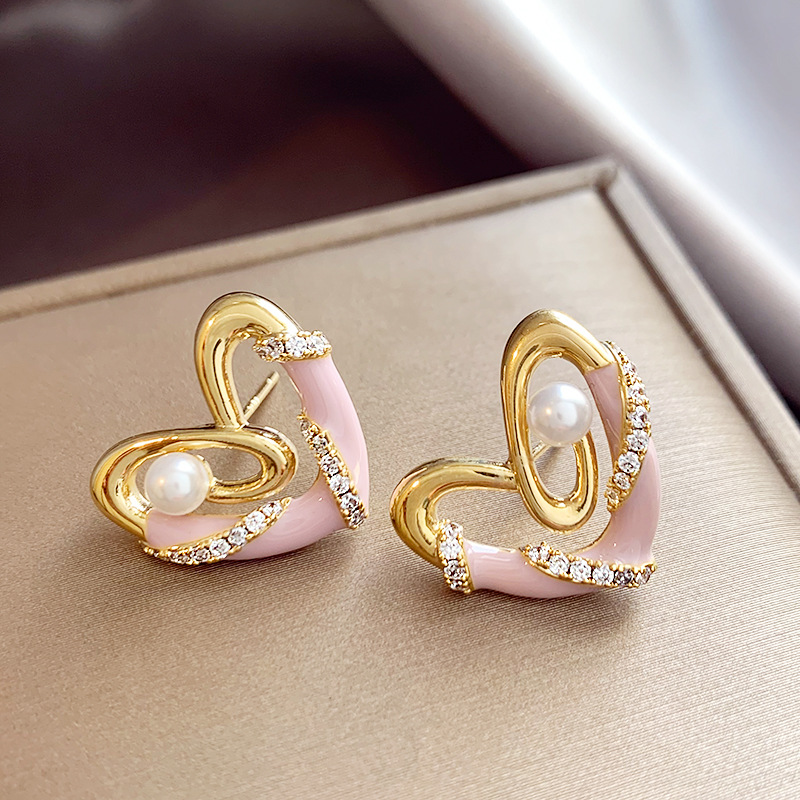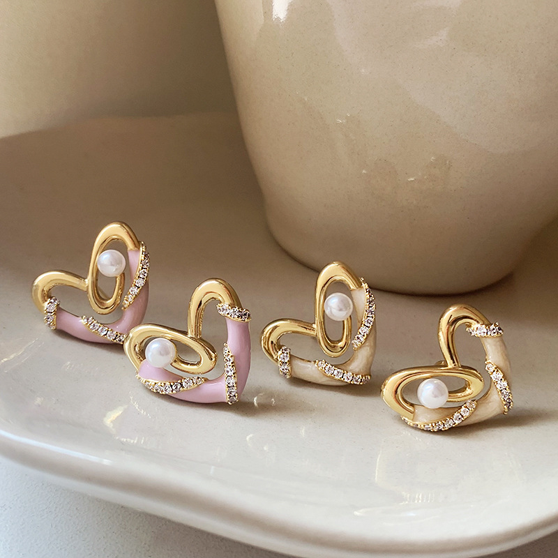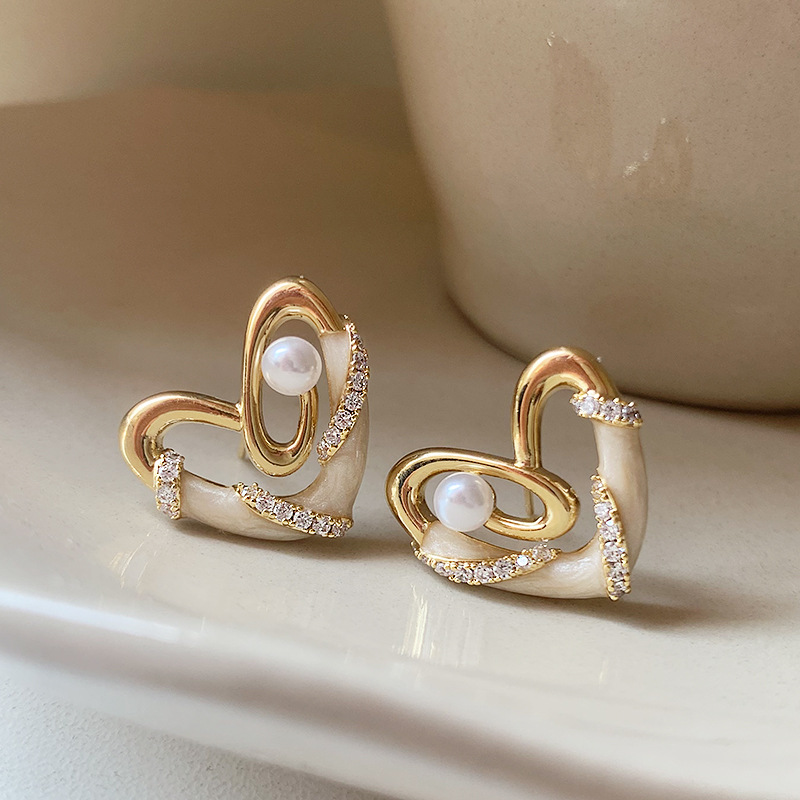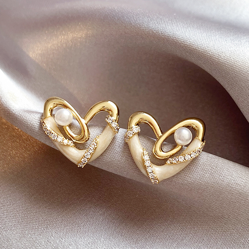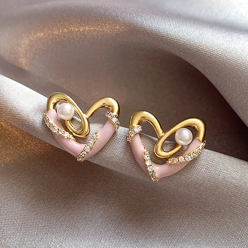 银针镶钻滴油爱心珍珠耳钉个性甜美耳环气质时尚高级感耳饰批发女