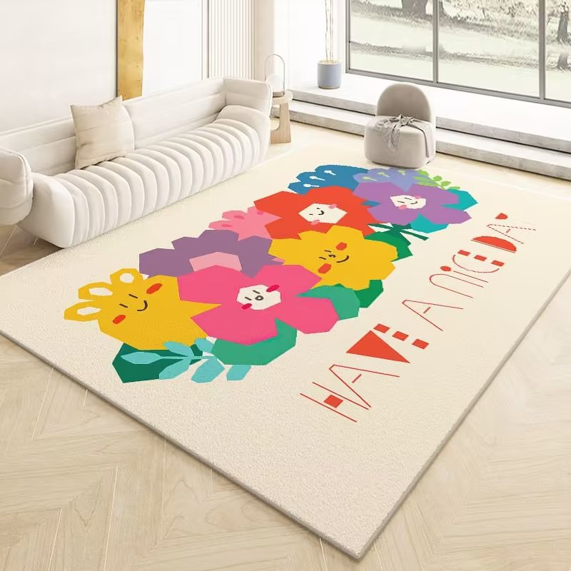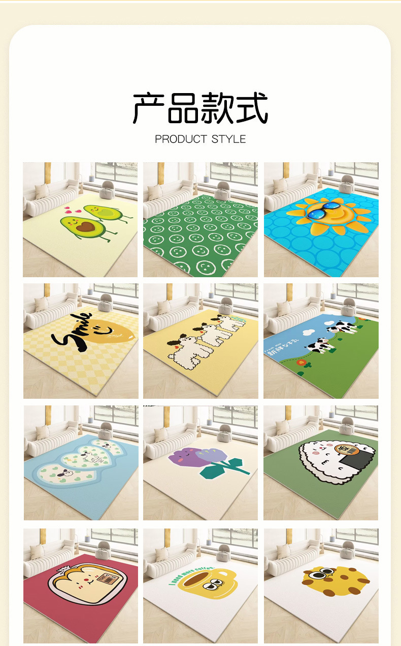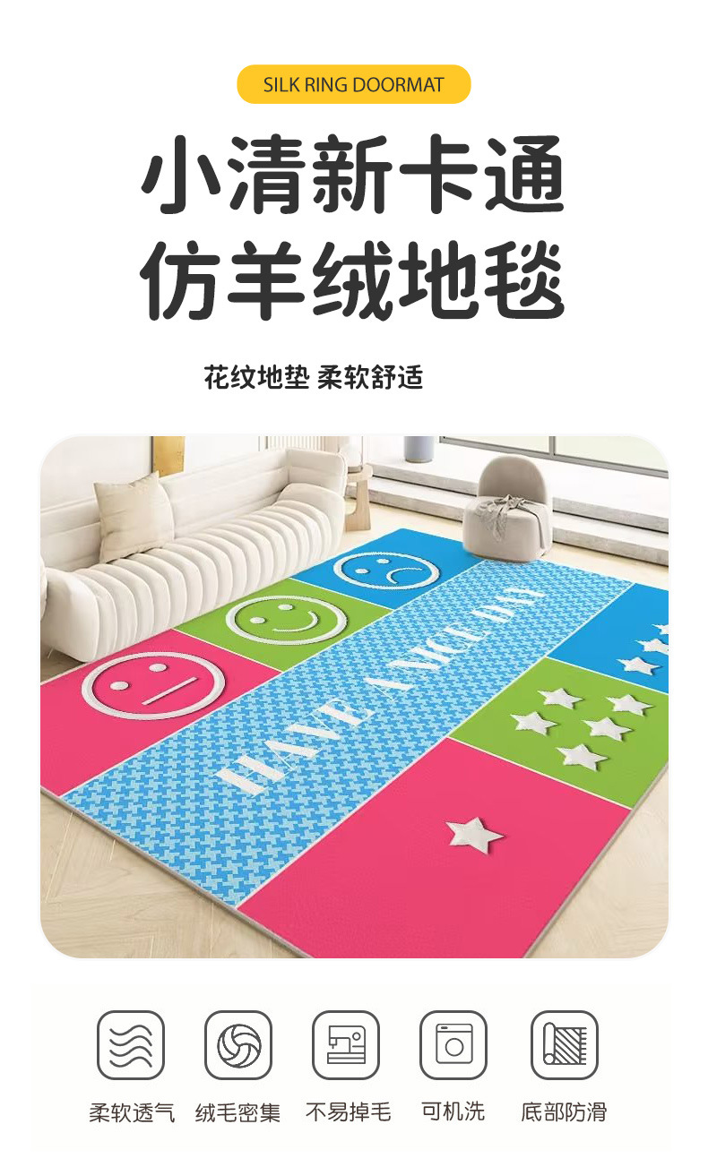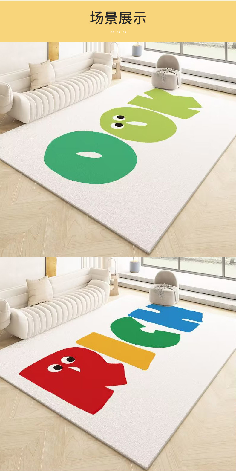 可爱卡通仿羊绒地毯家用客厅茶几地毯 大面积卧室满铺棉布底地垫