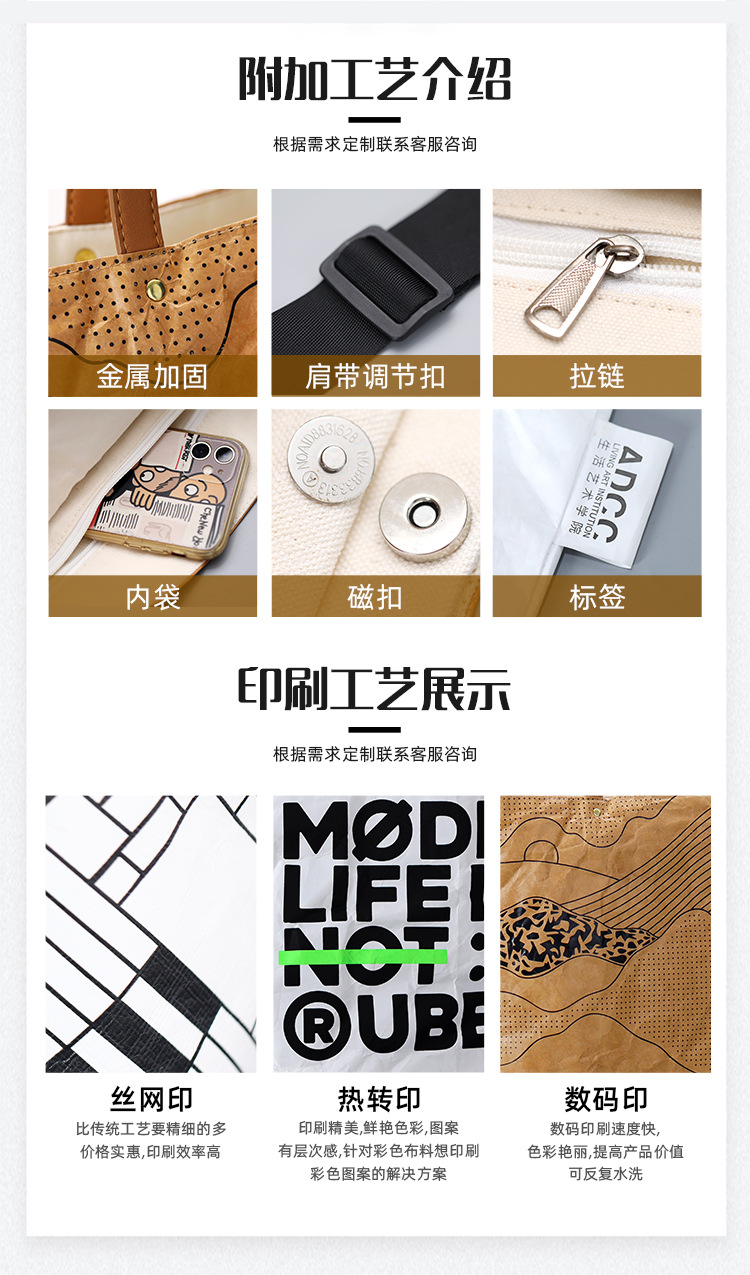 杜邦纸双肩包定制logo防水创意可水洗纸袋礼品背包斜挎书包托特包