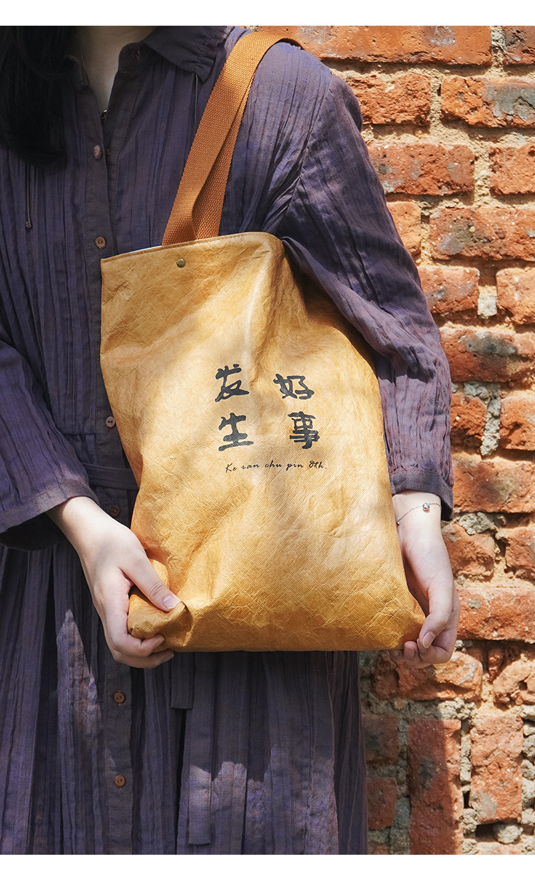 杜邦纸袋定制印logo复古帆布包文创购物袋水洗牛皮纸袋耐撕环保袋